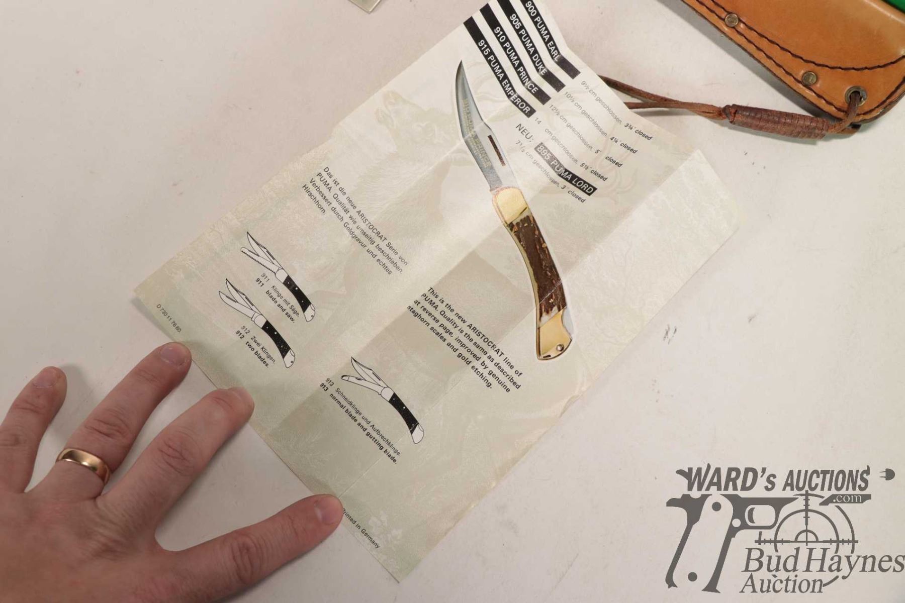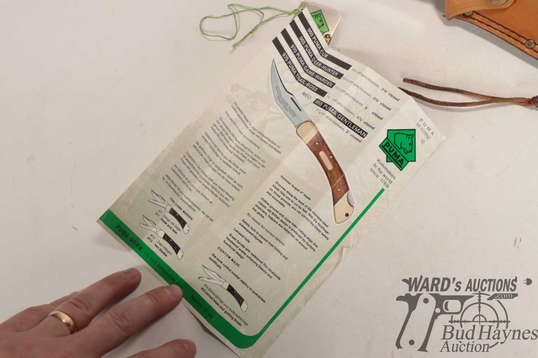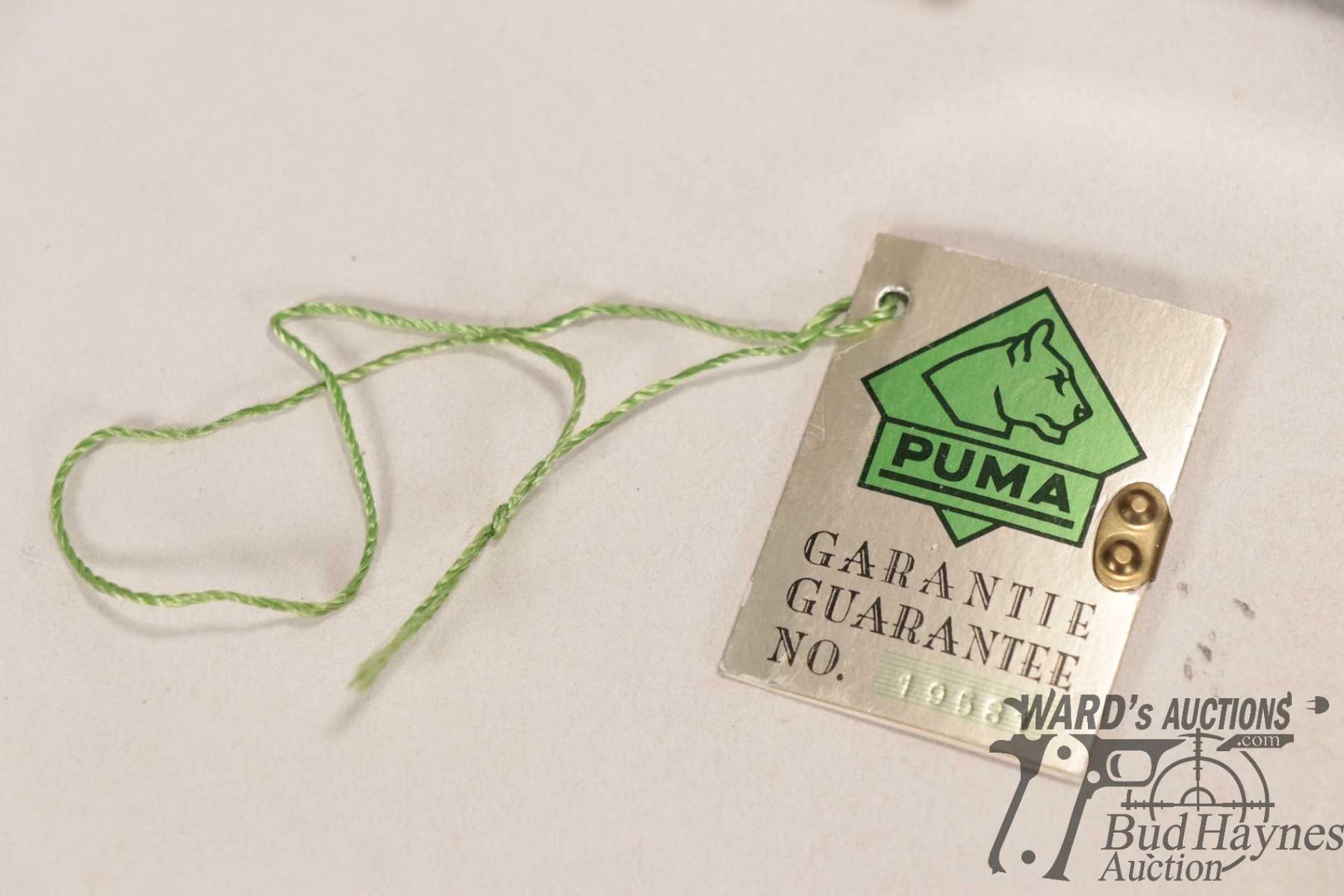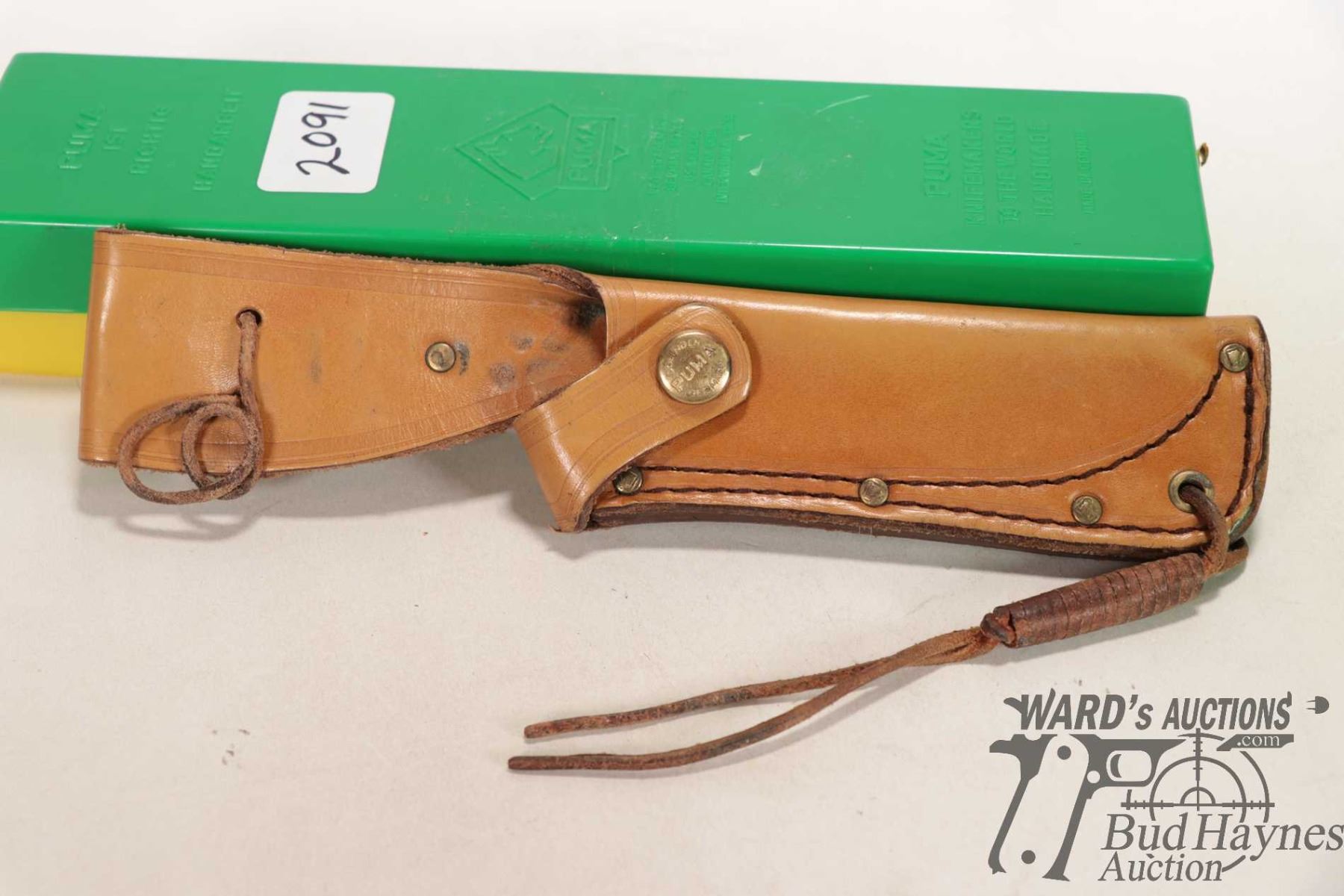 Vintage 1985 Puma II 6378 outdoor knife with original box, tag and pamphlet. Has 5" blade and antler handled plus original sheath