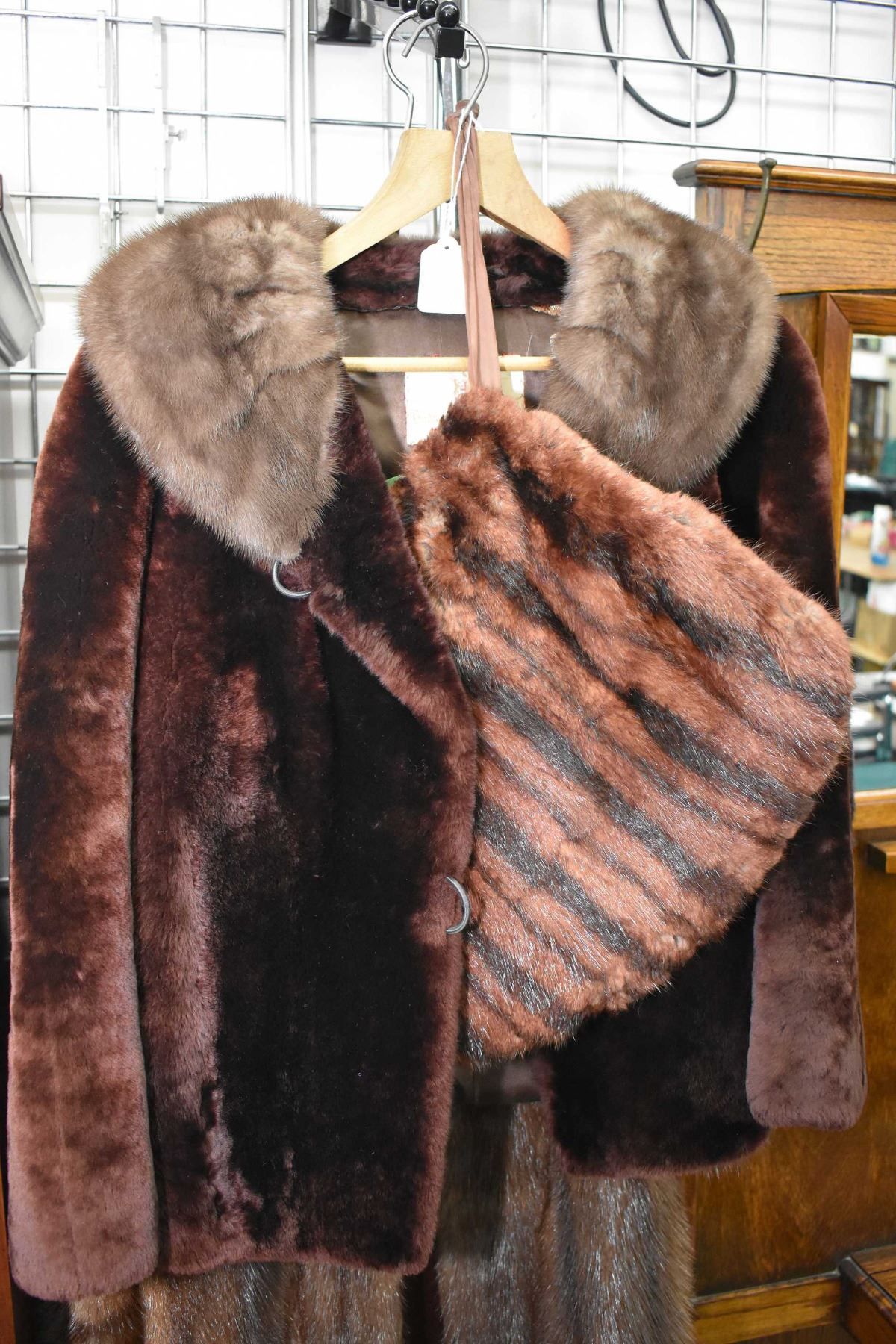 Vintage 3/4 length fur coat plus a short Beaver lamb fur jacket and a fur bag