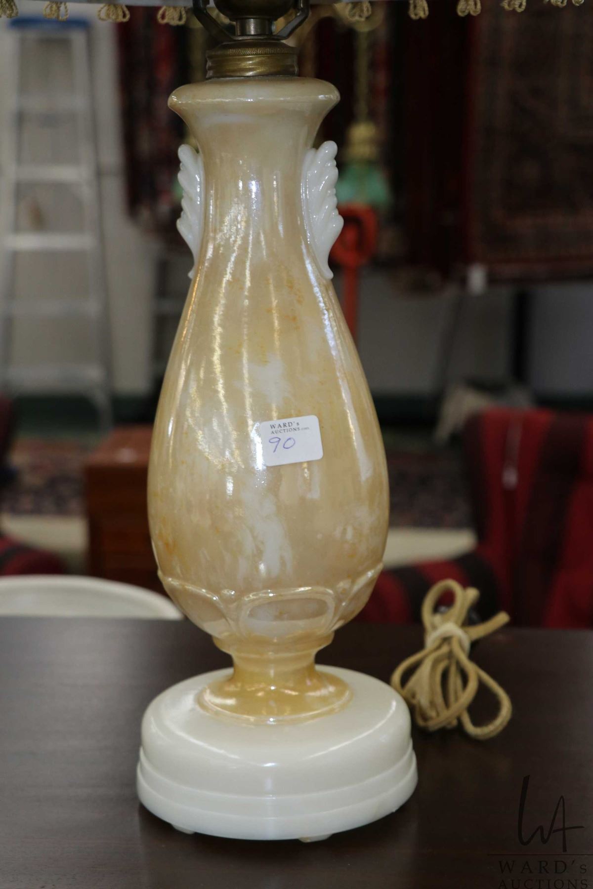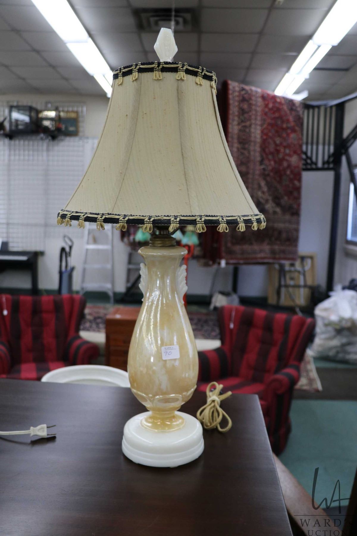 Vintage Alacite luster table lamp with shade, note: original finial, 25" in height