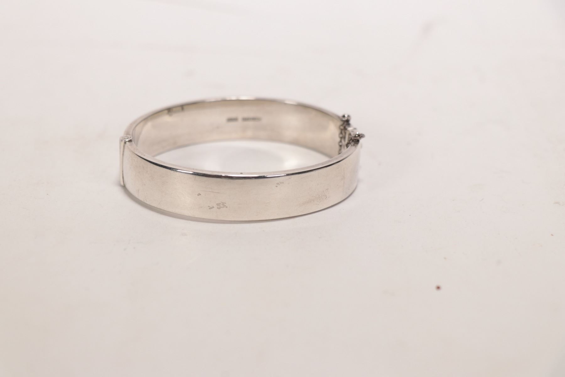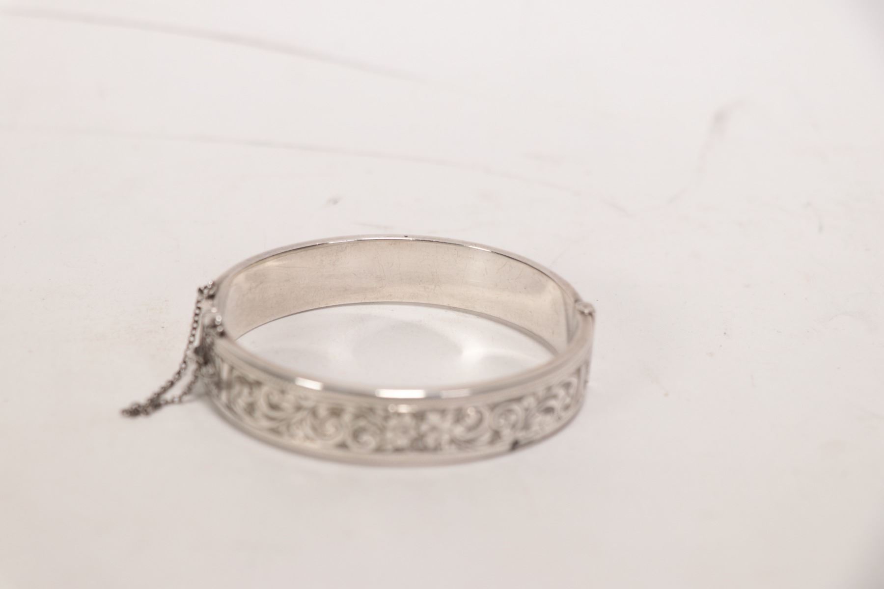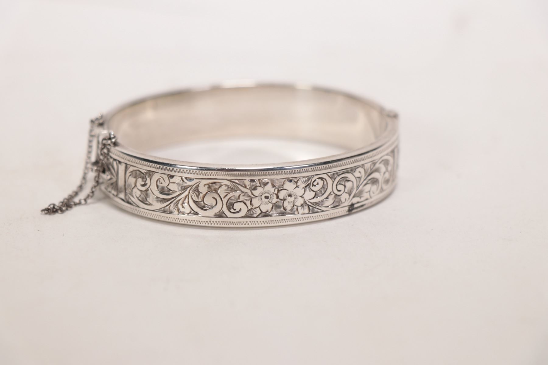 Vintage Birks sterling silver, chaise hinged bracelet with safety chain