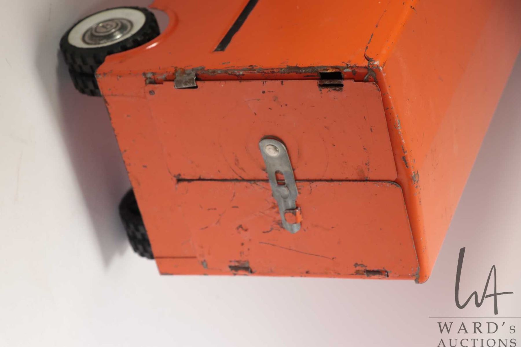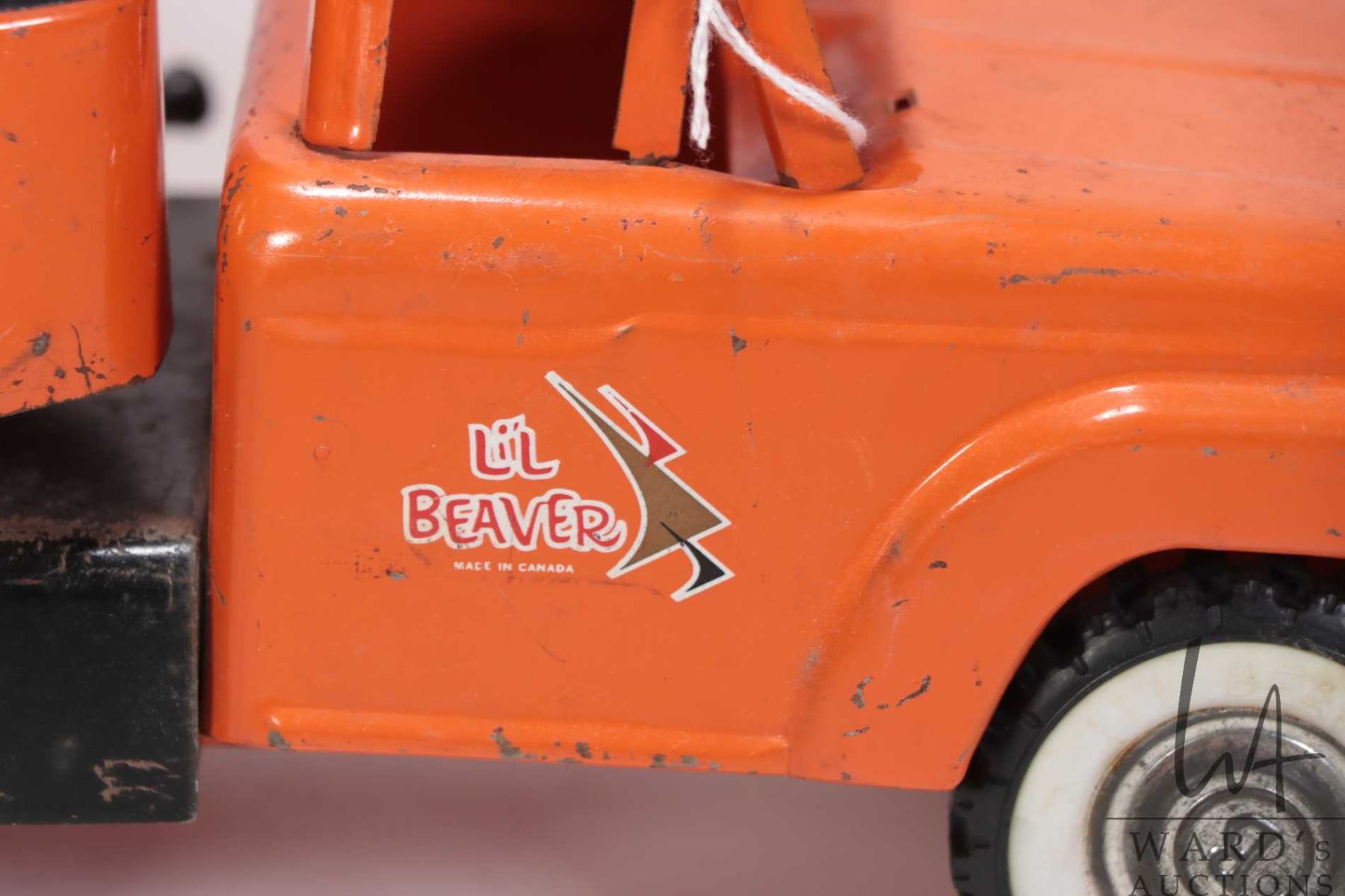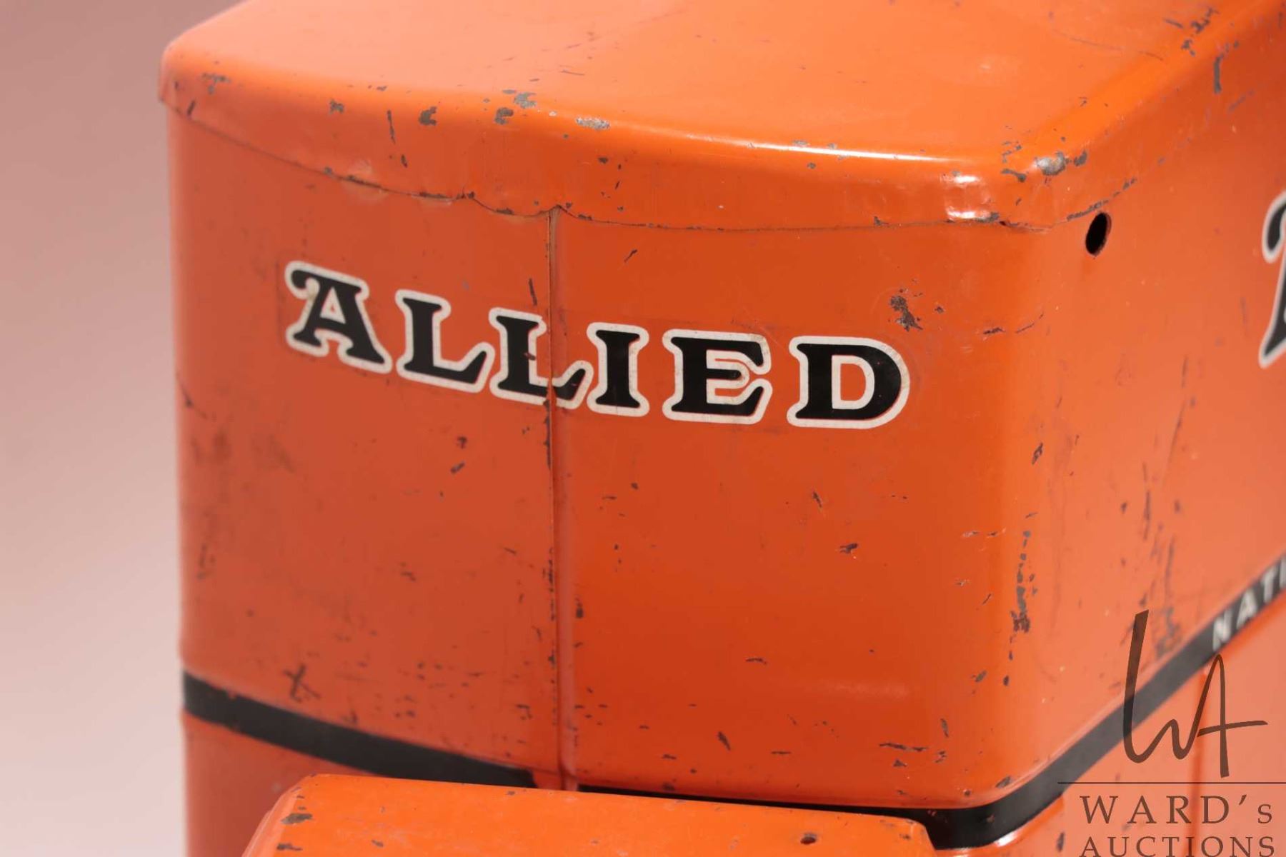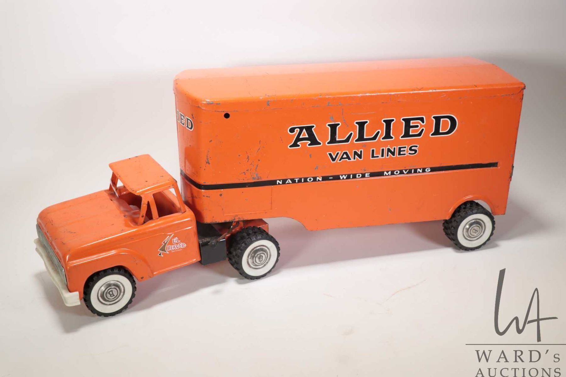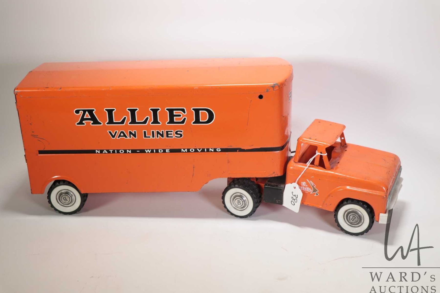 Vintage Bubby L L'l Beaver allied Van lines pressed steel toy truck in played with condition. Measures 23" long.