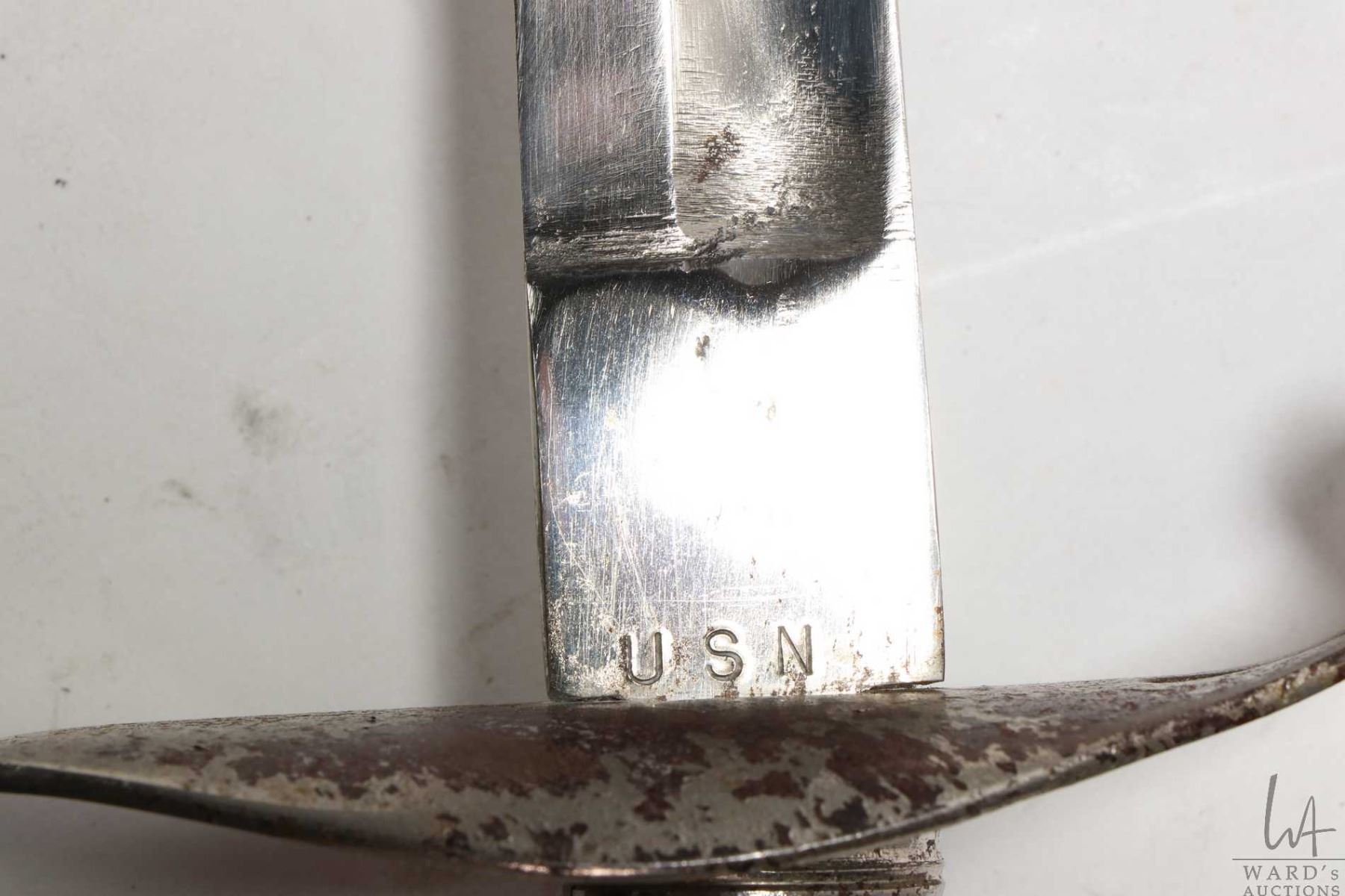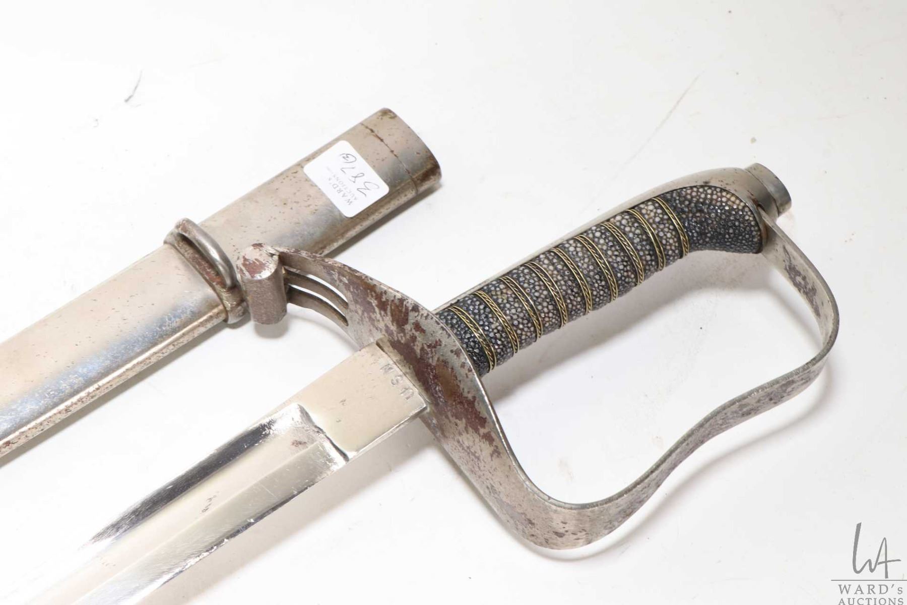 Vintage Calvary sword with scabbard, blade marked USN, no other markings seen, scabbard and hilt, ap