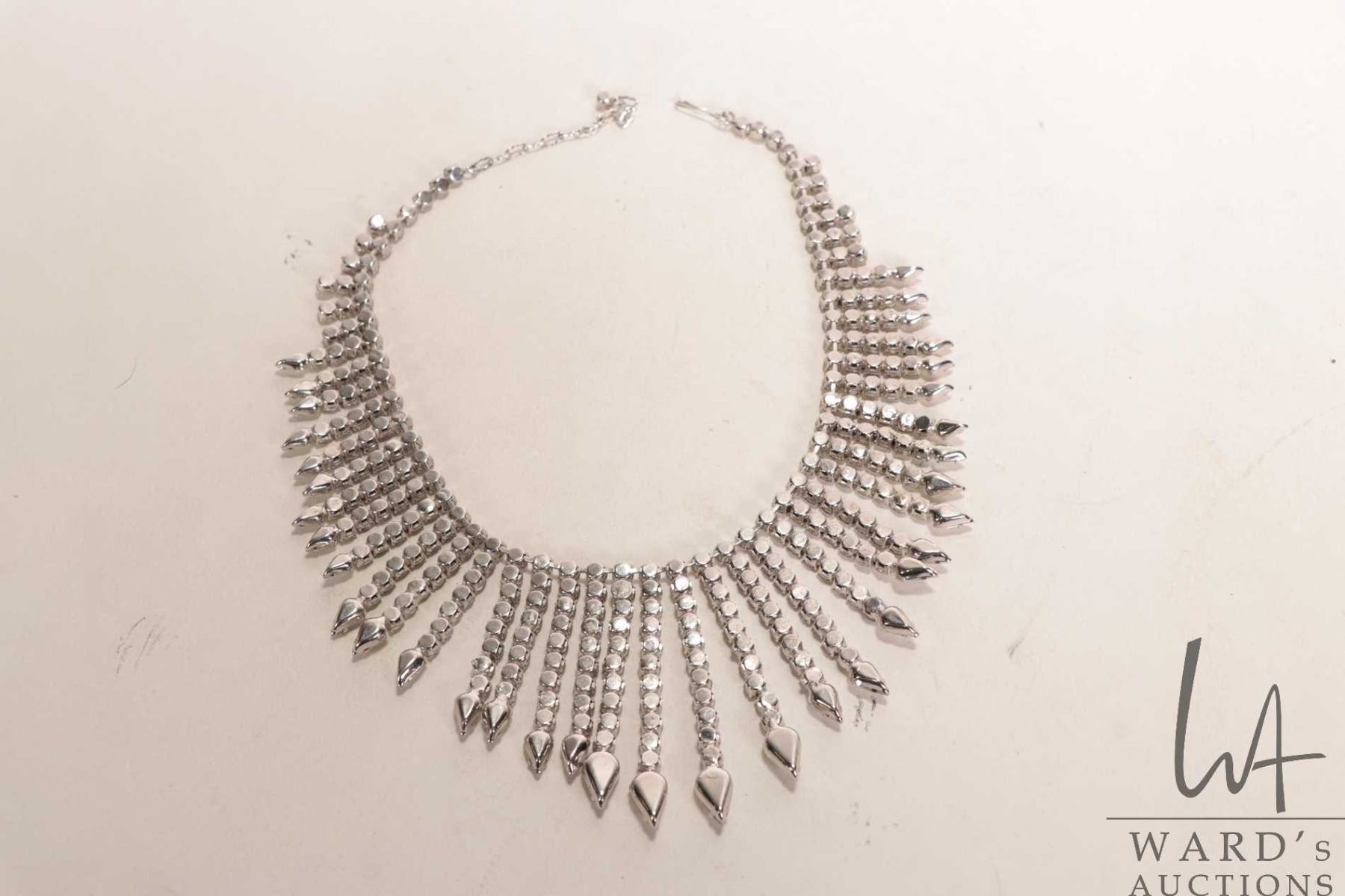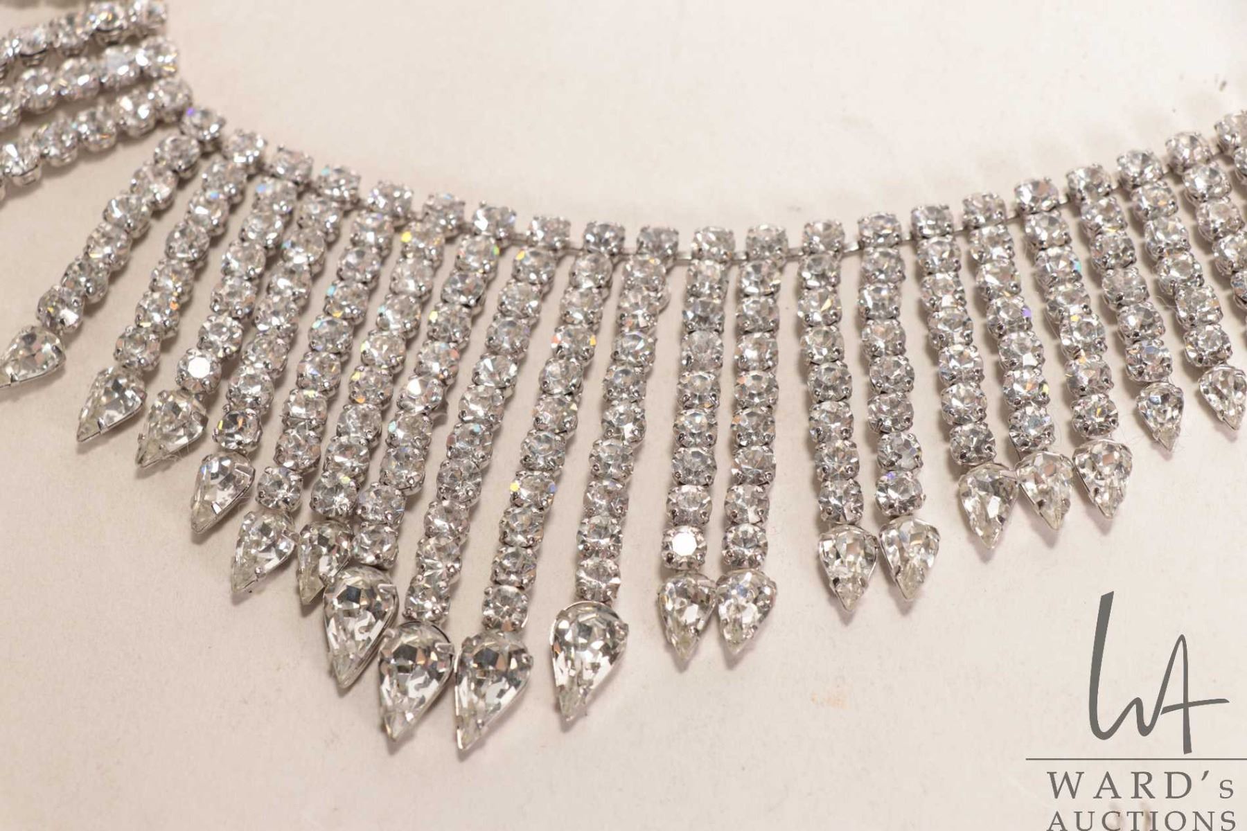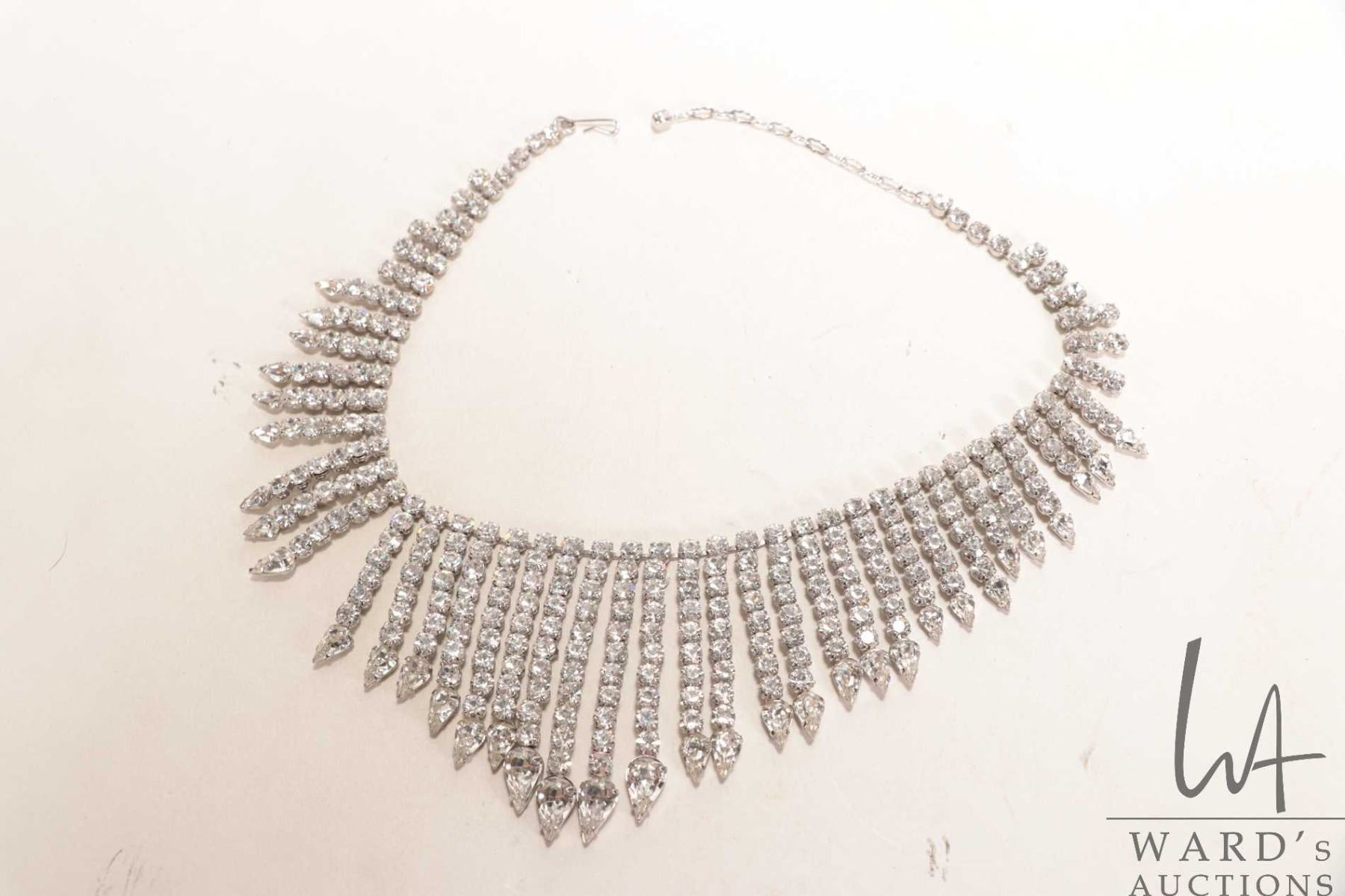 Vintage Canadian made Jay Flex Sterling, rhodium plated sterling necklace set with crystal rhinestones, circa 1950-60's