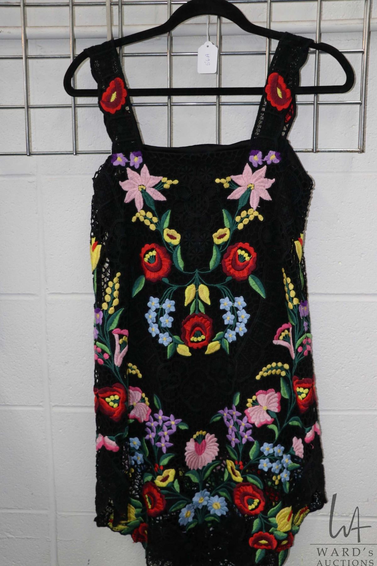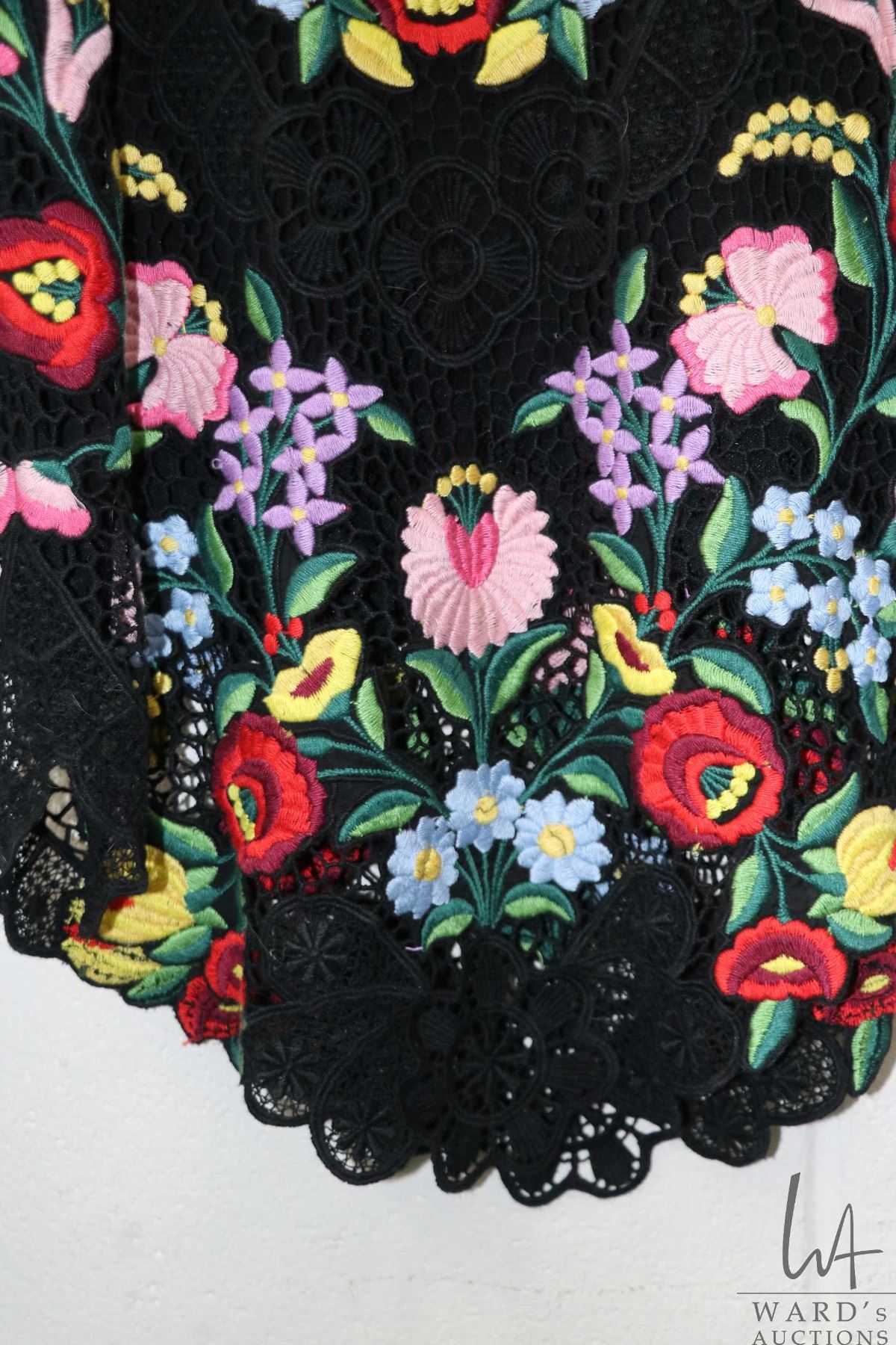 Vintage Dolce and Gabbana embroidered lace mini dress with colourful floral design and scalloped hemline, 100% cotton with black silk lining, size 38, US size XS Note: buyers must satisfy themselves as to authenticity. Feel free to contact auction house regarding images that you require that may have been overlooked during original cataloguing and photography