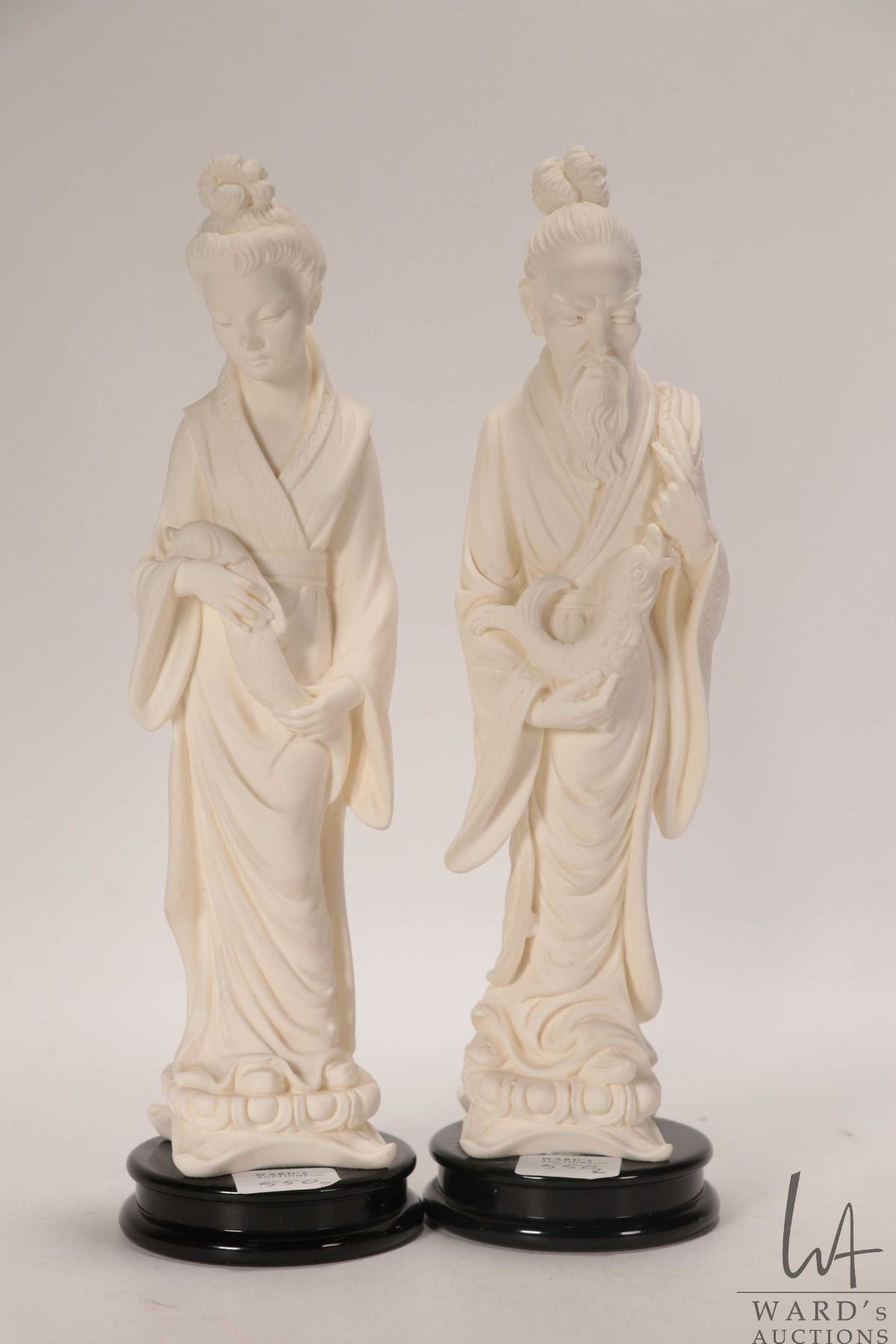 Vintage Golden Crown E&R Italy composition figures including geisha and wiseman, each approximately