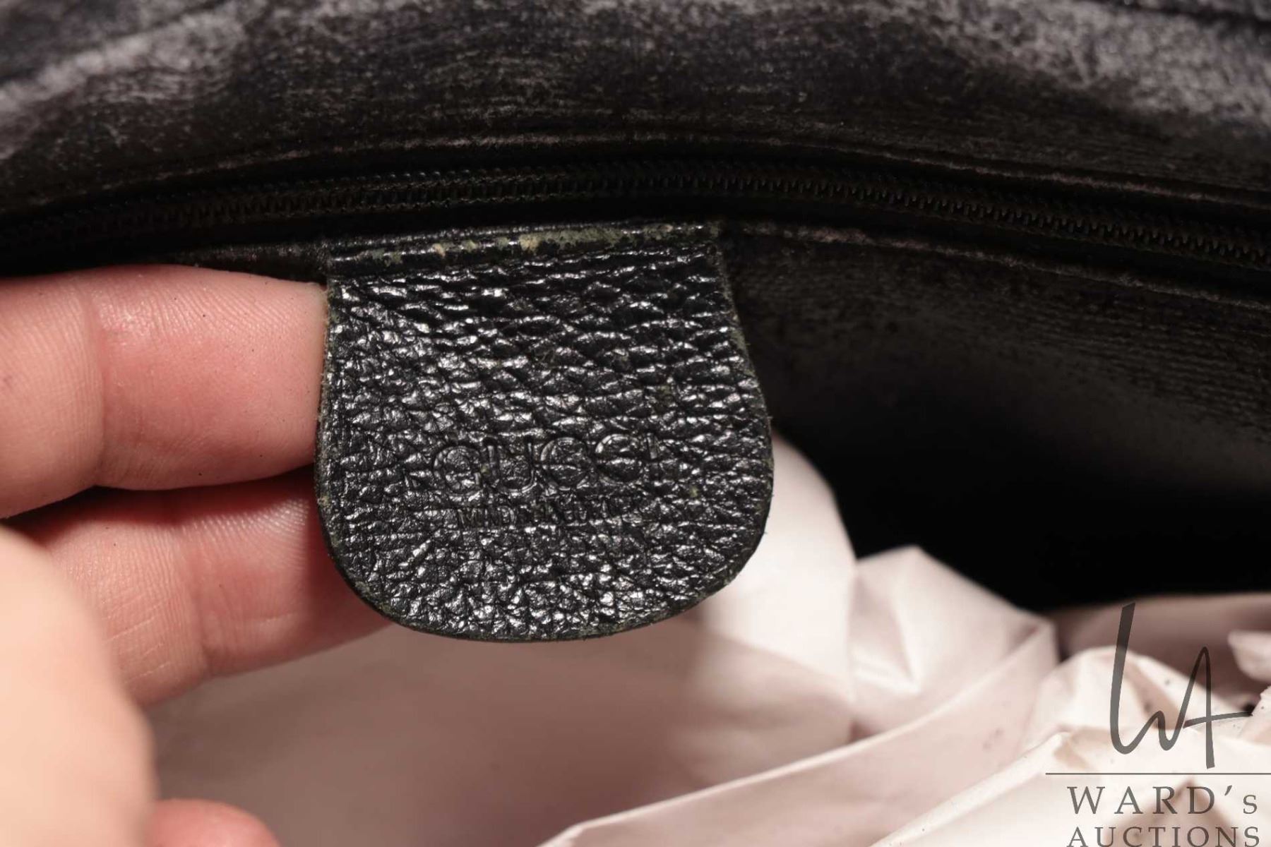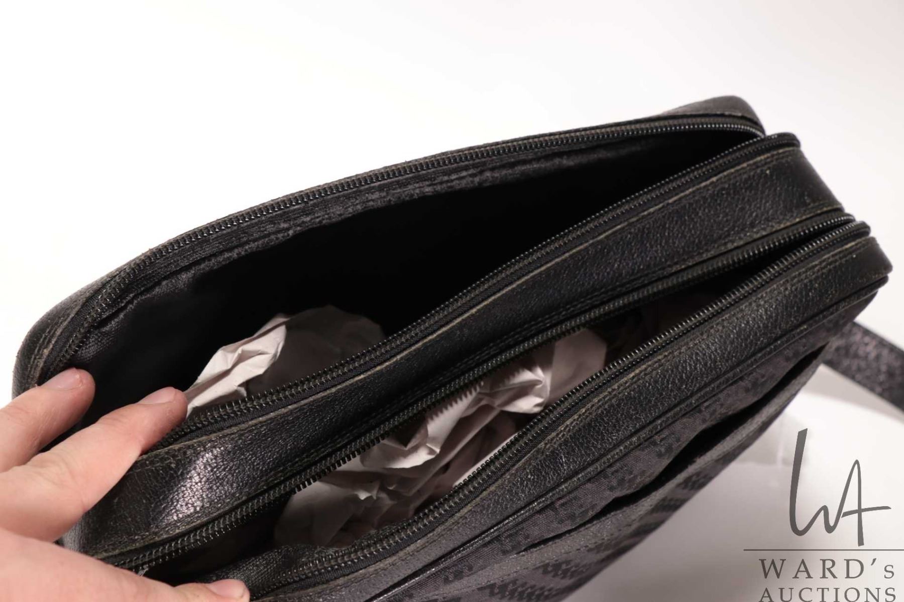 Vintage Gucci micro monogram fabric and leather cross body purse, serial no. 001-231458 Note: Buyer must satisfy themselves as to authenticity. Feel free to contact auction house regarding images that you require that may have been overlooked during original cataloguing and photography