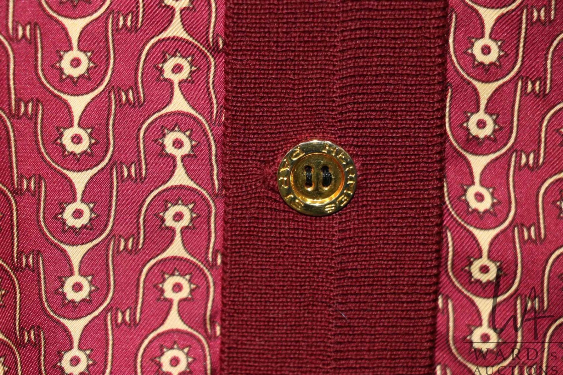 Vintage Hermes wool and stirrup printed silk cardigan, marked size 42 Note: buyers must satisfy th