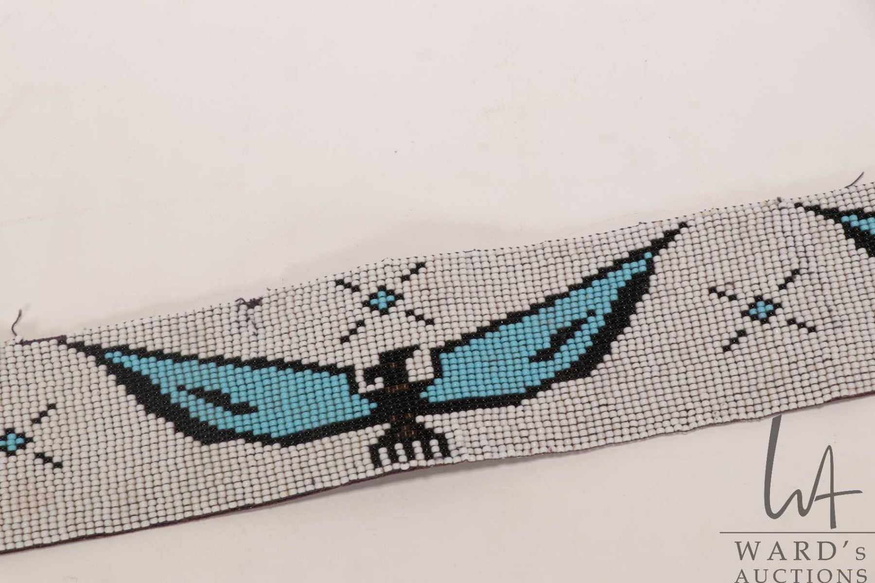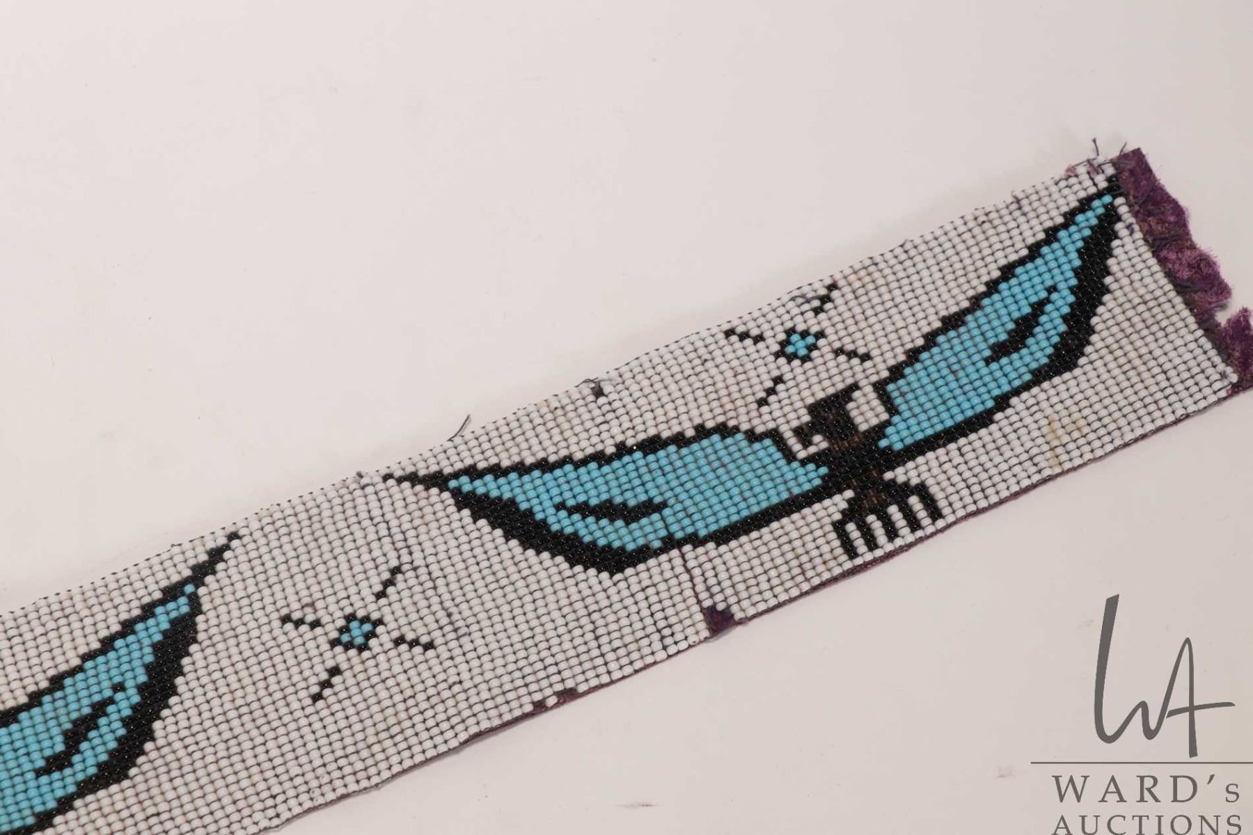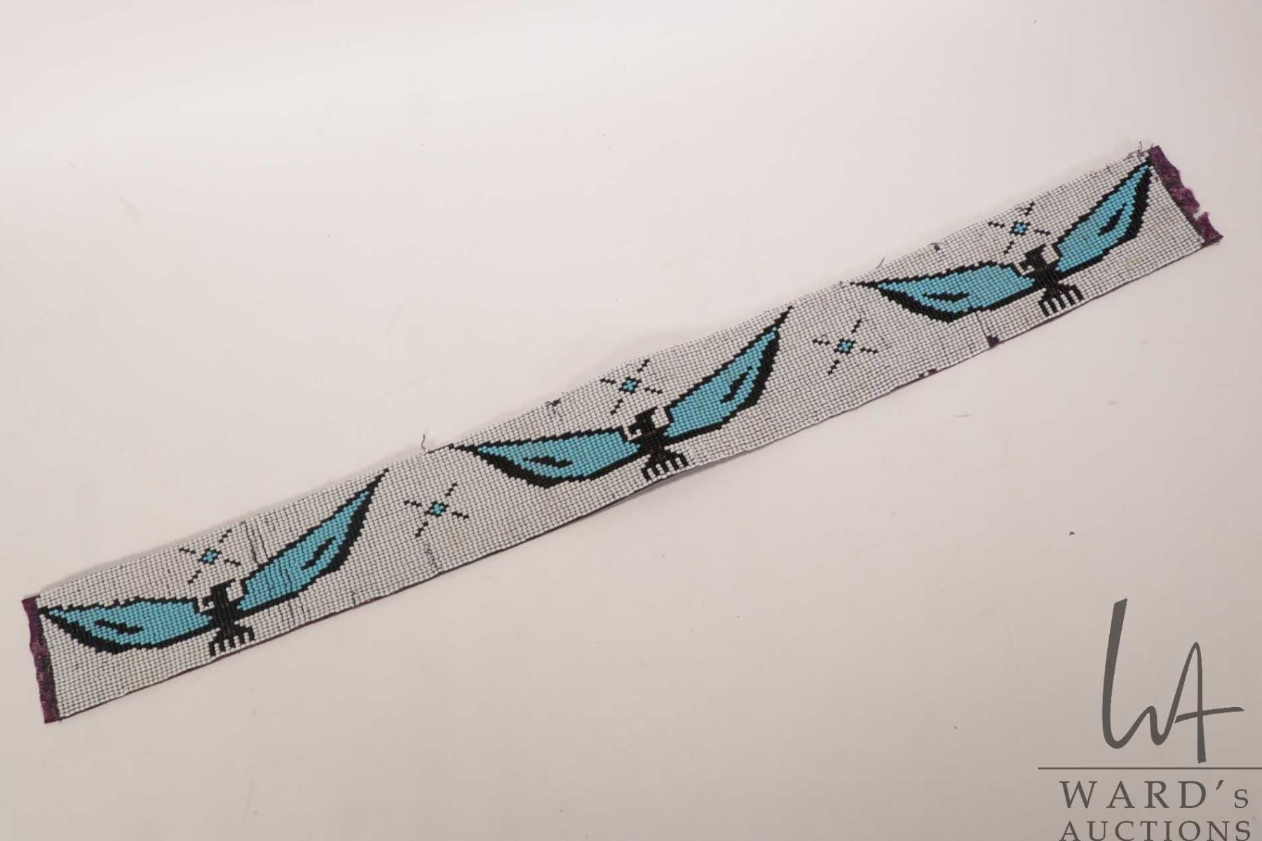 Vintage Indigenous beadwork Thunderbird sash, 3" W X 26" in length