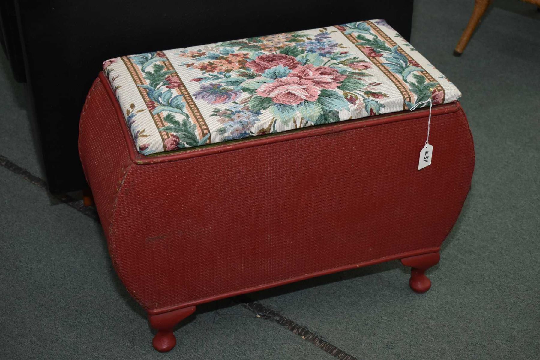 Vintage Lloyd loom hamper with tapestry upholstered top and cabriole feet