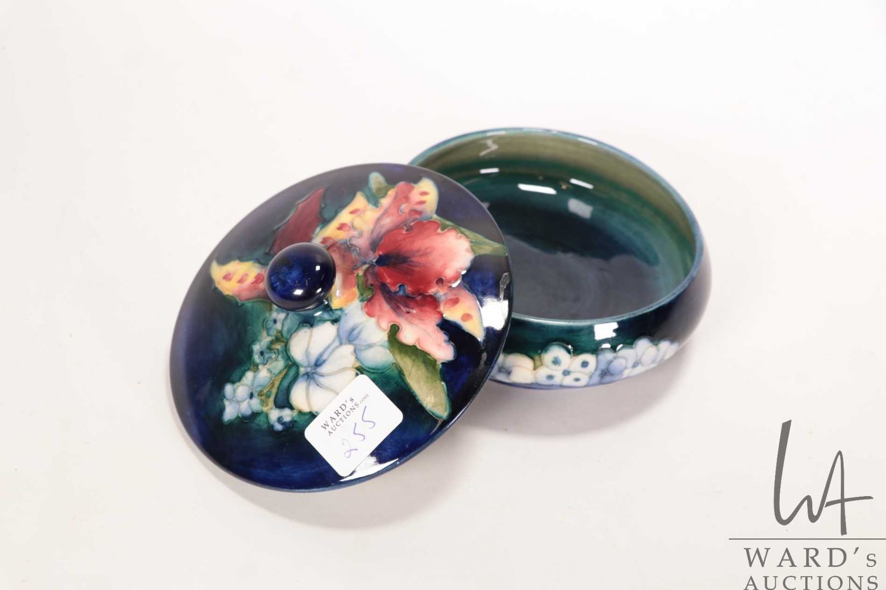 Vintage Moorcroft "Orchids in Springtime" 4 3/4" diameter lidded bowl