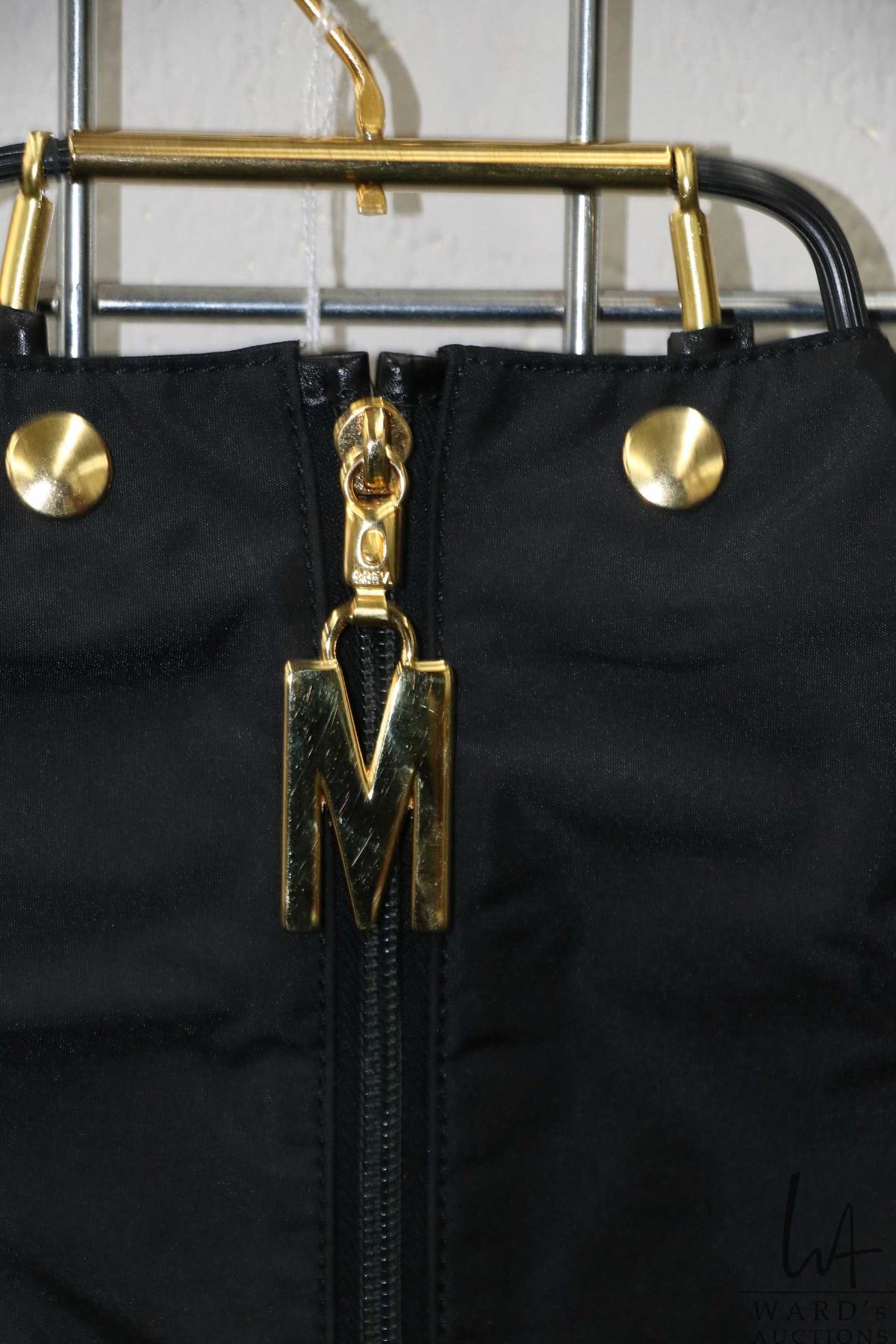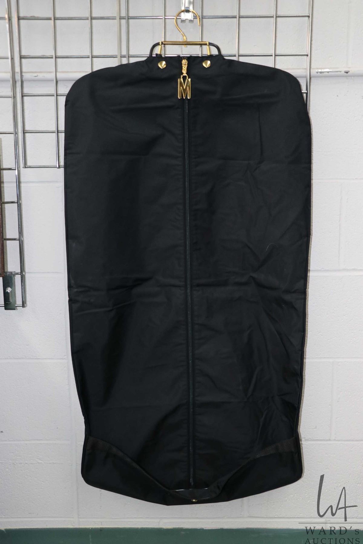 Vintage Moschino vinyl zippered garment bag Note: buyers must satisfy themselves as to authenticity. Feel free to contact auction house regarding images that you require that may have been overlooked during original cataloguing and photography