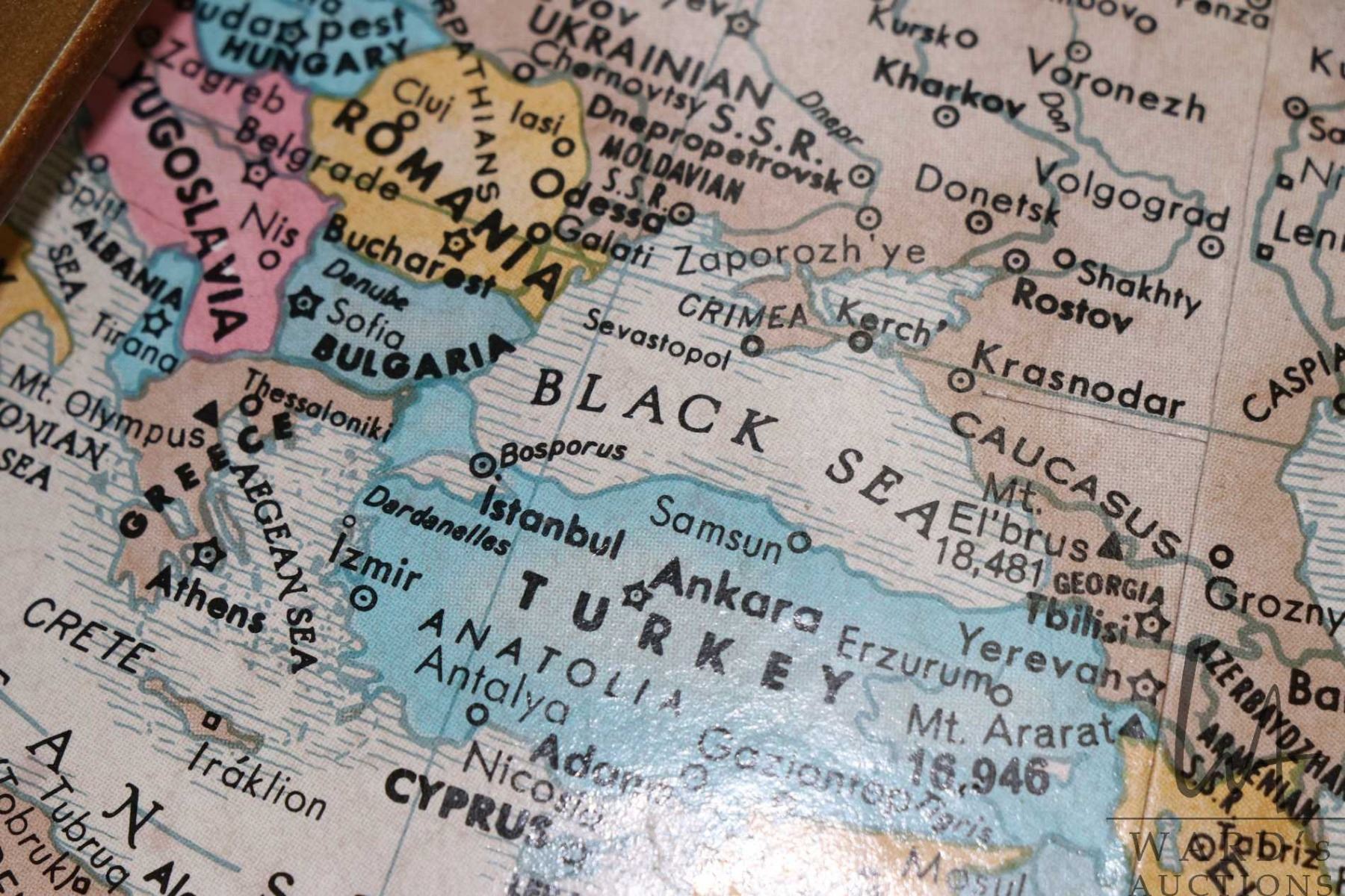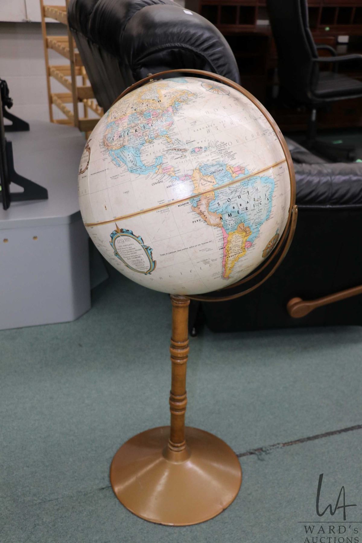 Vintage Replogle 16" diameter floor globe on metal and wood base