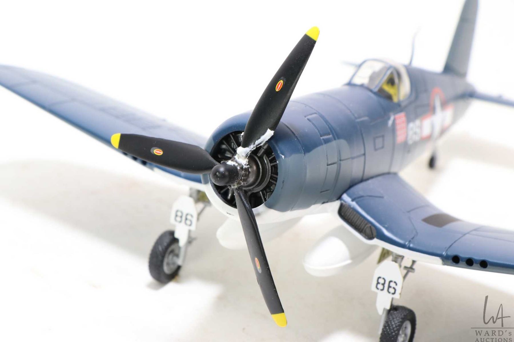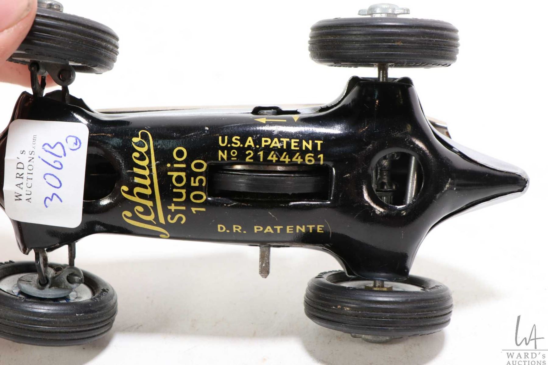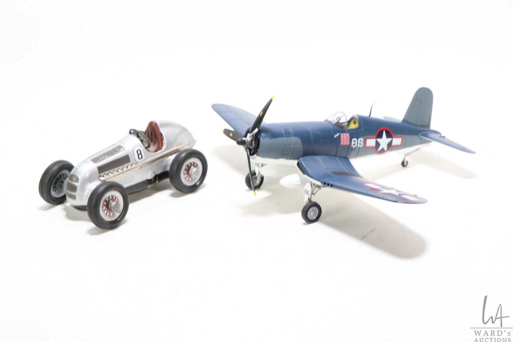 Vintage Schuco Studio 1050 Mercedes roadster with key wind engine, note missing key and a die cast Corsair F 4U airplane, note repair to propeller blade