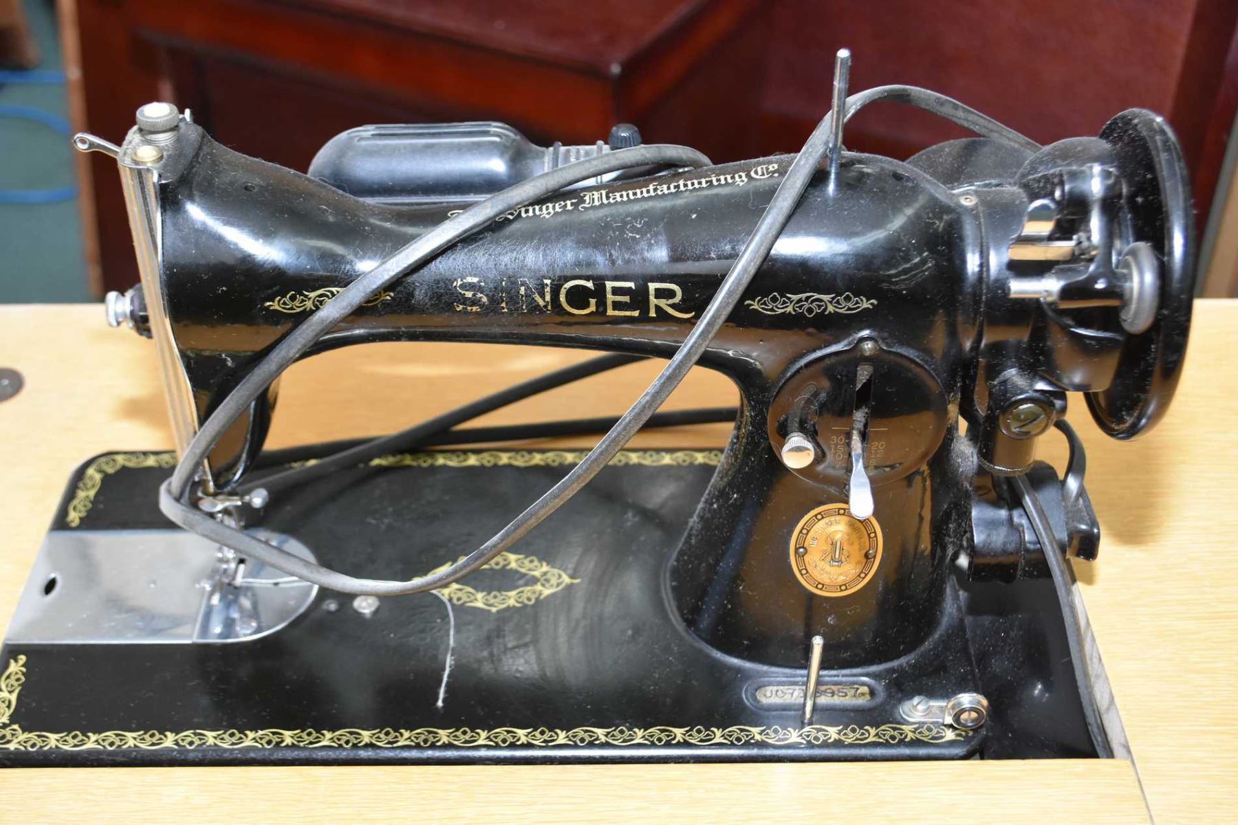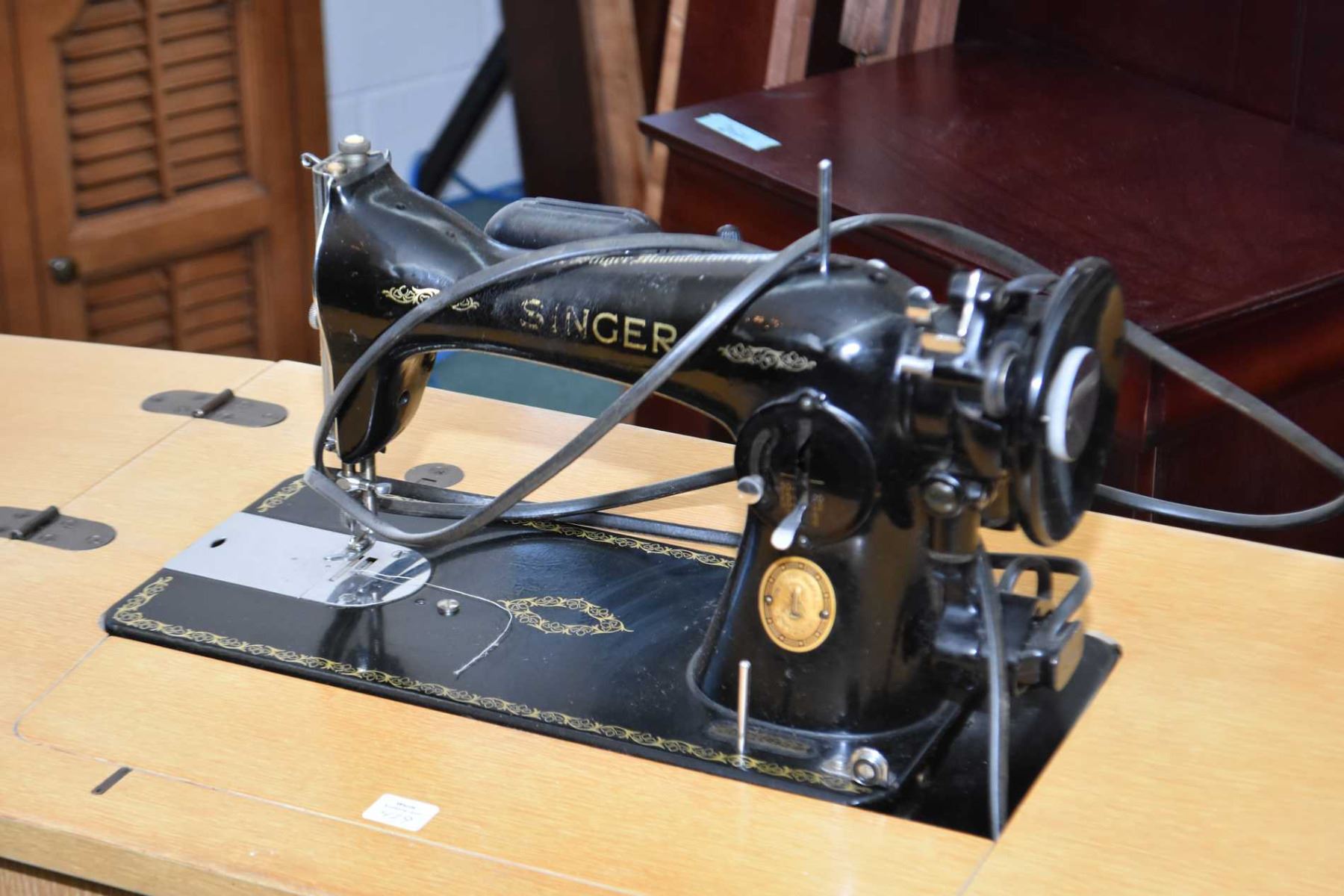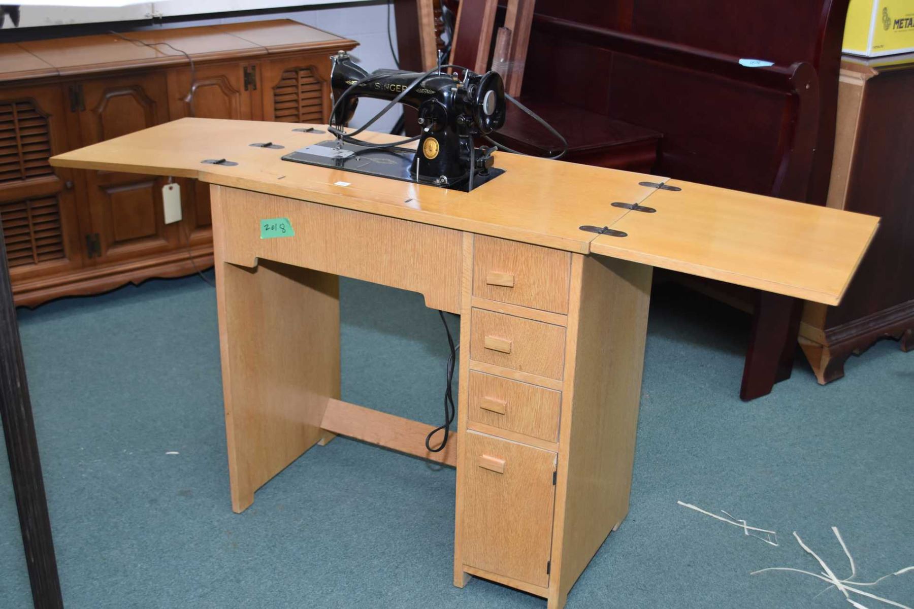 Vintage Singer electric sewing machine in one cupboard and three drawers