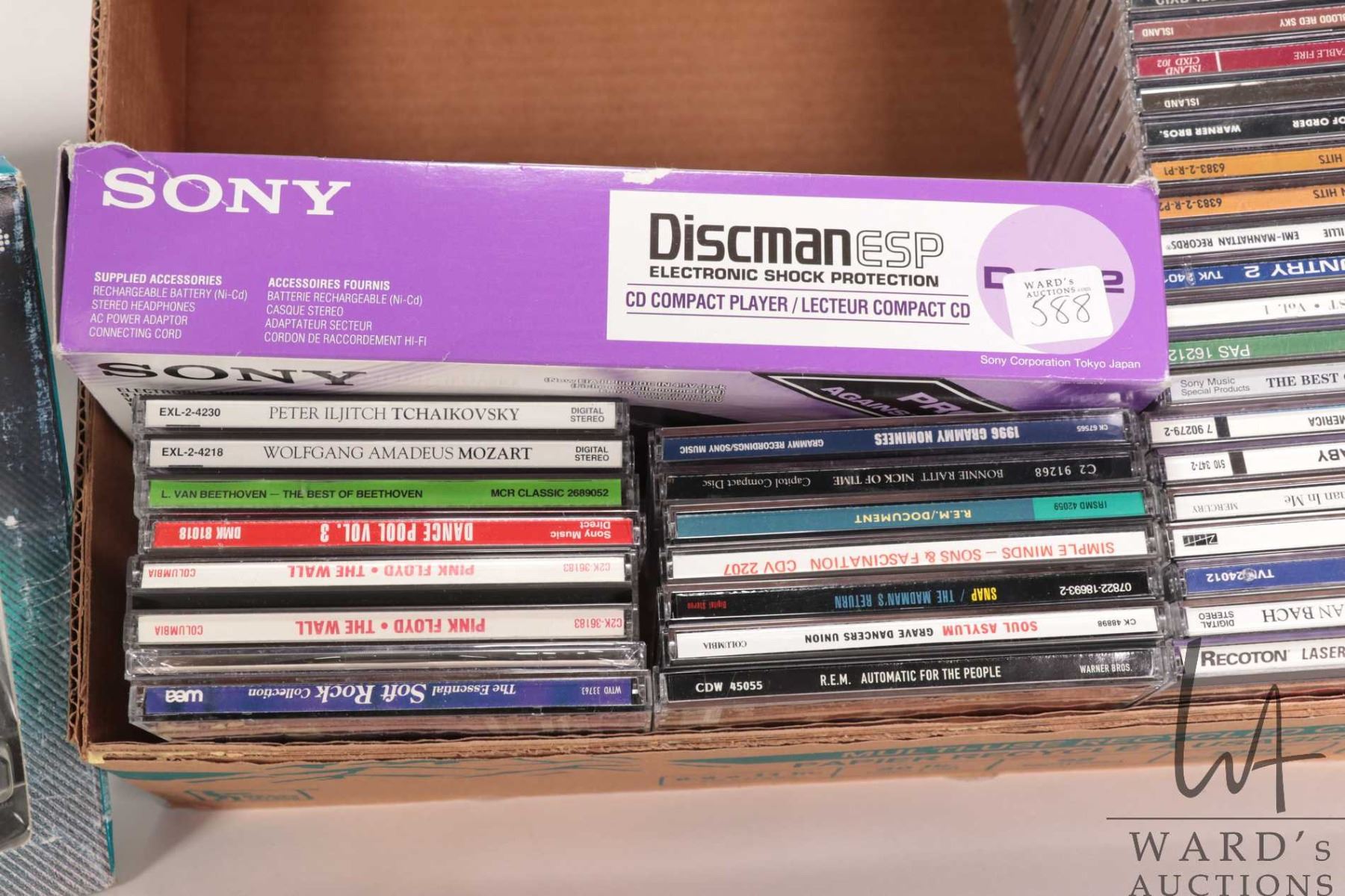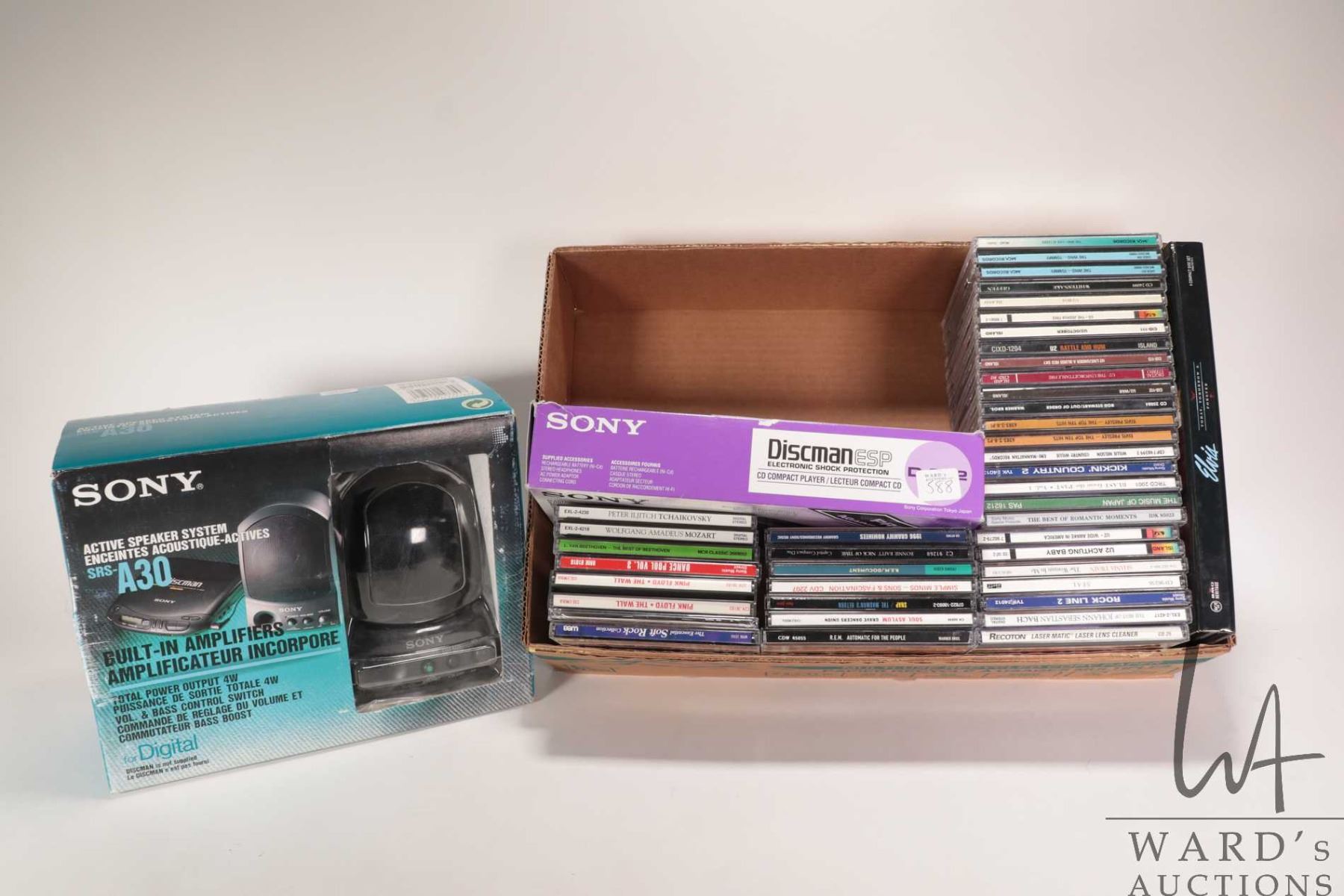 Vintage Sony Discman, Sony Active Speaker System and forty CDs including Rock, Classical etc.