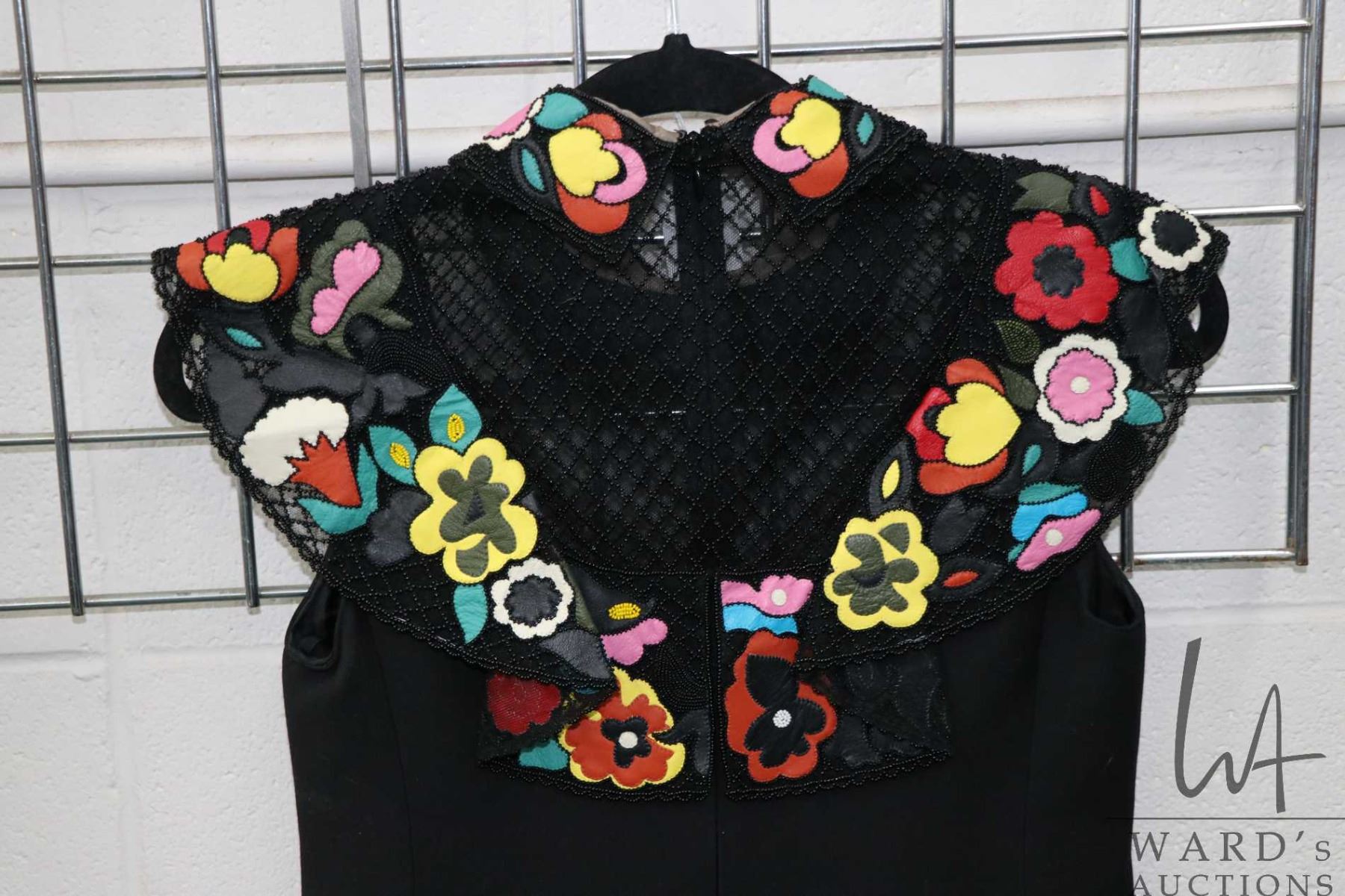 Vintage Valentino beaded floral cocktail dress with leather embellished flowers, slightly ruffled he