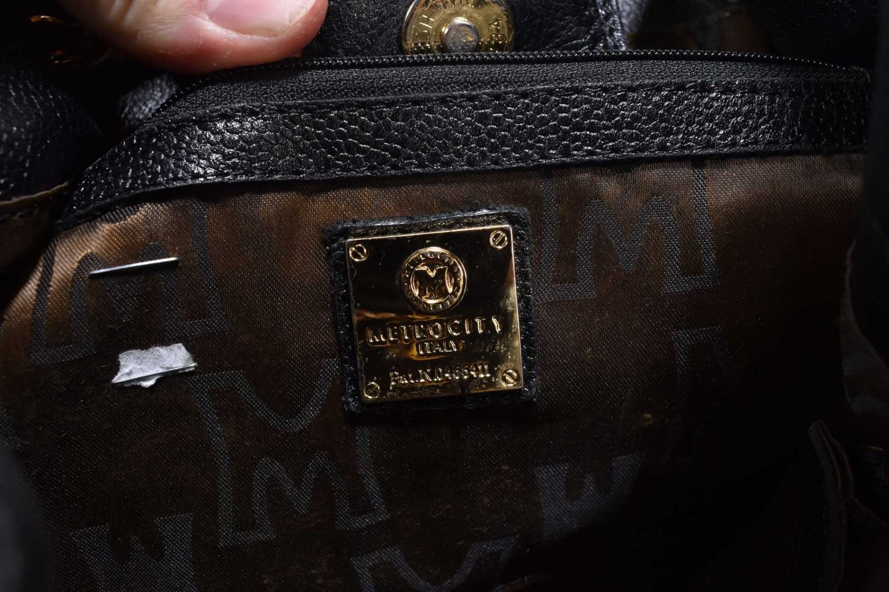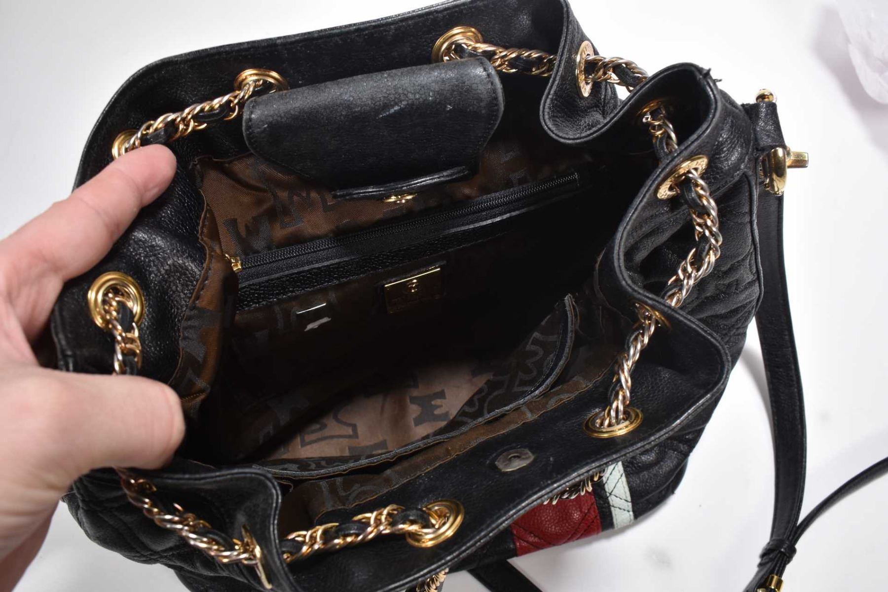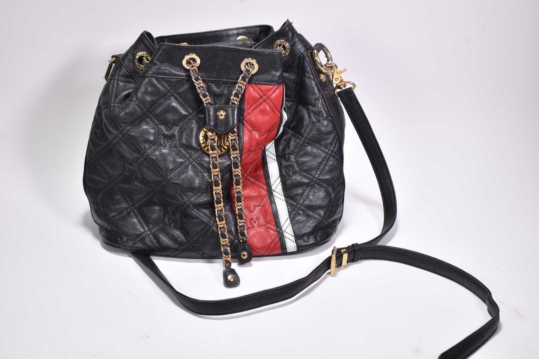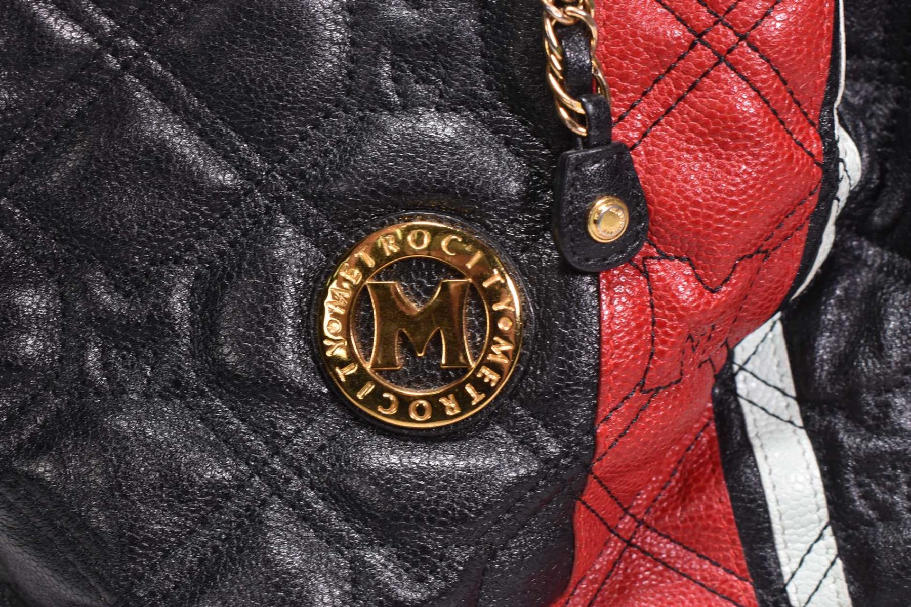 Vintage black leather Metrocity handbag with red and blue leather accents