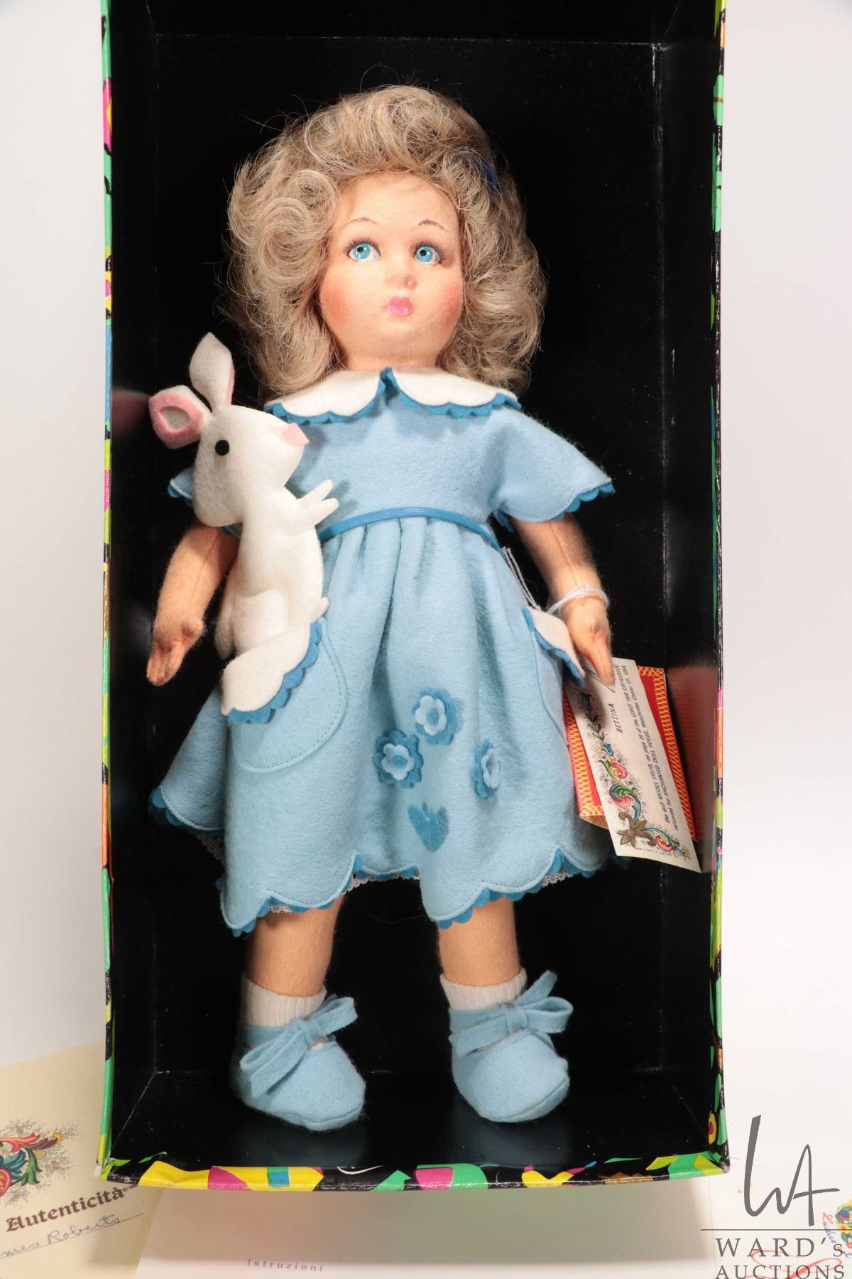 Vintage box Lenci 14" "Bettina" wool felt doll with original box, hang tag and numbered certificate
