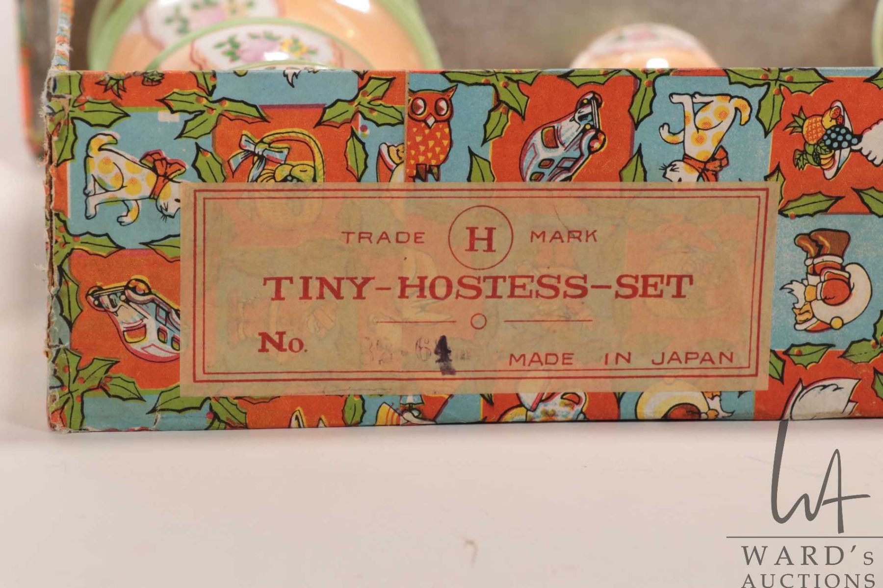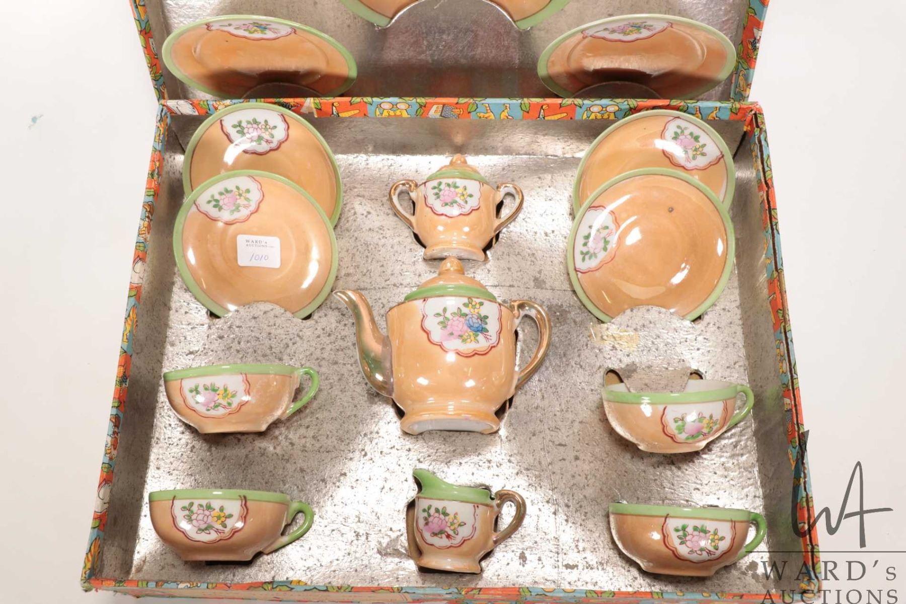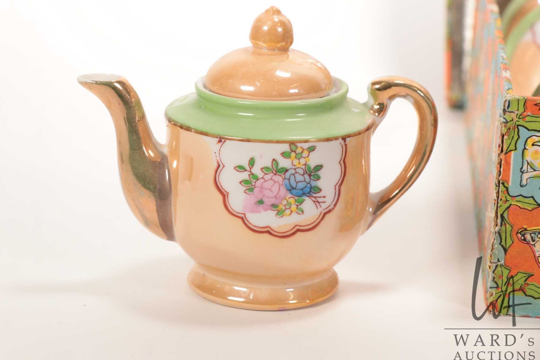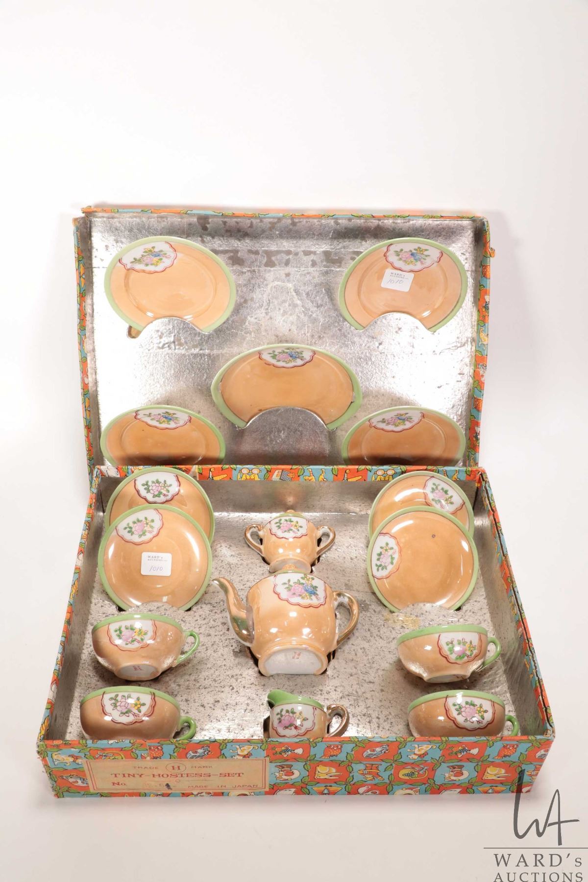 Vintage boxed Japanese "Tiny-Hostess-Set" including child sized lusterware teapot, cream and lidded