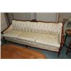 Vintage button tufted full sized sofa with carved show wood, note upholstery is quite dirty