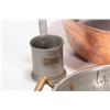 Vintage copper and tin lined 10" pan with brass handle, a 6 1/2" sauce pan with cast metal handle pl
