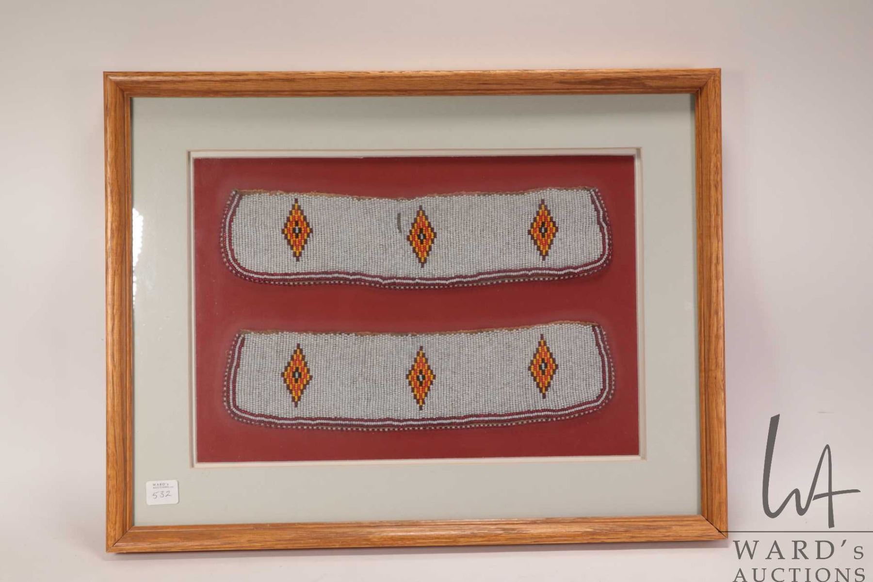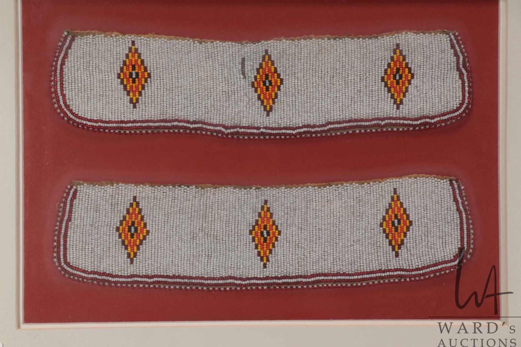 Vintage framed Indigenous beadwork cuffs/ collar (?), overall dimensions including frame 15" X 19 1/