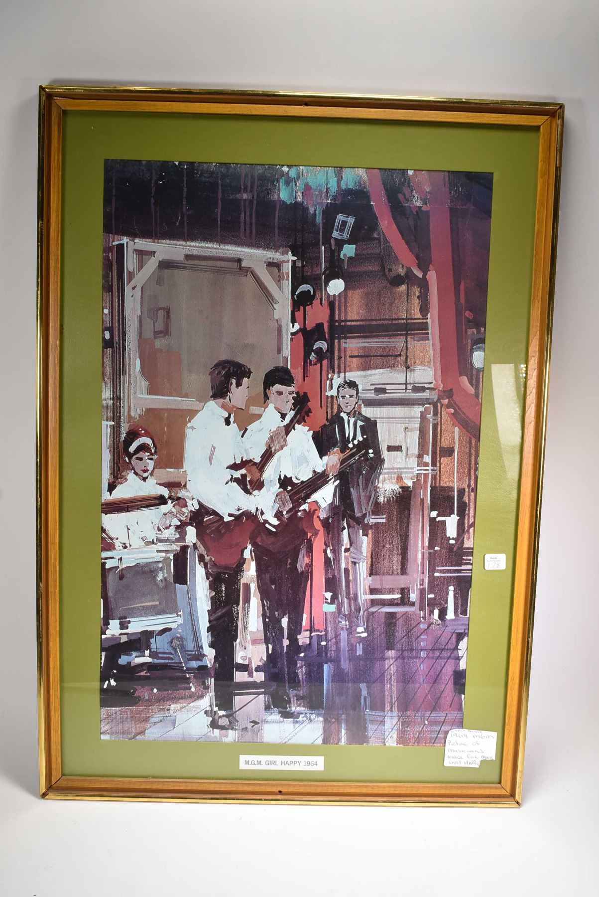 Vintage framed print for the Elvis movie "Happy Girls" circa 1964 purportedly from guest rooms from the MGM Grand, Las Vegas