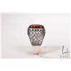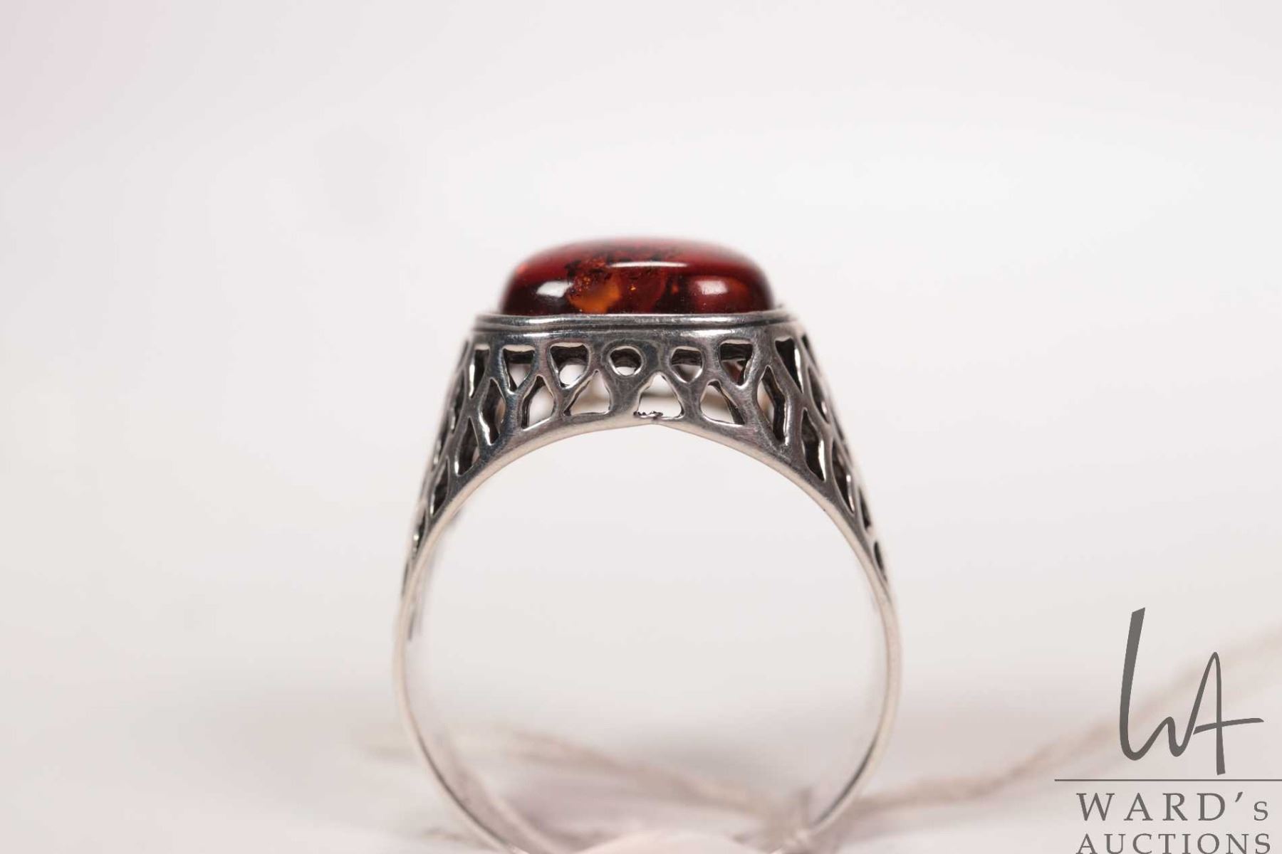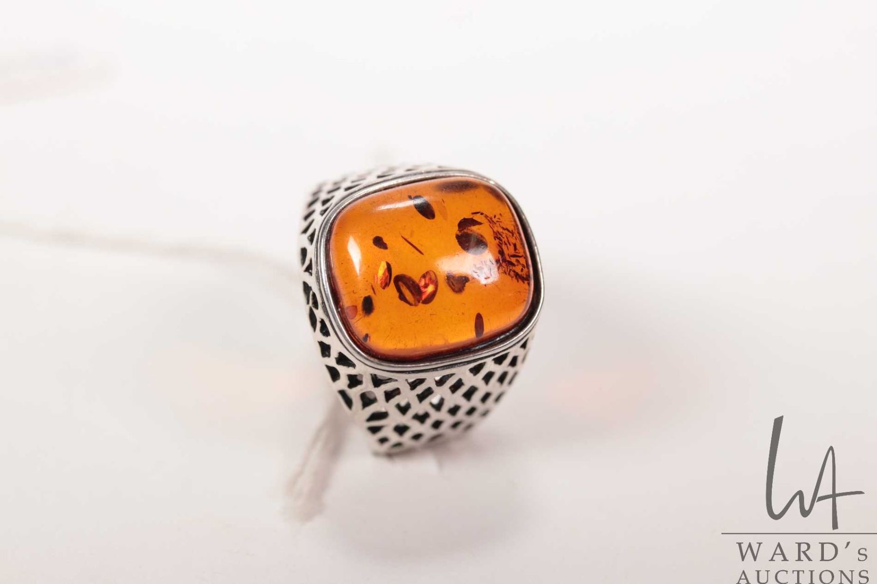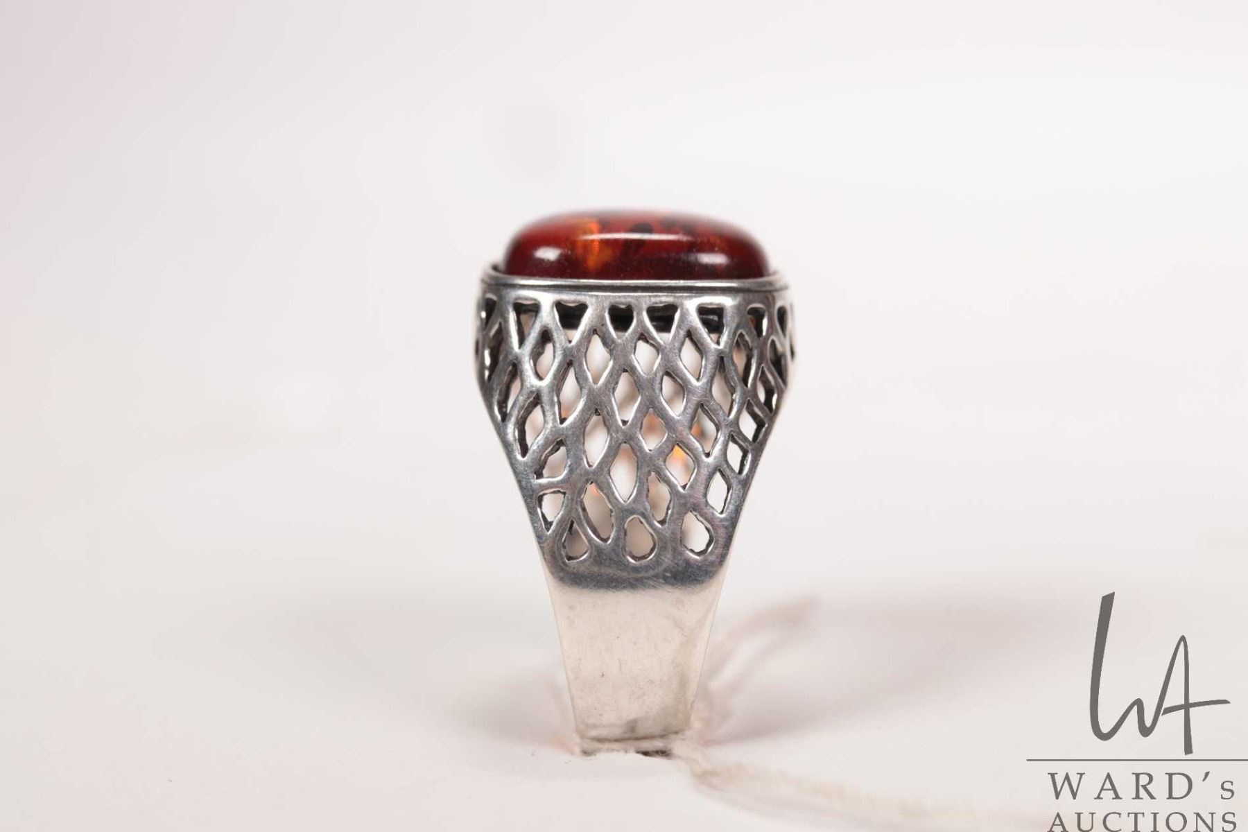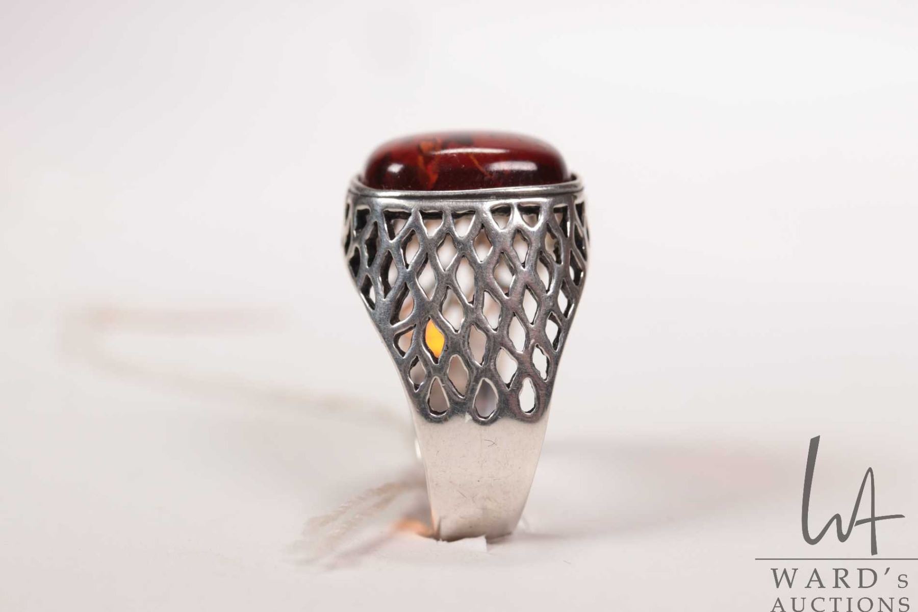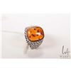 Vintage gent's sterling silver pierced work ring set with amber, marked .925 Poland, size 10.5