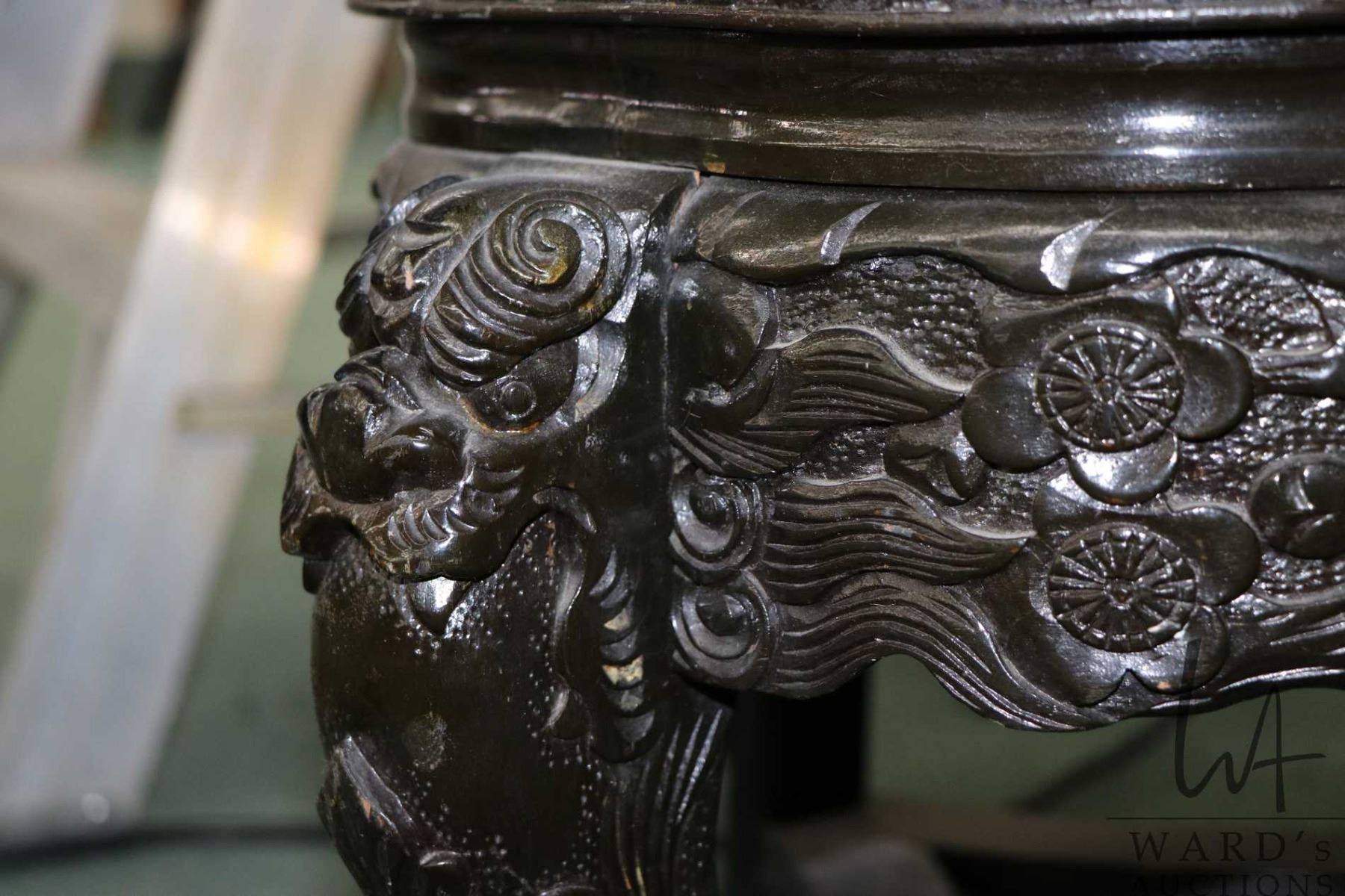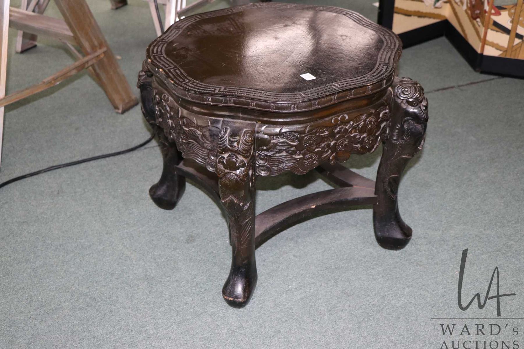 Vintage hand carved Oriental occasional table with lion head decoration 17 1/2' in height