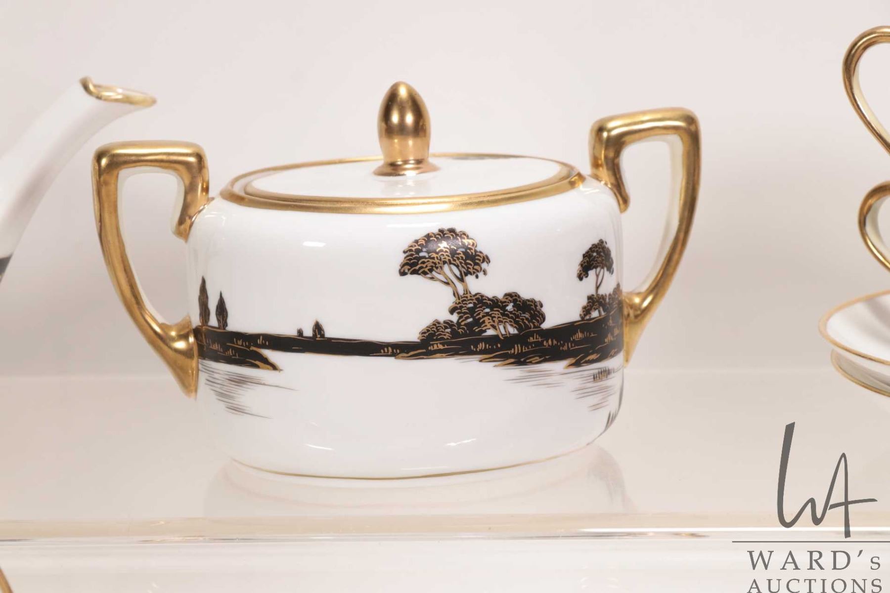 Vintage hand painted Nippon tea service with teapot, cream, lidded sugar and five cups and saucers