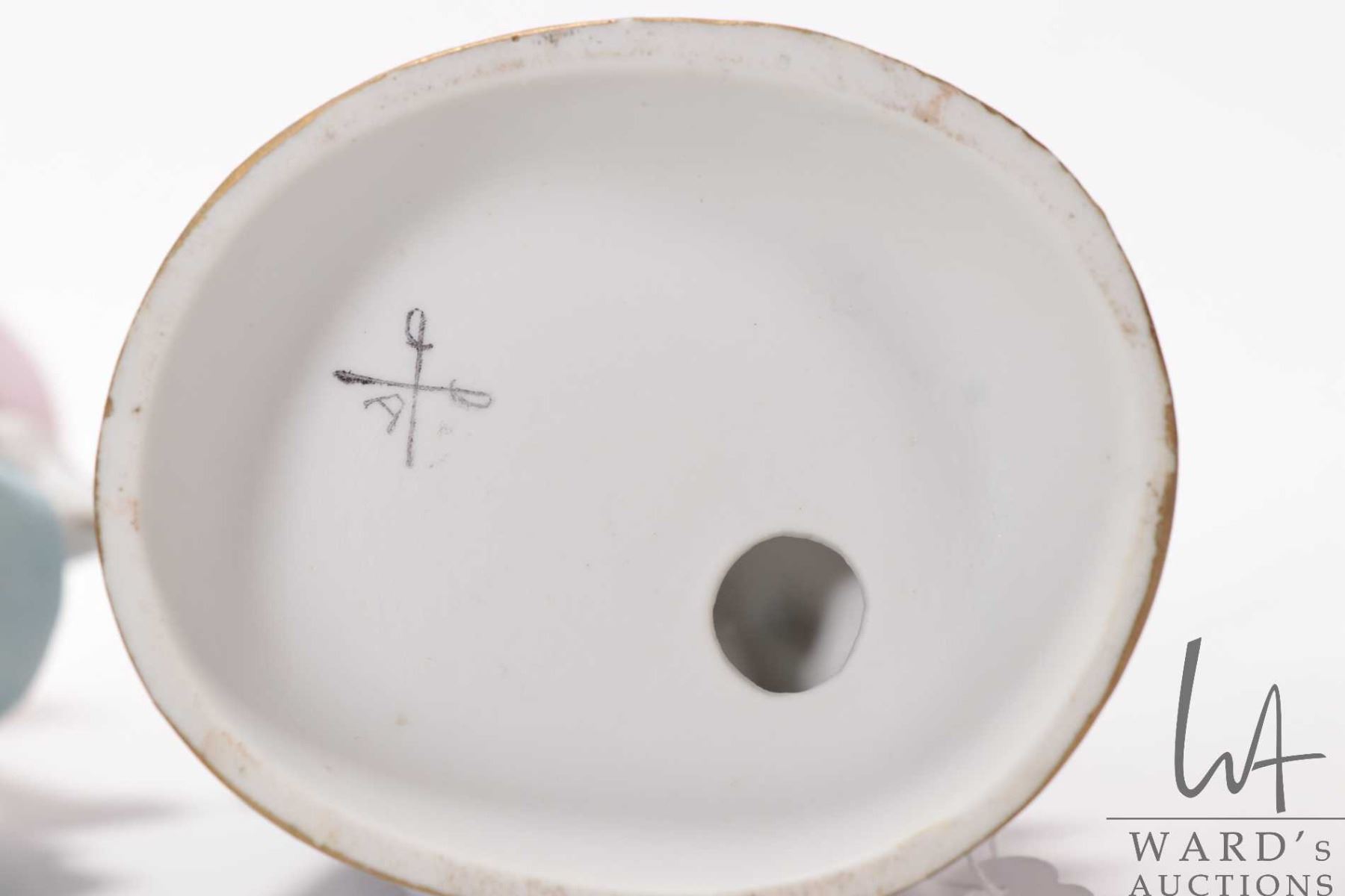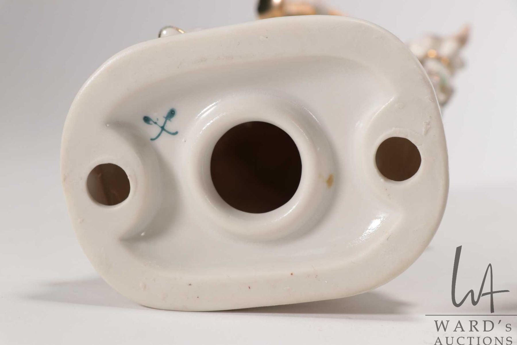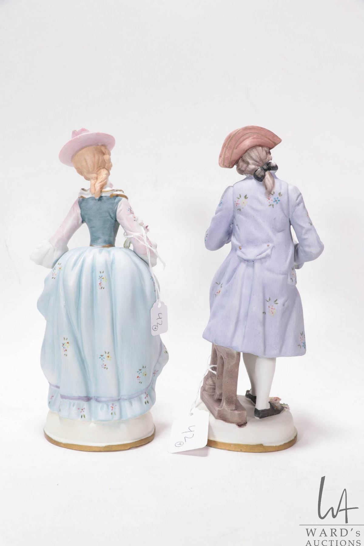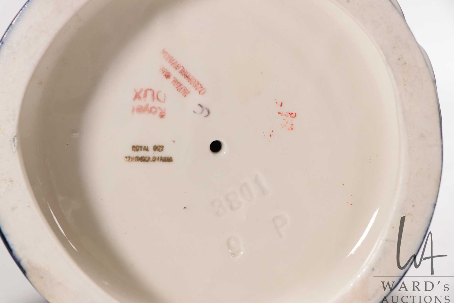 Vintage hand painted figurines including Royal Dux 10" lady, plus a couple and a small trumpeter