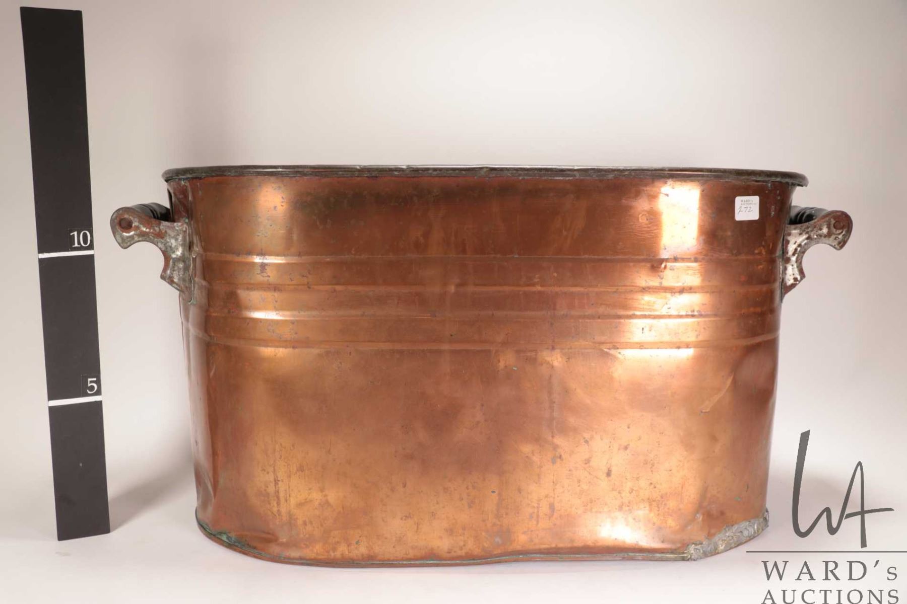 Vintage large double handled copper wash tub, 23" long X 13" wide