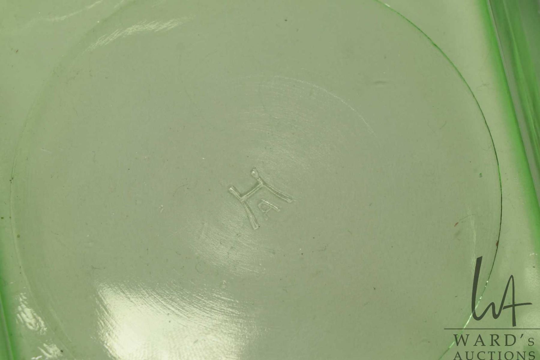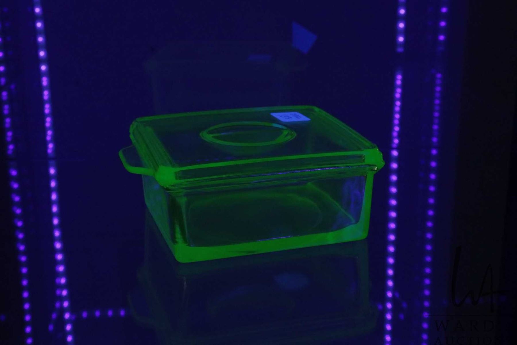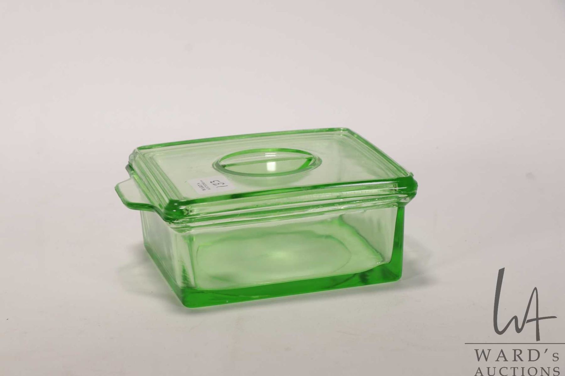 Vintage lidded Uranium glass refrigerator box 4 1/2" X 5" X 2" deep