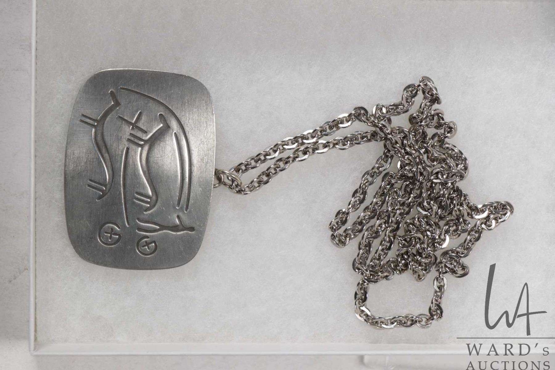 Vintage mid century Jorgen Jensen, Denmark modernist Chariot pendant no. 163, on 26" neck chain