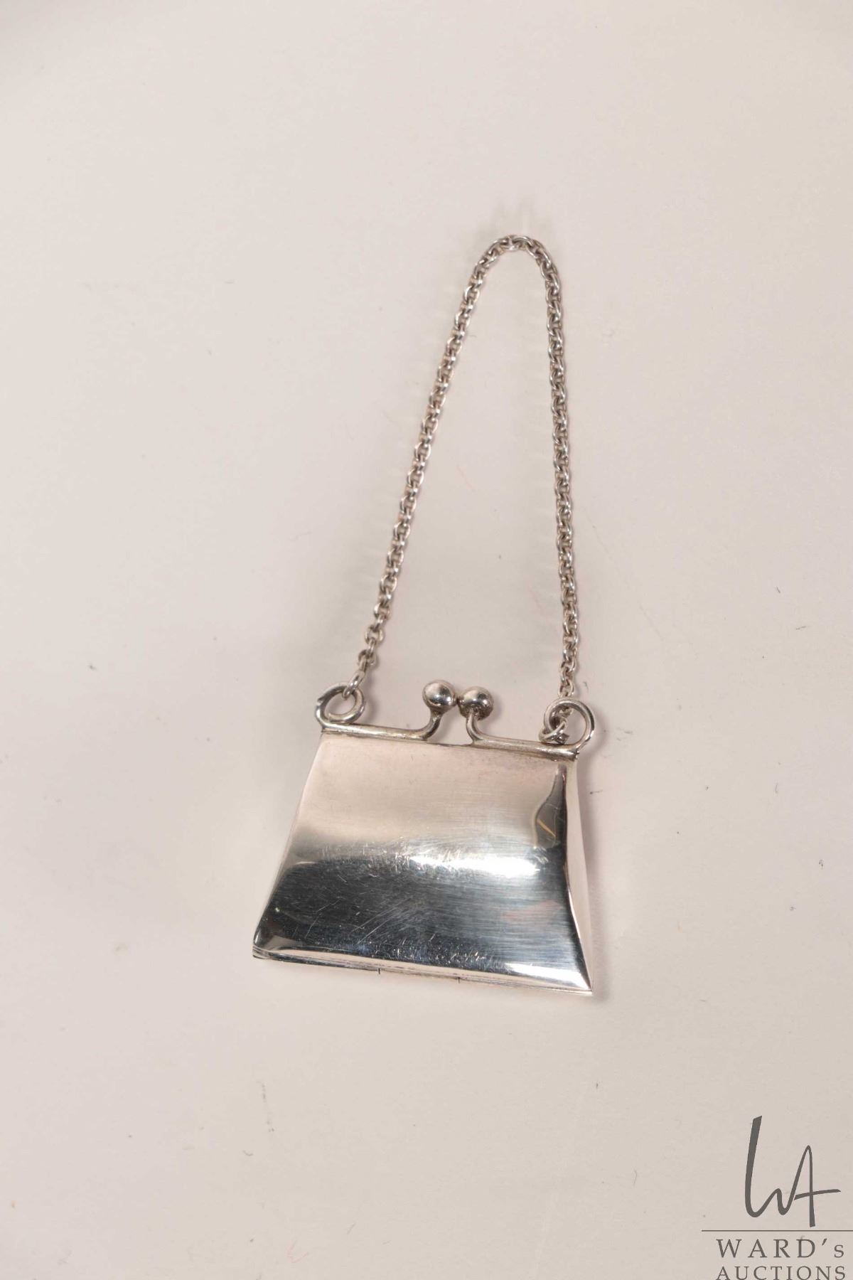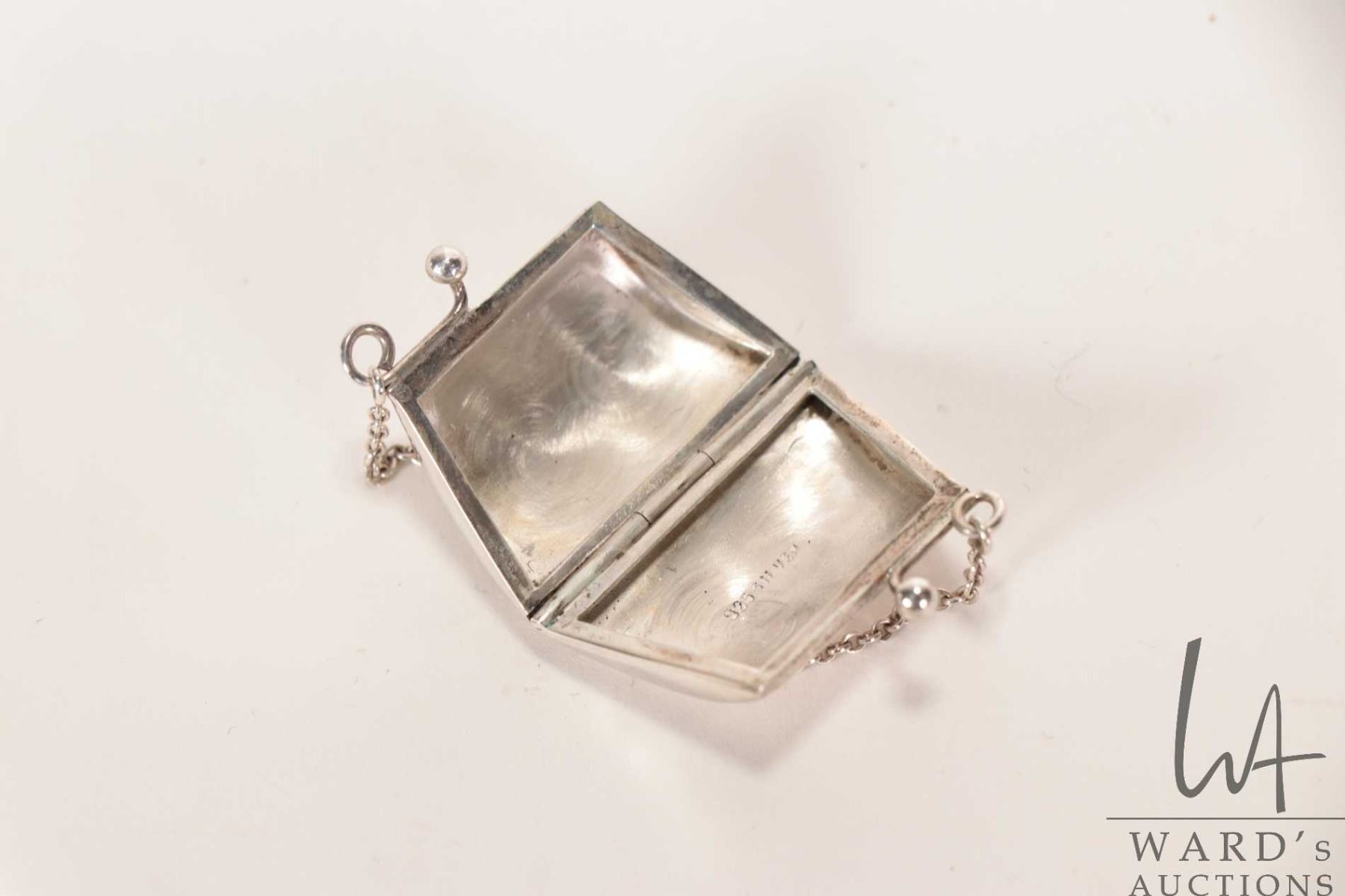 Vintage miniature sterling silver purse, marked 925 silver, 1" X 1" plus chain