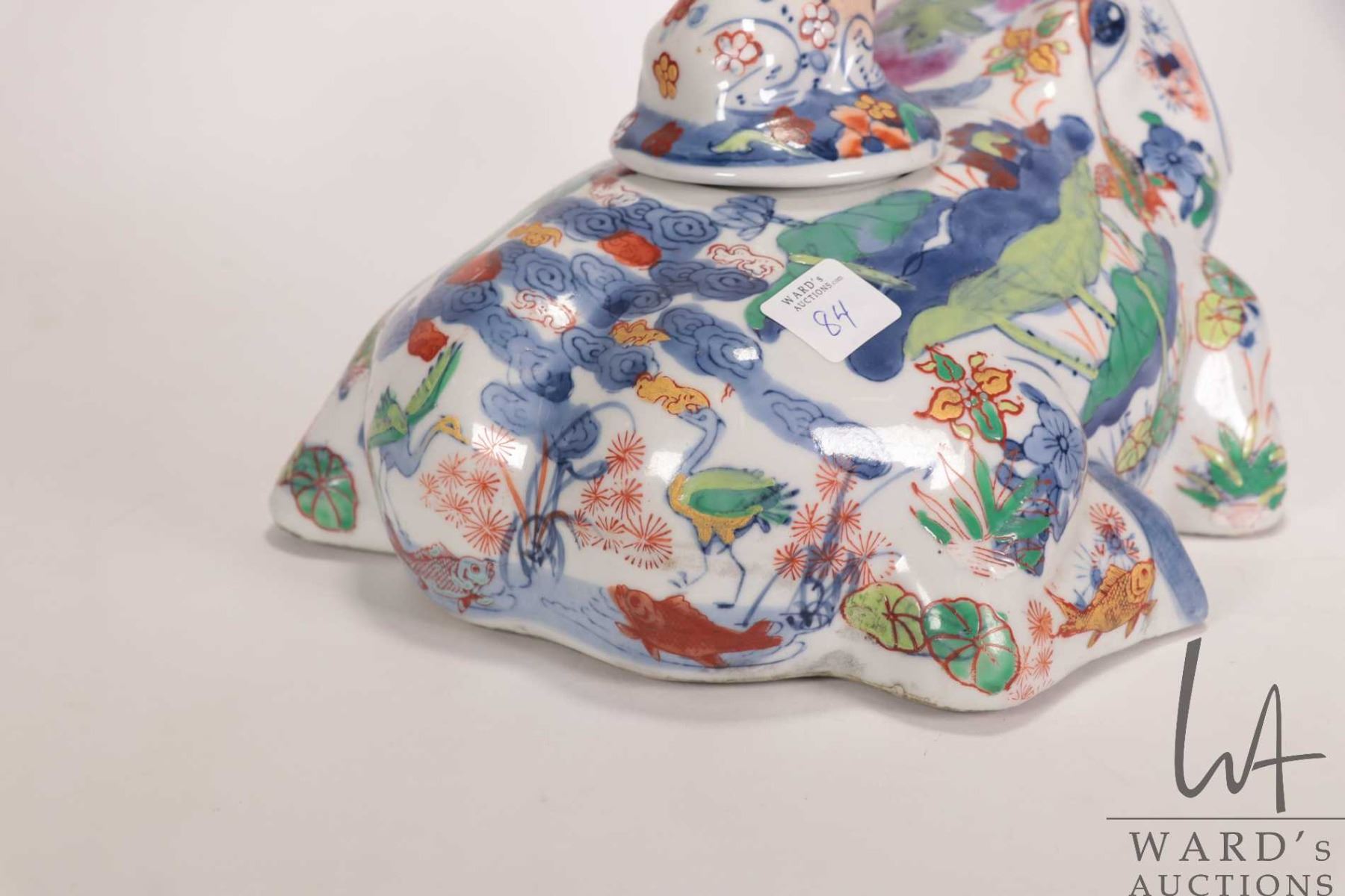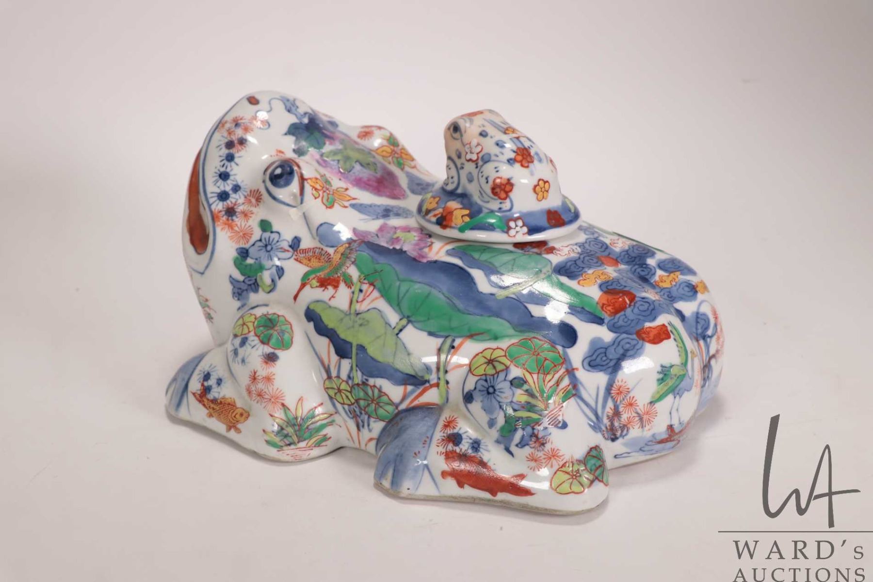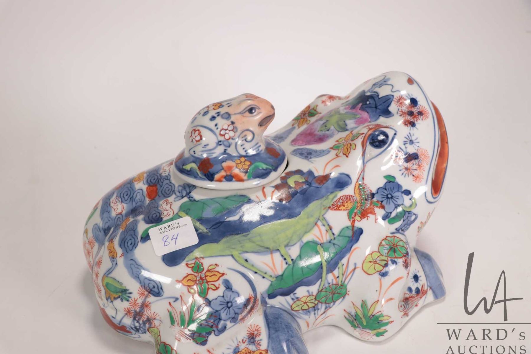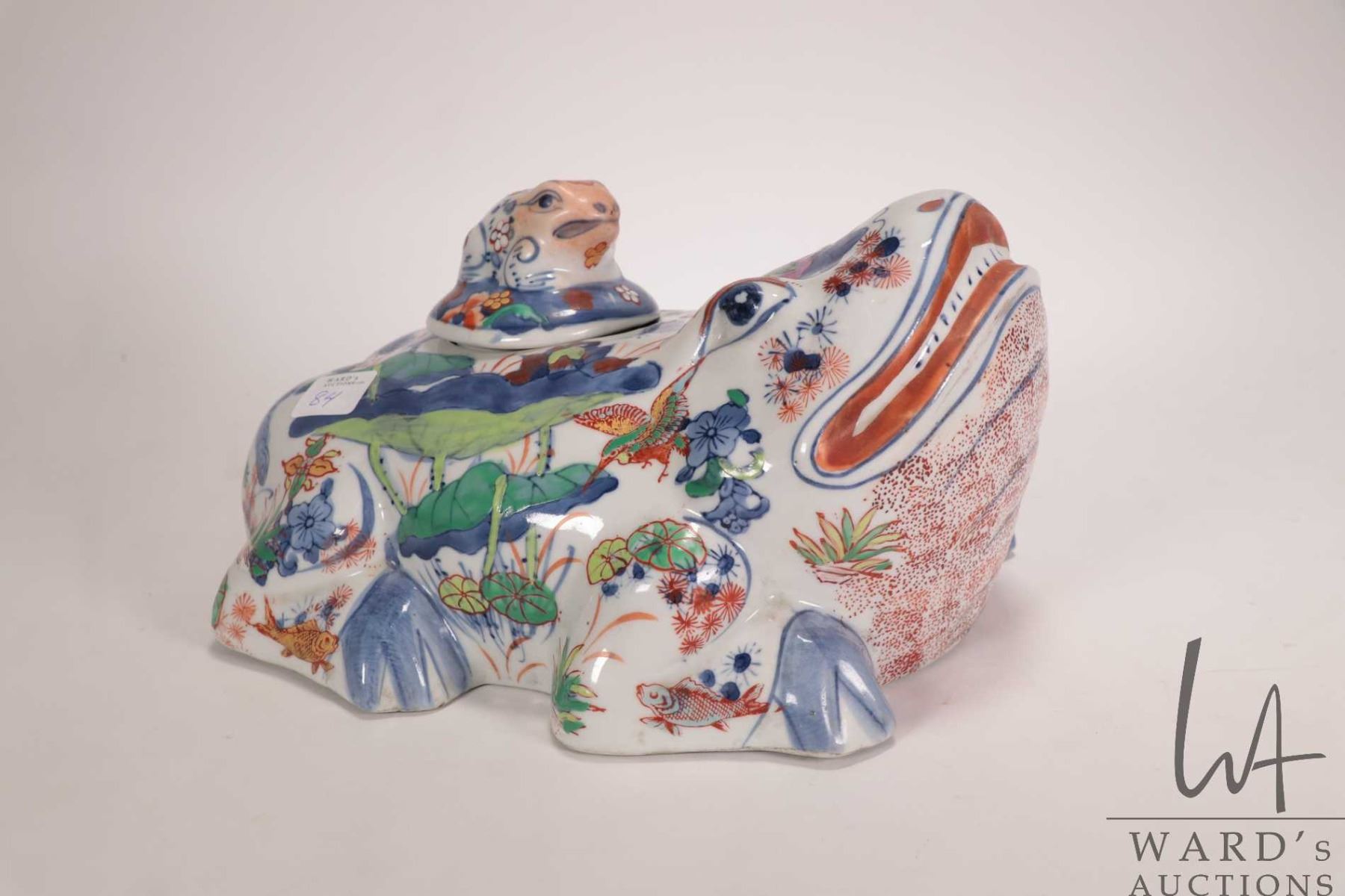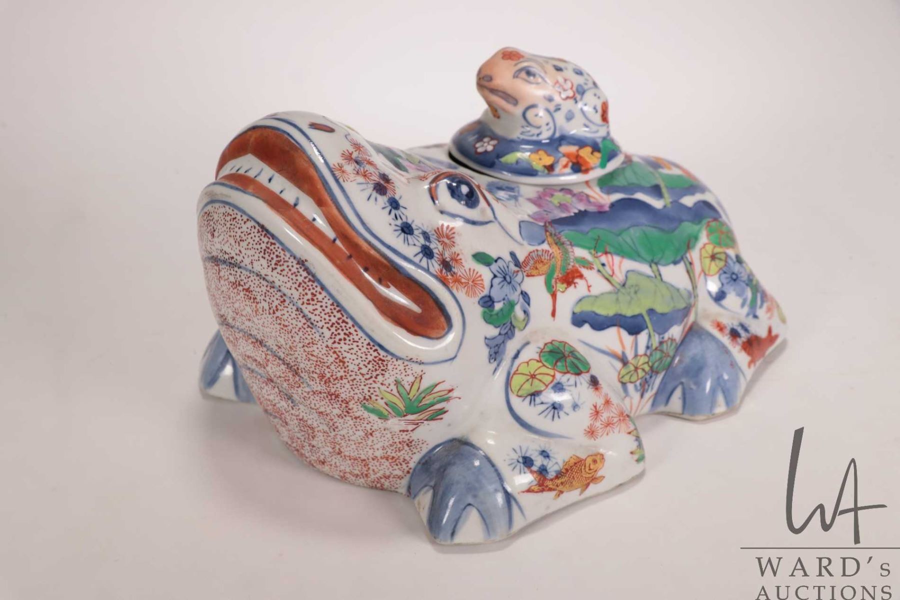 Vintage oriental Doucai porcelain lidded frog container, 10" in length