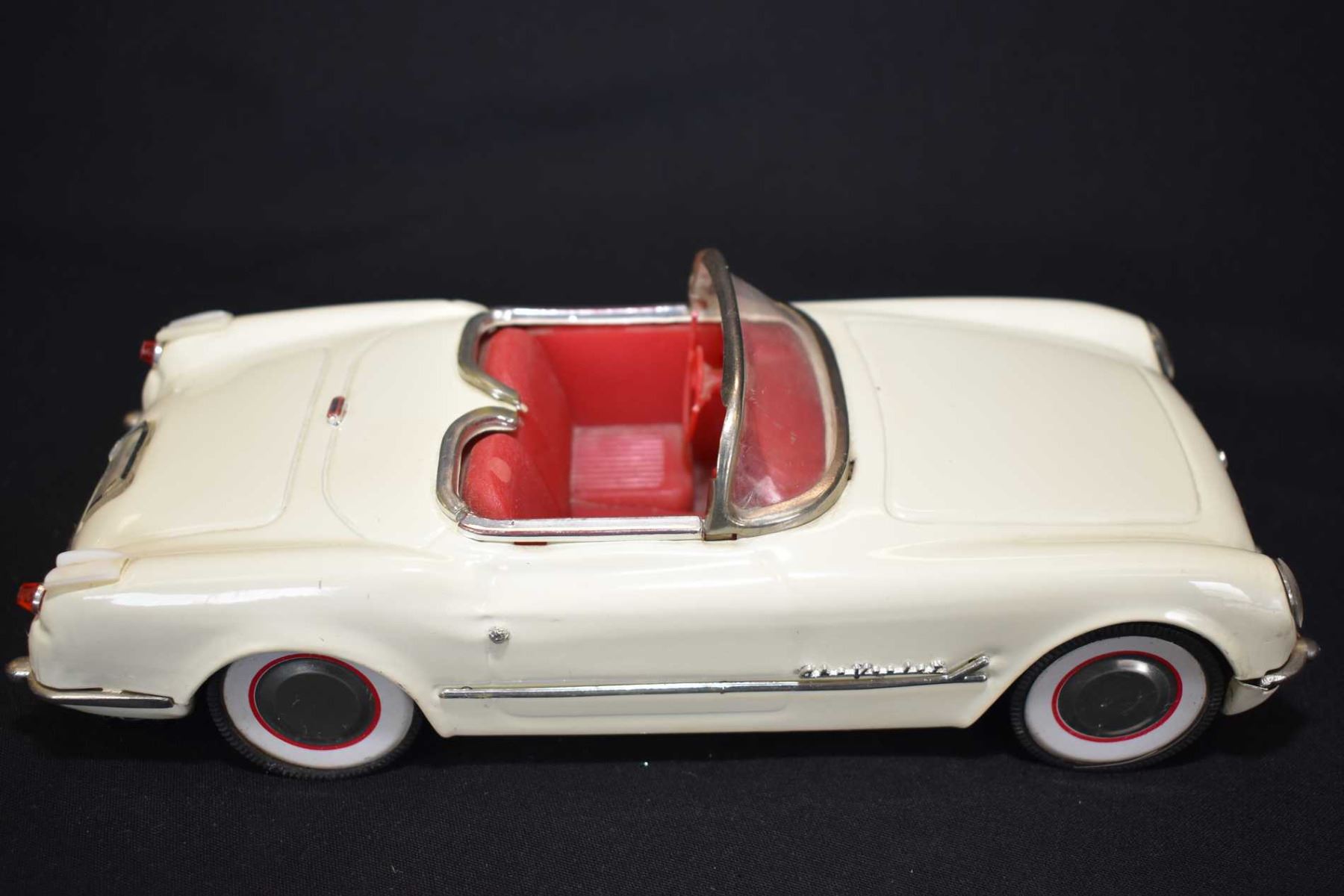 Vintage pressed tin Chinese made 1955 Corvette friction car, 10" in length