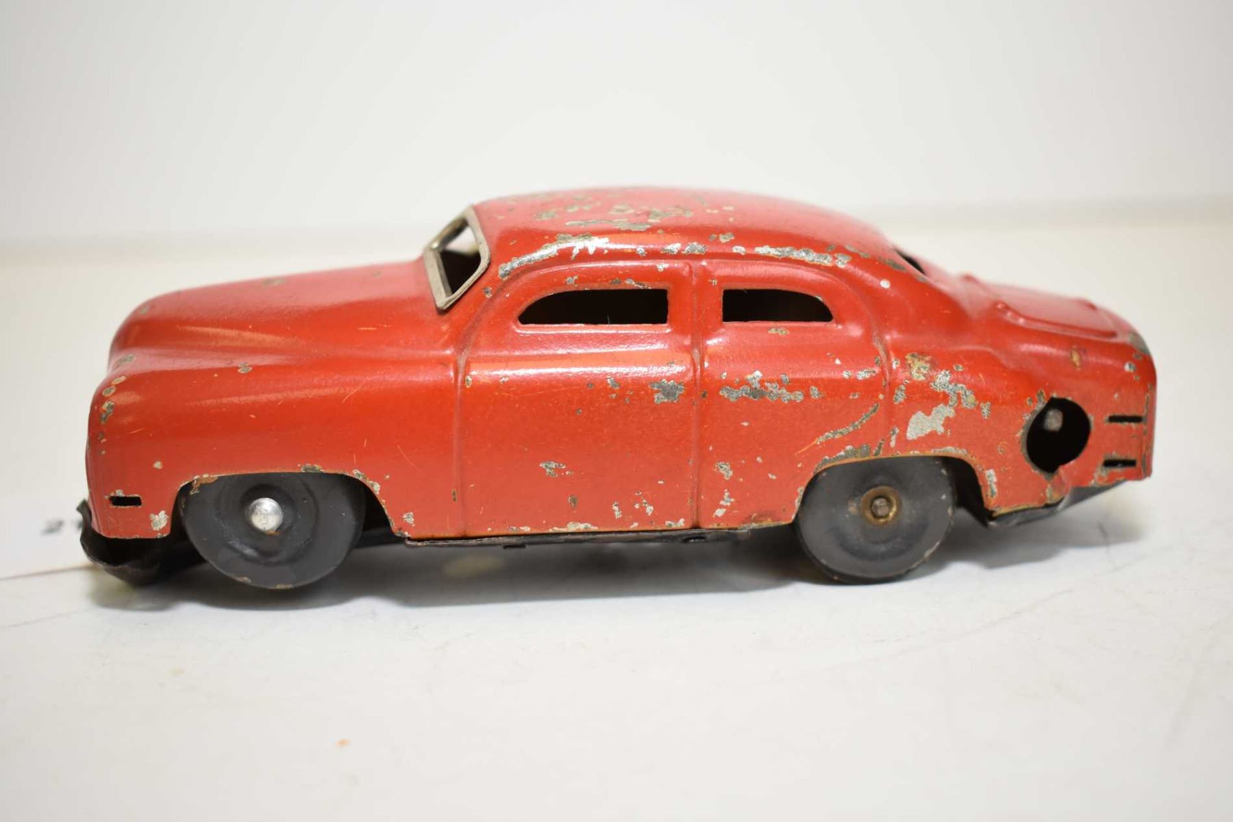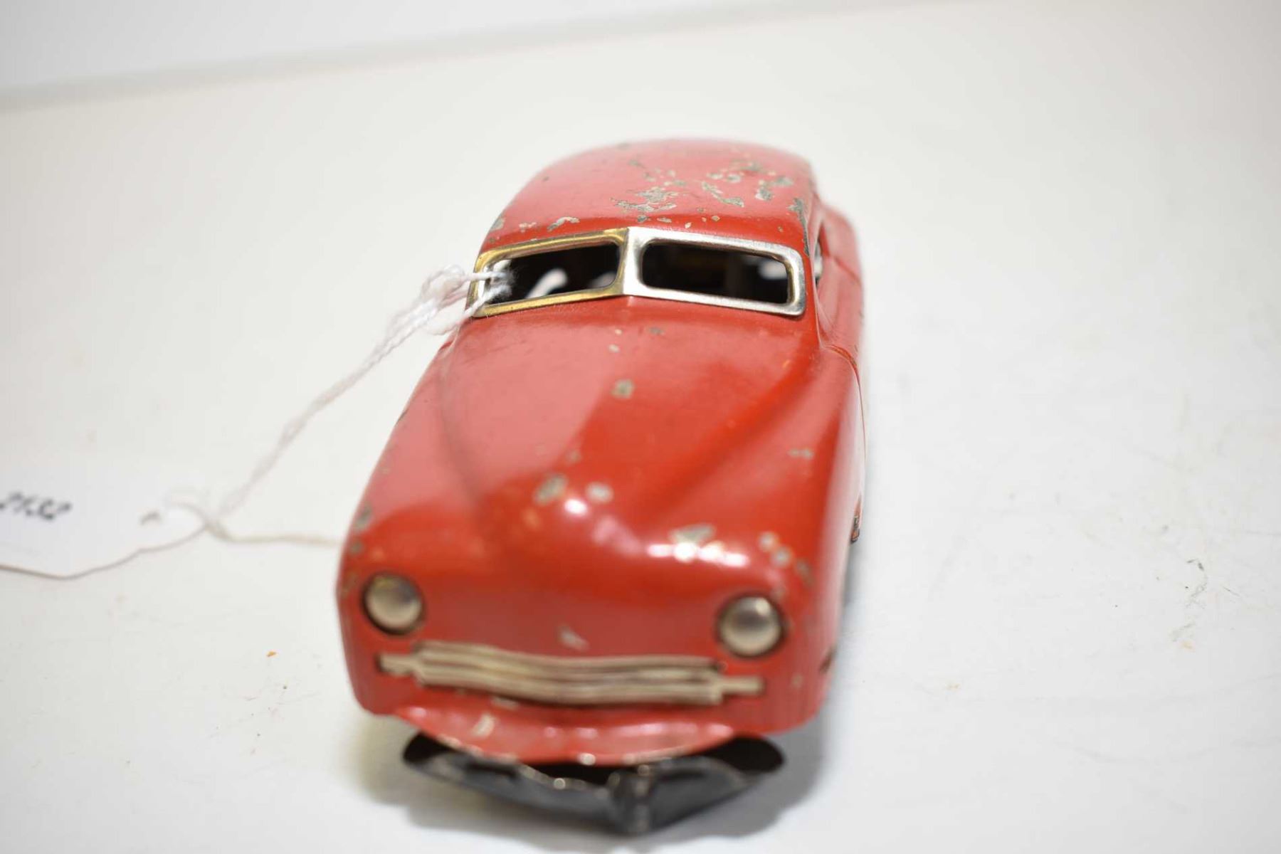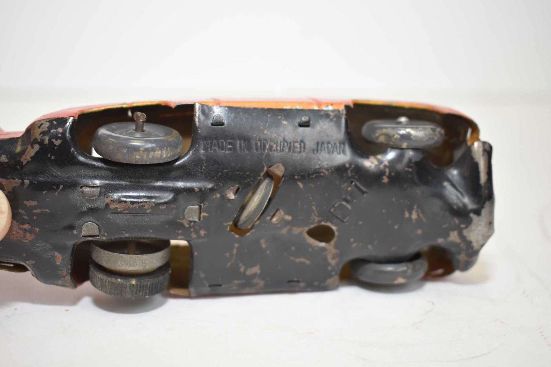 Vintage pressed tin toy car made in Occupied Japan, 5 1/2" in length