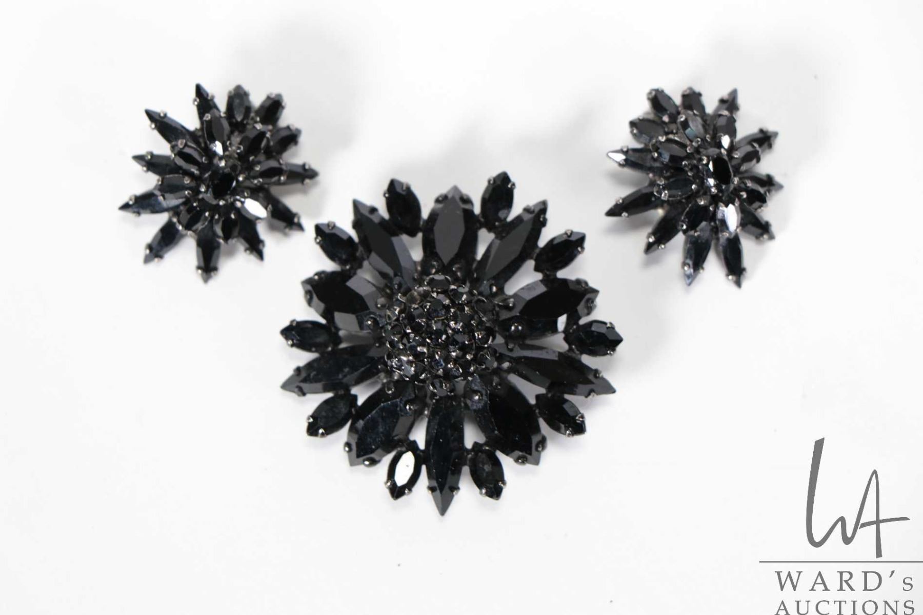 Vintage signed Sherman brooch with Japanned black backing with a pair or matching earrings