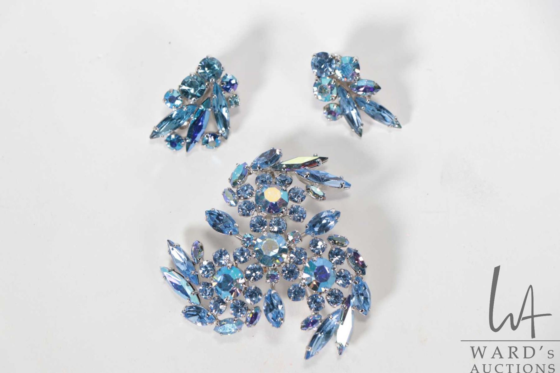 Vintage signed Sherman iridescent blue brooch with matching earrings