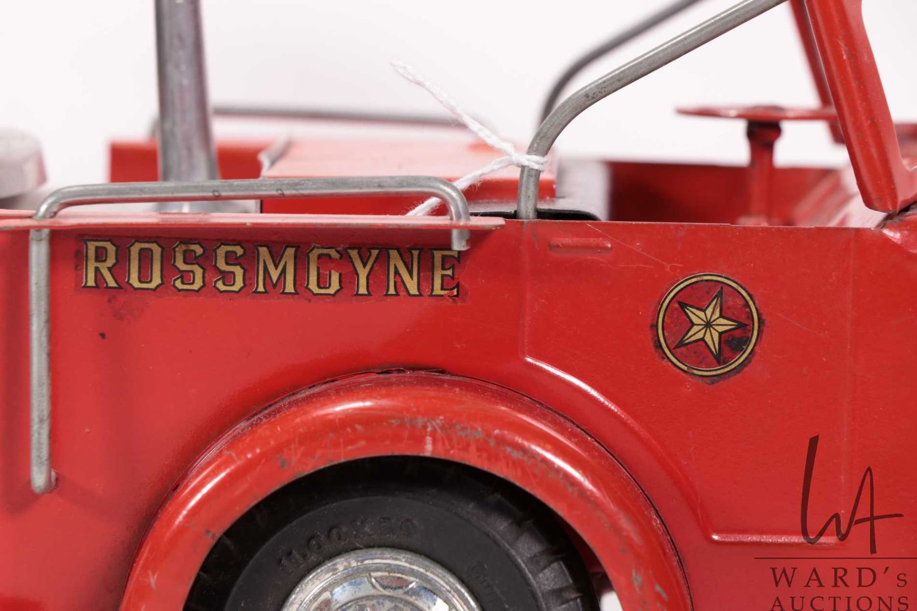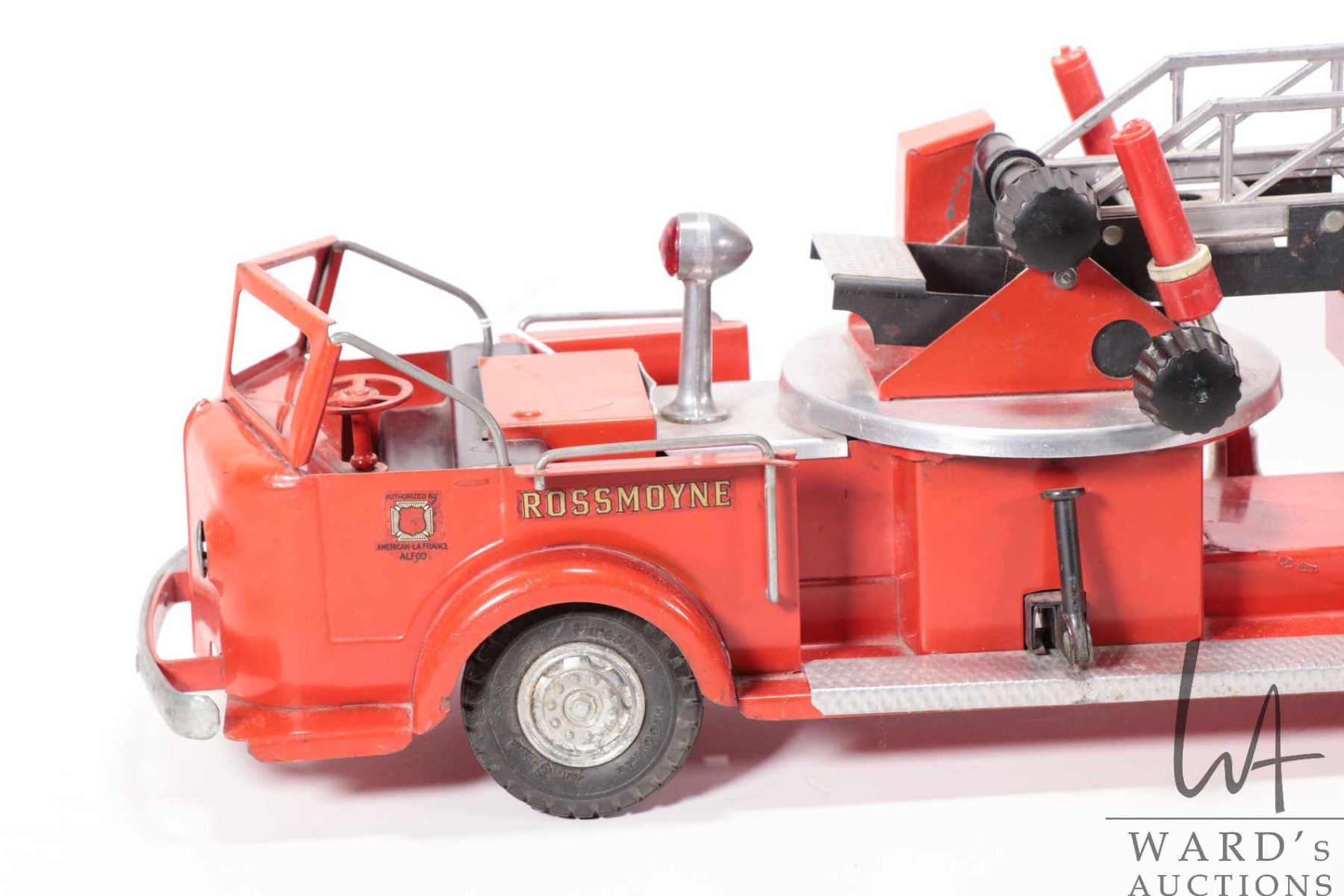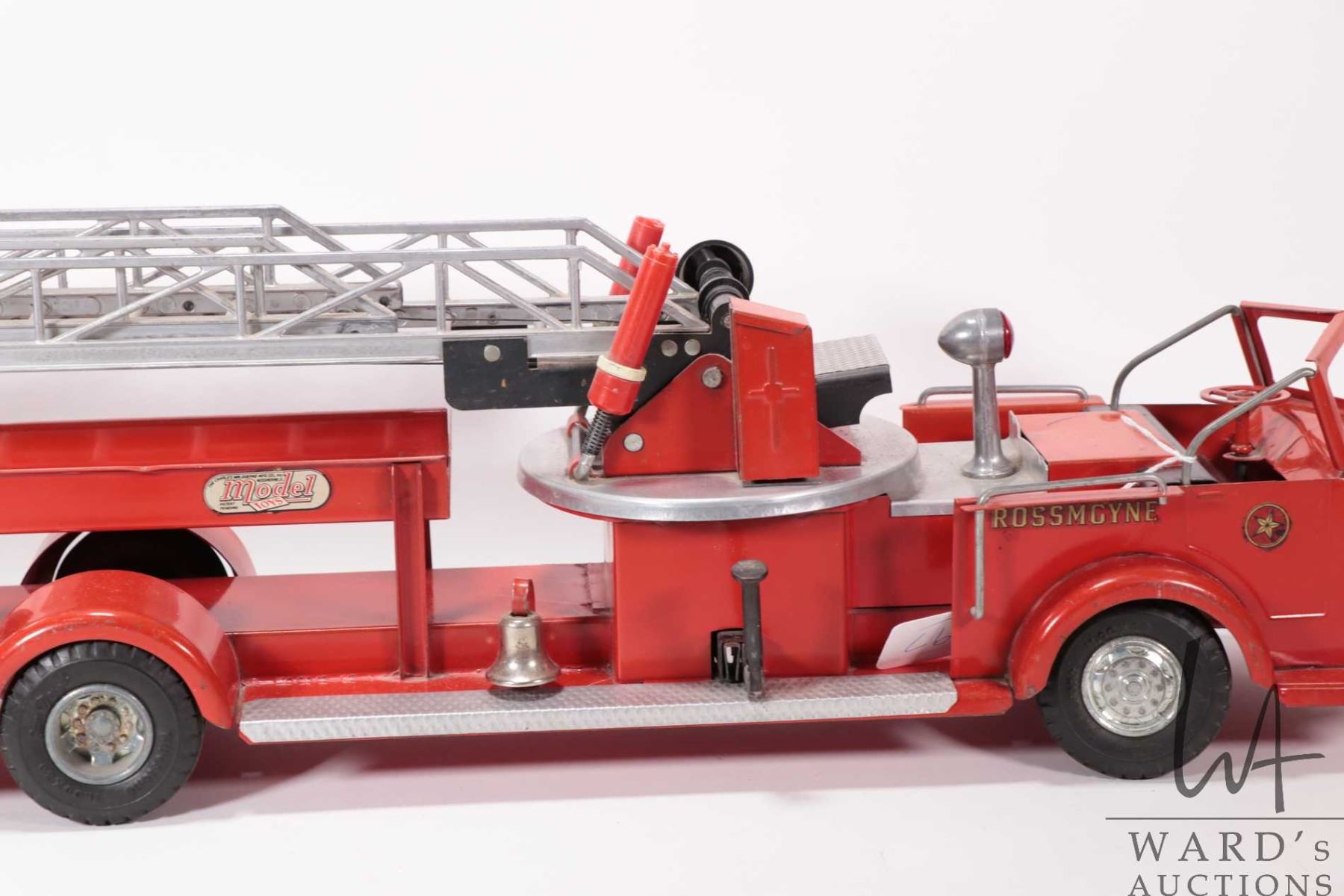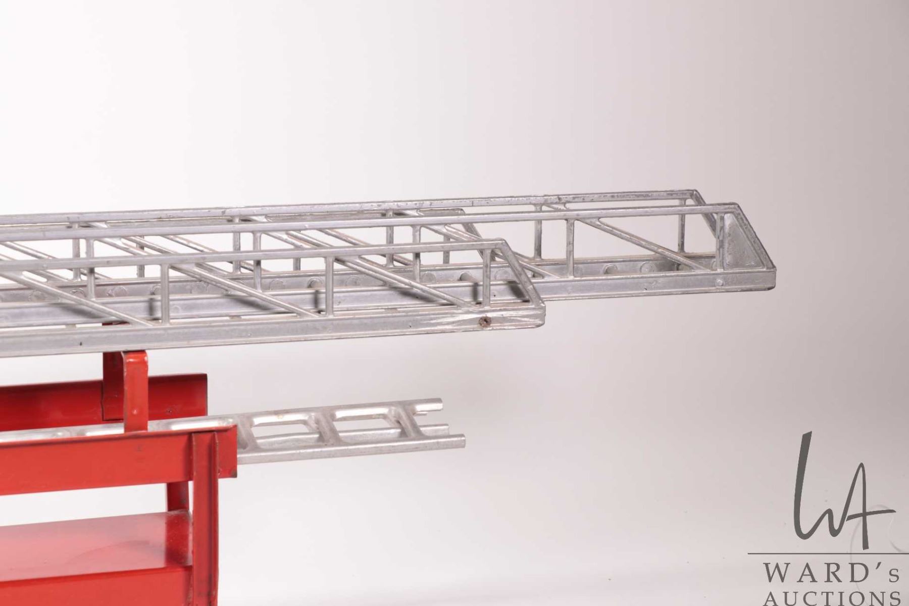 Vintage stamped tin ladder truck marked "The Charles W.M. Doepke Mfg. Co., Rossmoyne Model Toys" wit