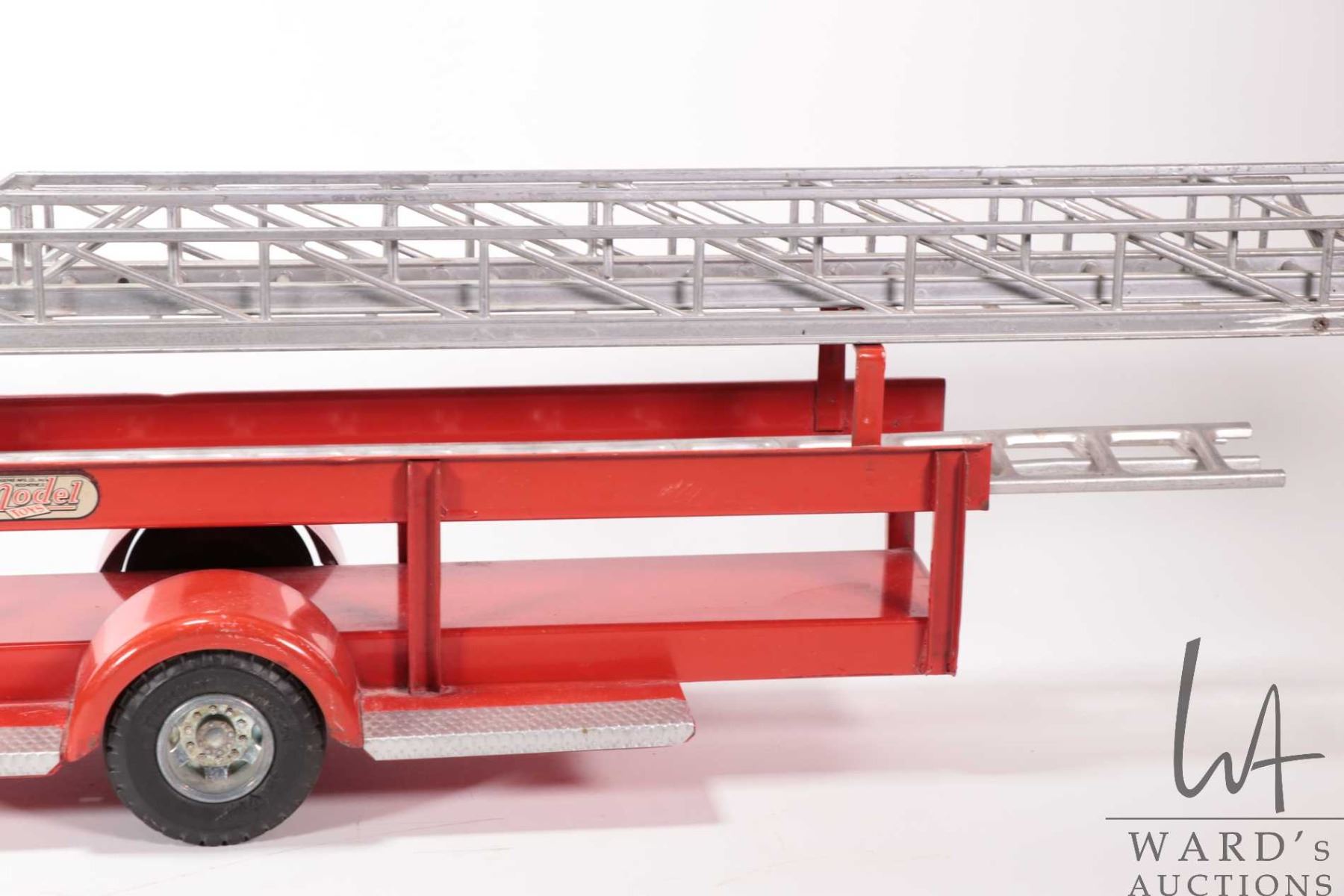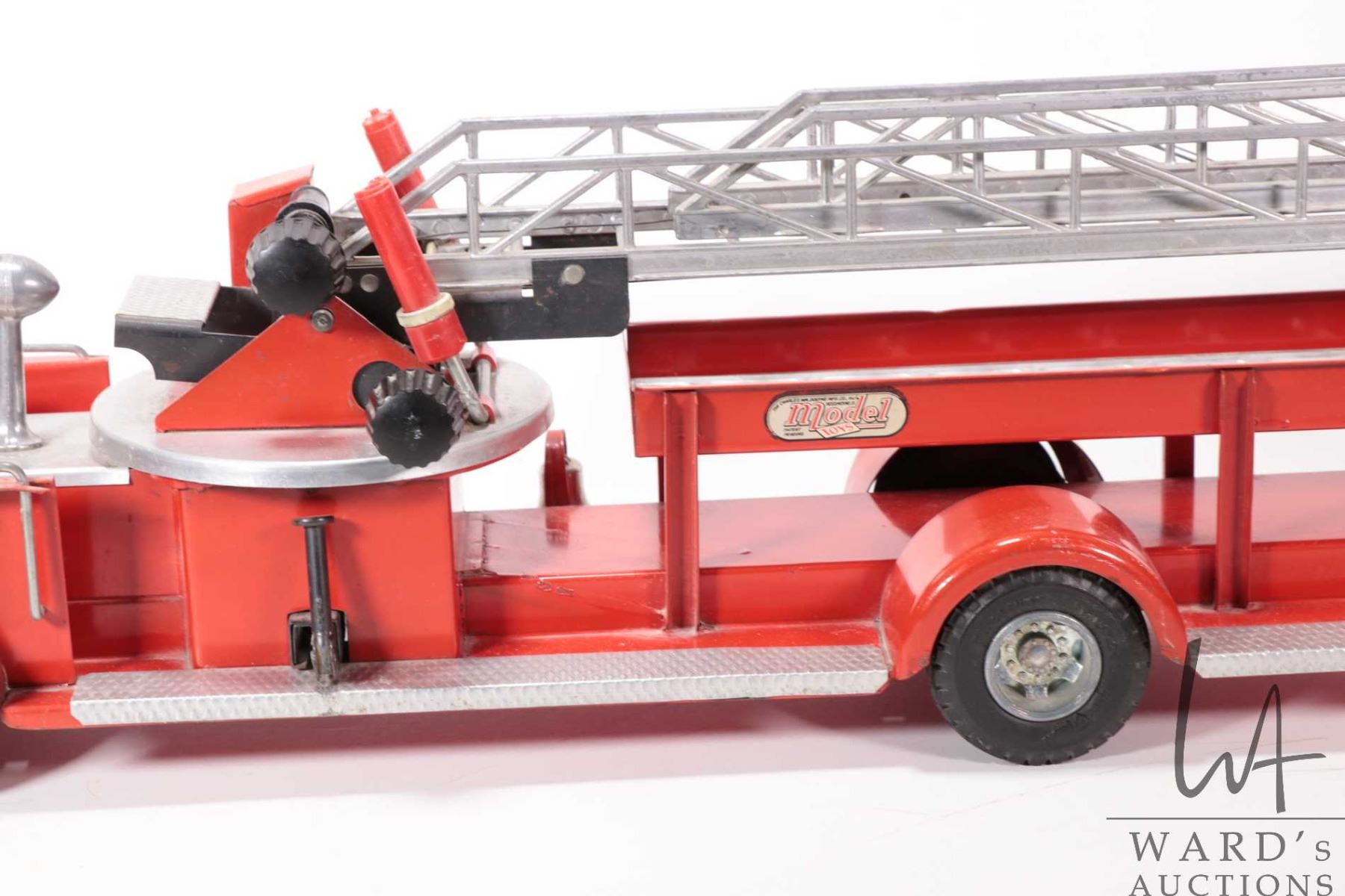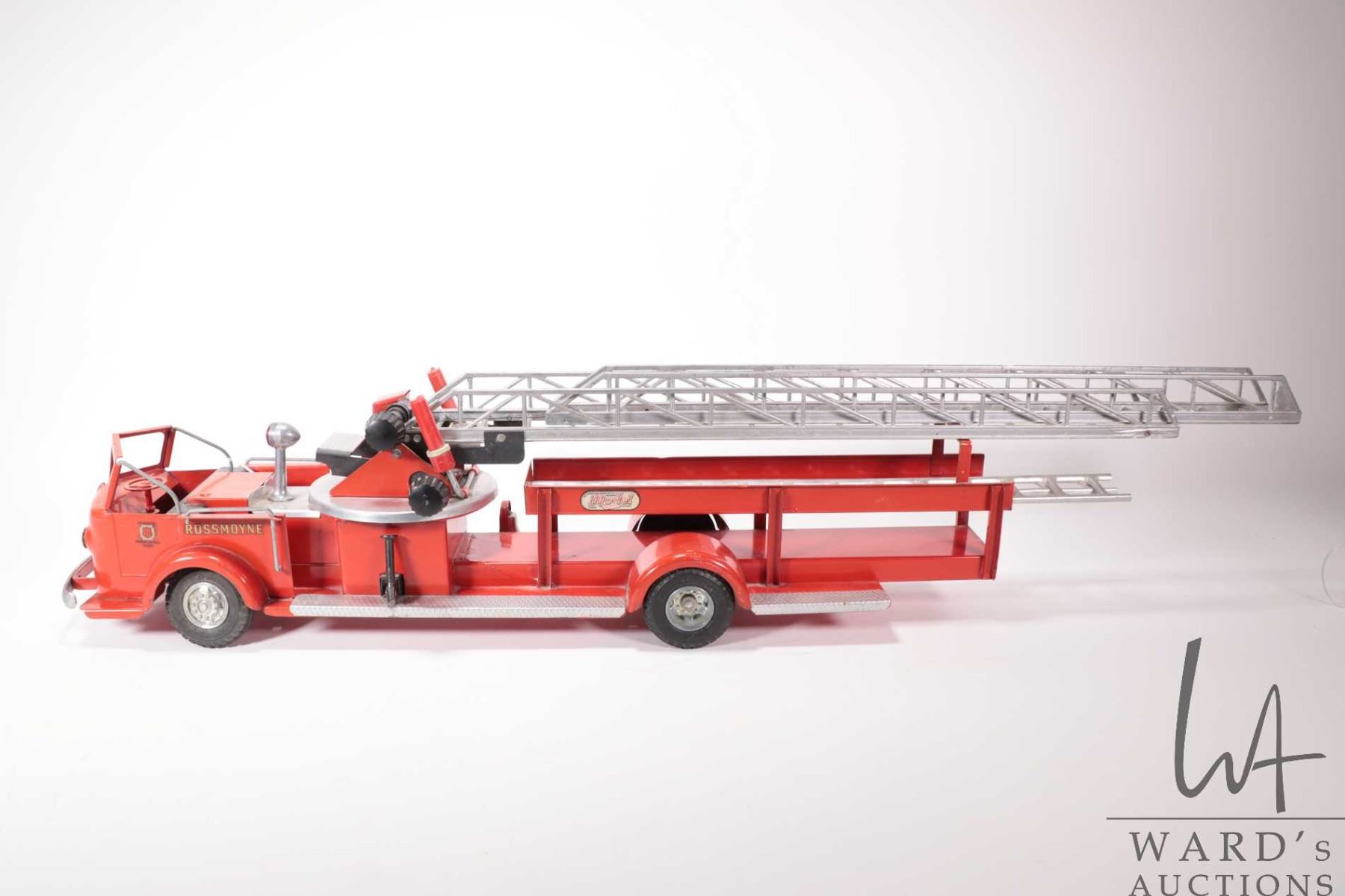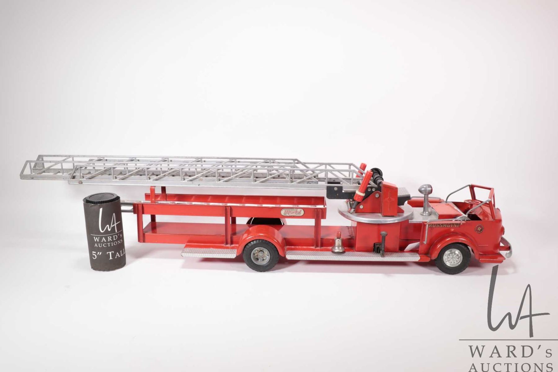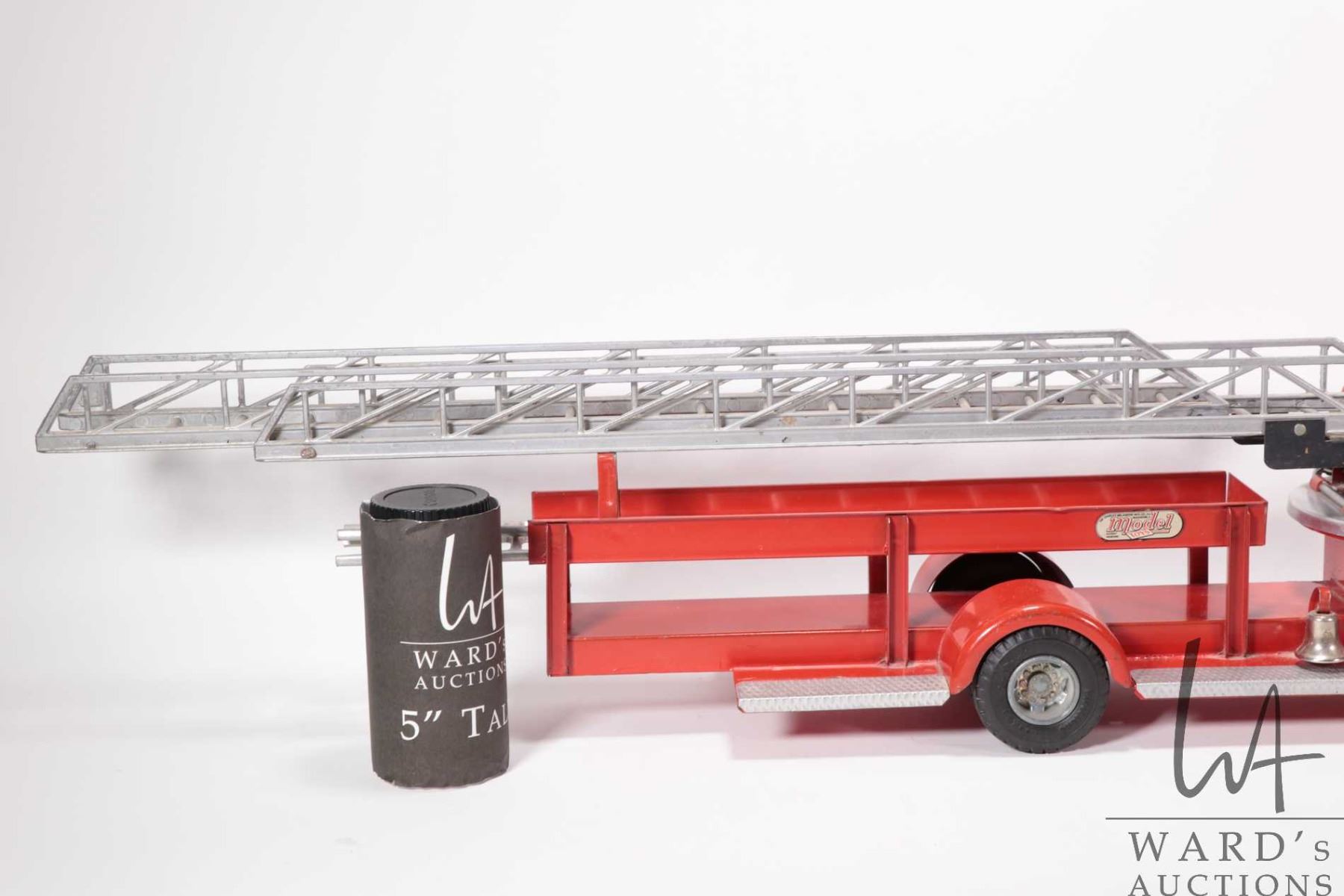 Vintage stamped tin ladder truck marked "The Charles W.M. Doepke Mfg. Co., Rossmoyne Model Toys" wit