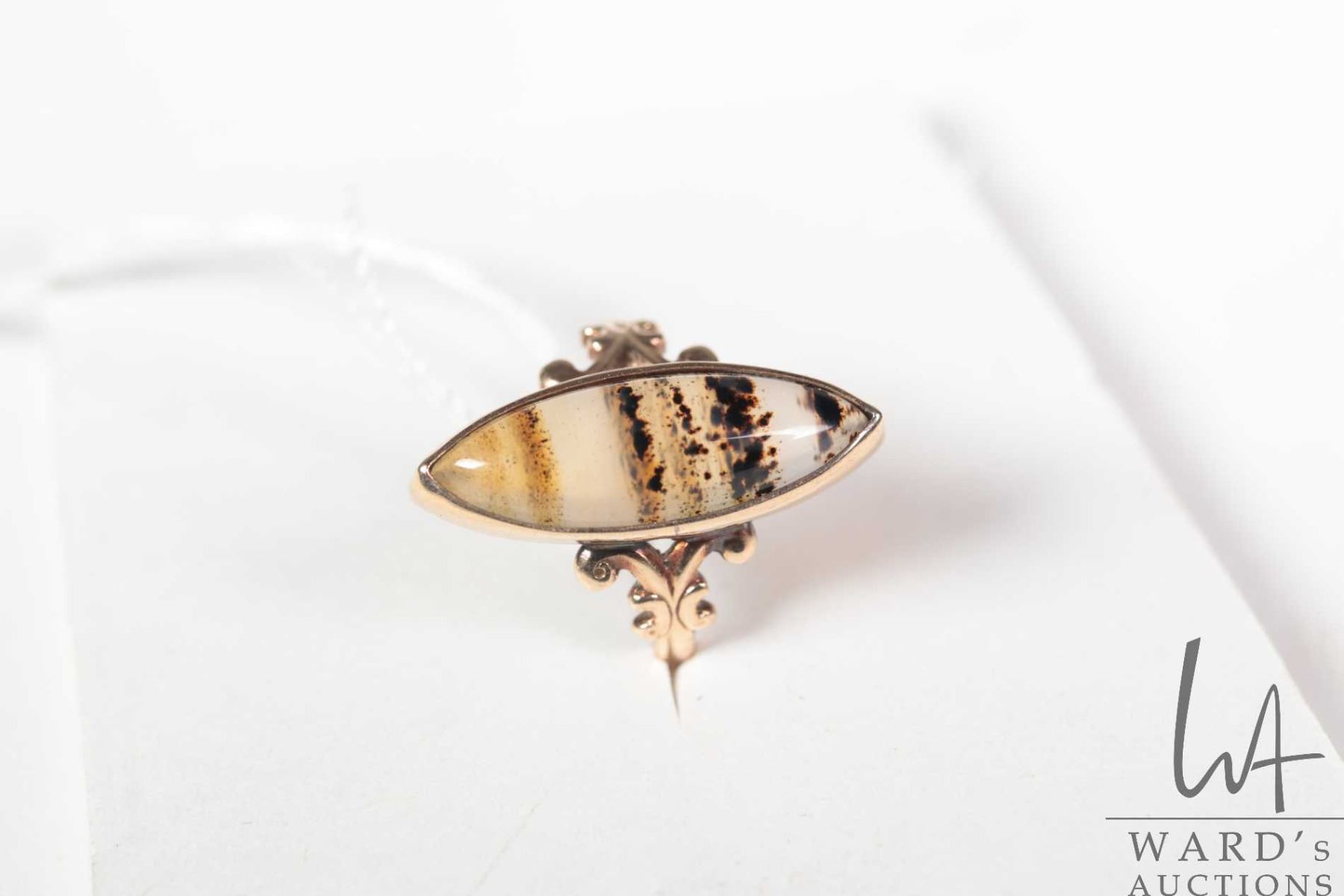 Vintage tested 14kt yellow gold and agate ring size 4.5