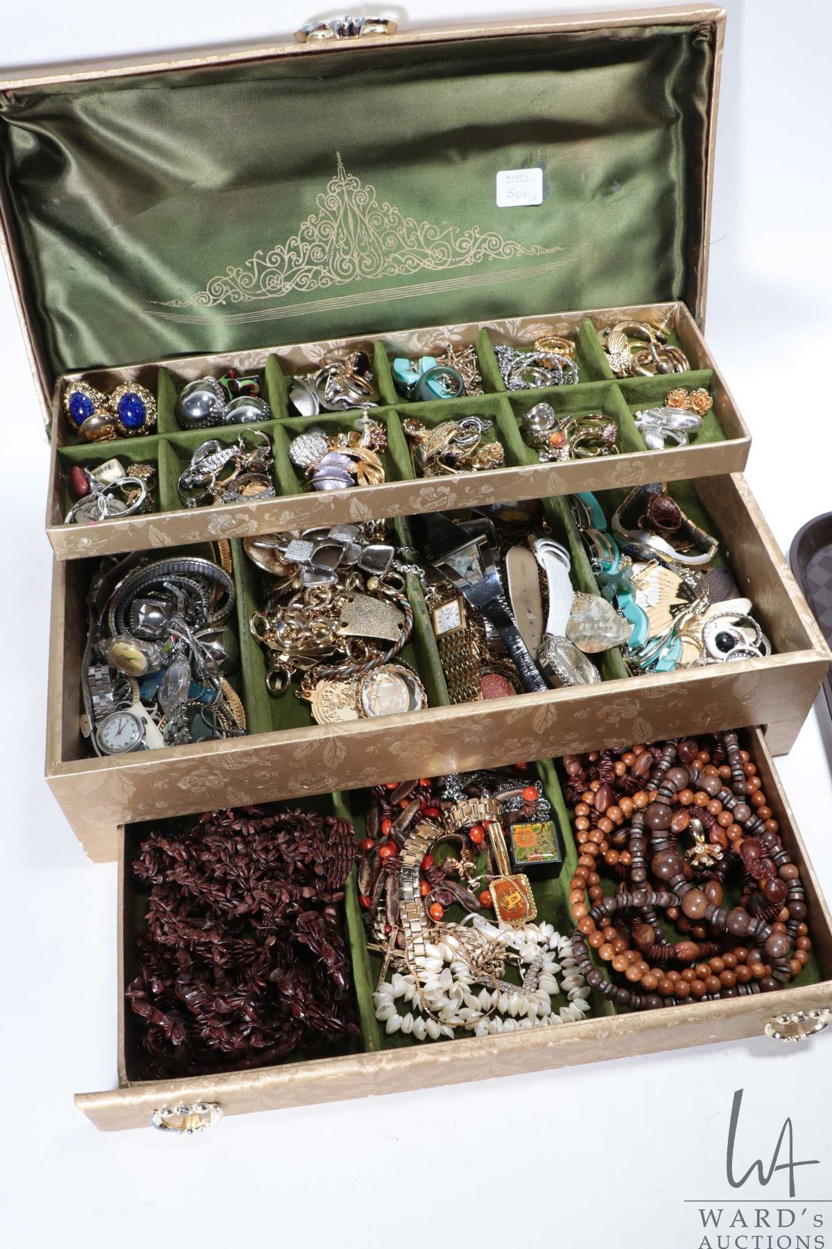 Vintage three tier jewellery box including necklaces, rings, bracelets, neck chains, brooches etc. p