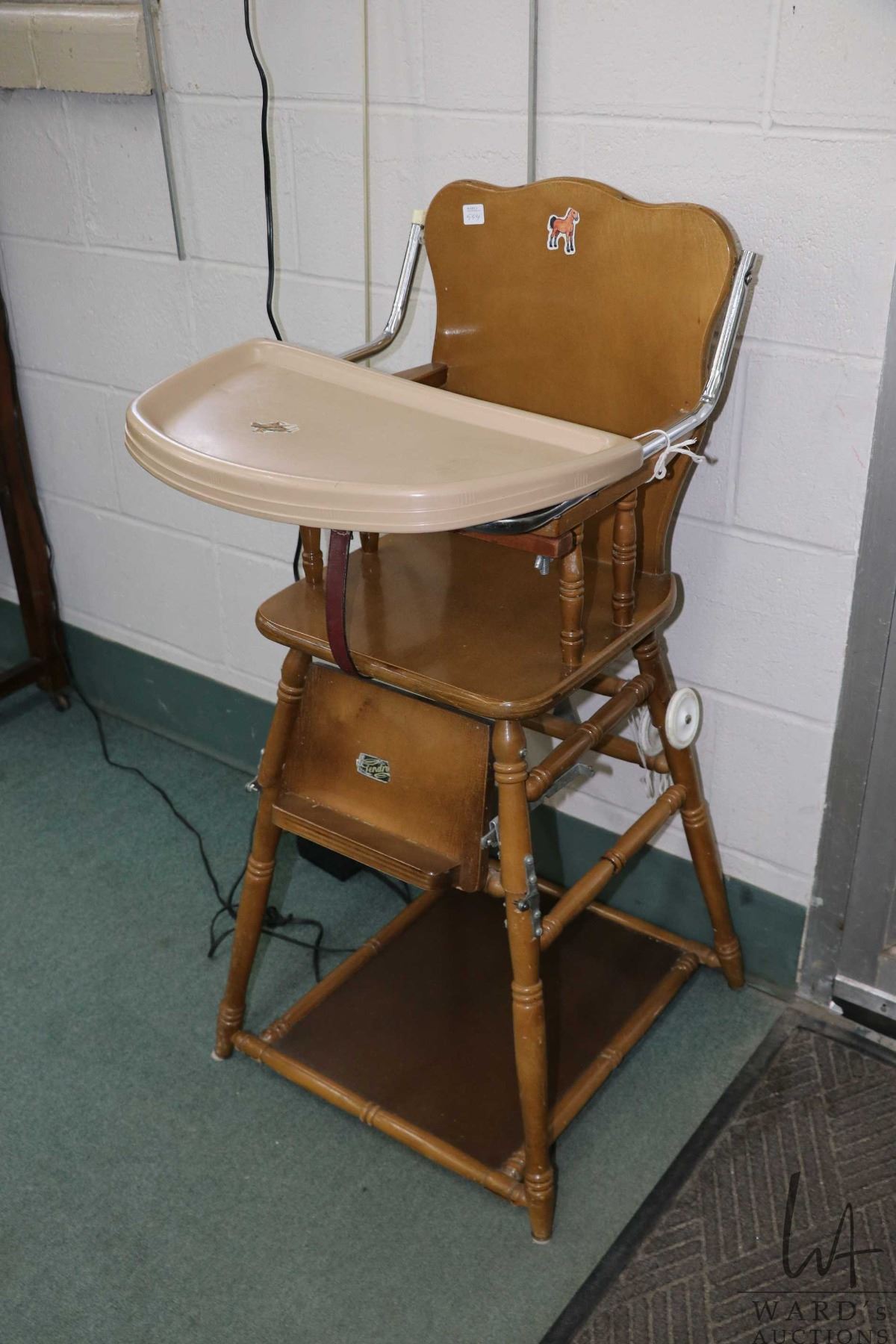 Vintage wooden high chair that converts to a table and chair, note: doll and teddy bear use only