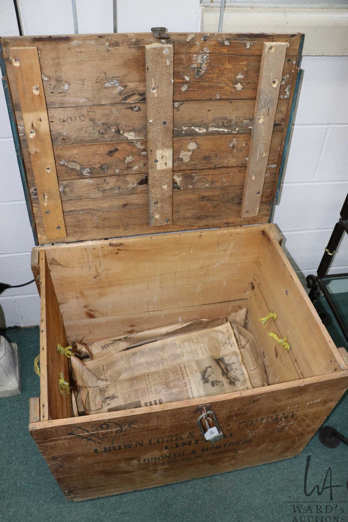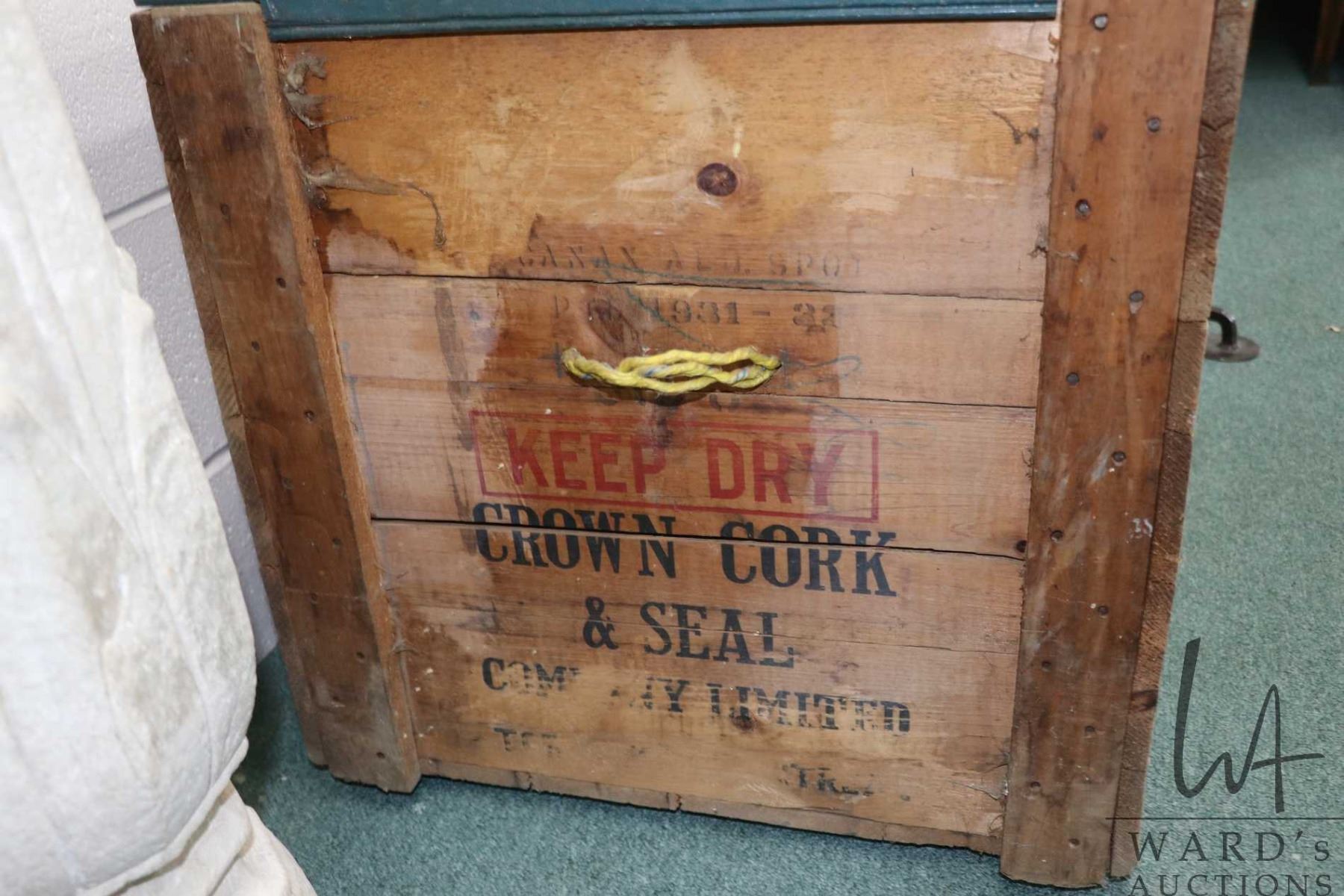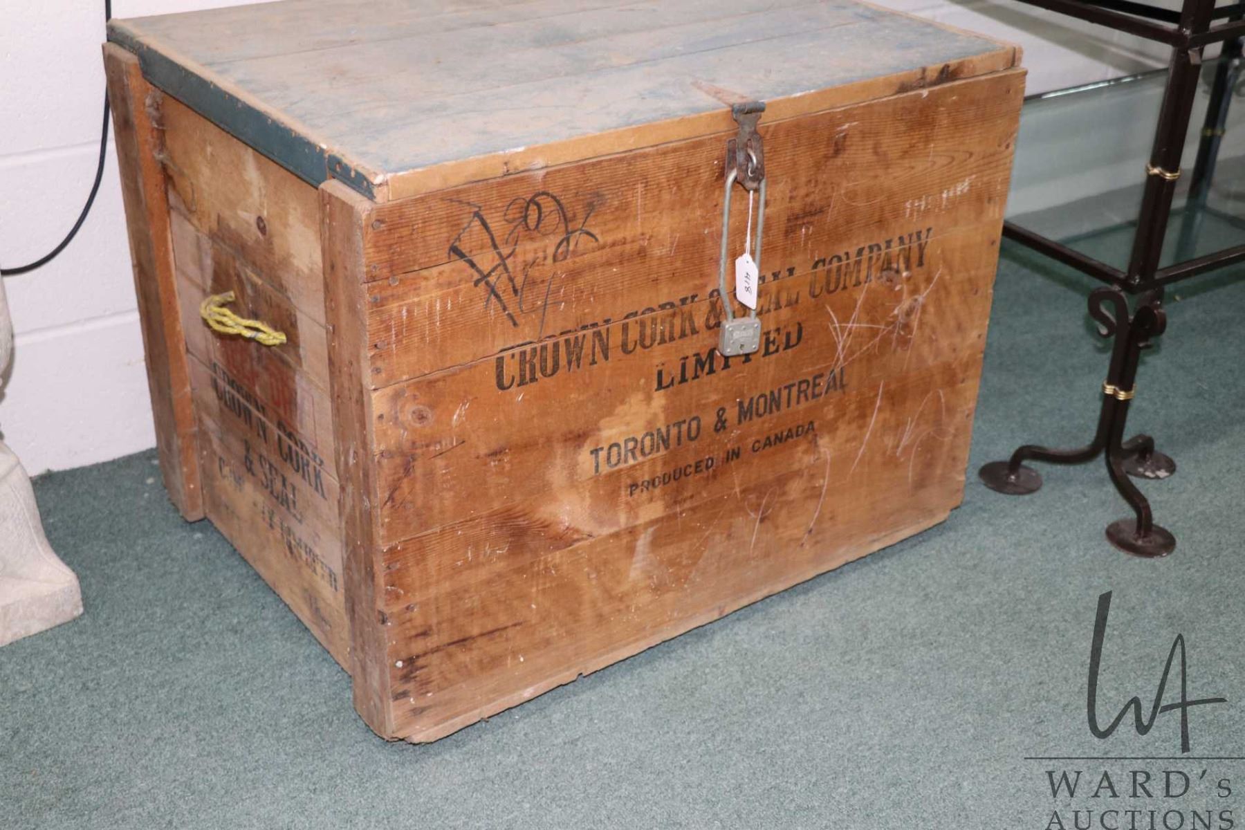 Vintage wooden shipping crate marked "Crown Cork & Seal Company, Toronto & Montreal" 22" H X 28" W X