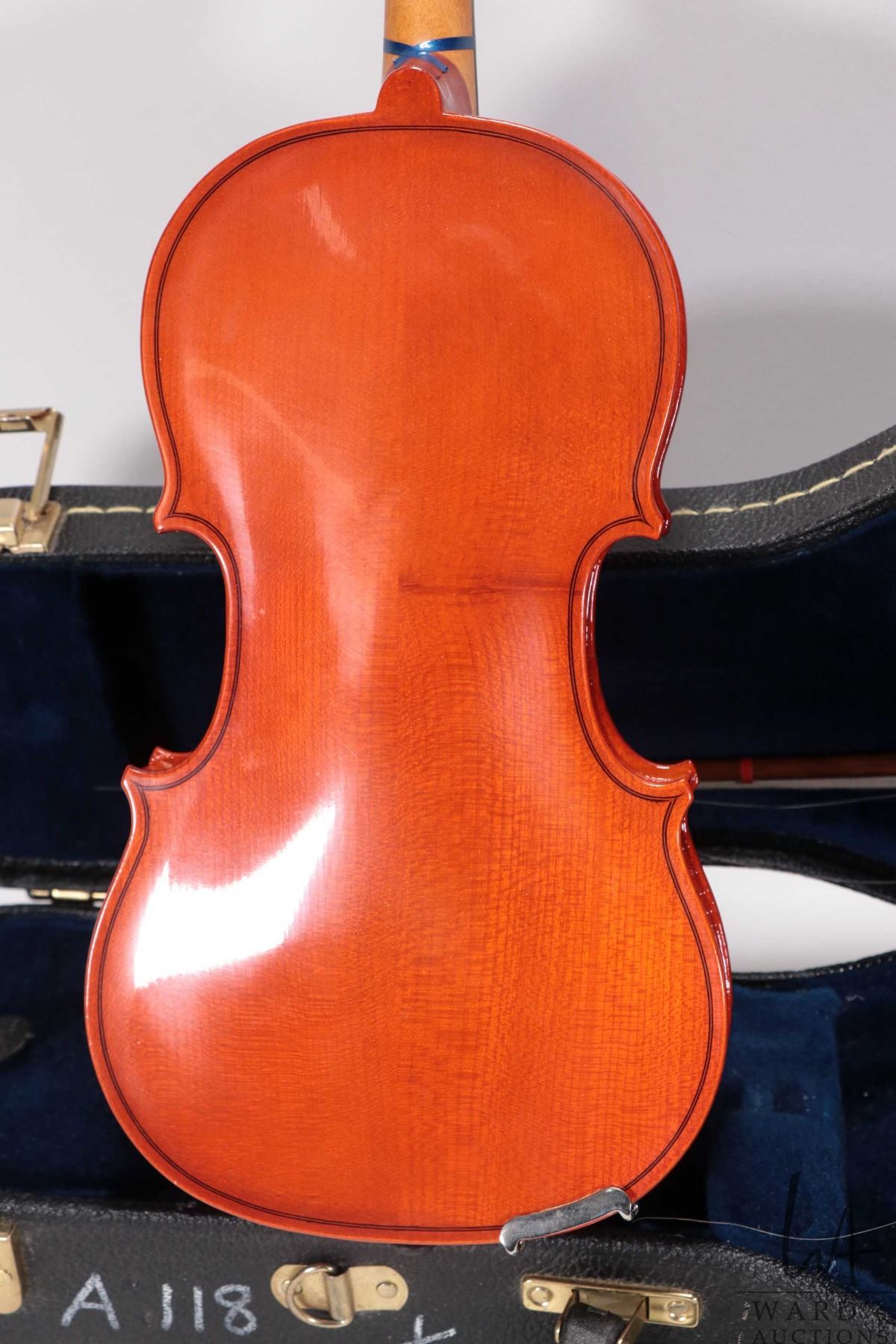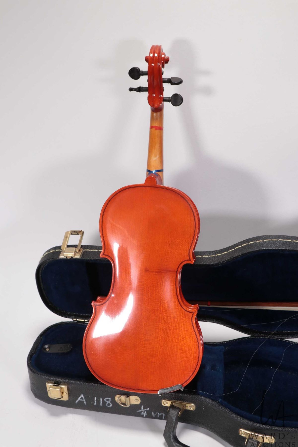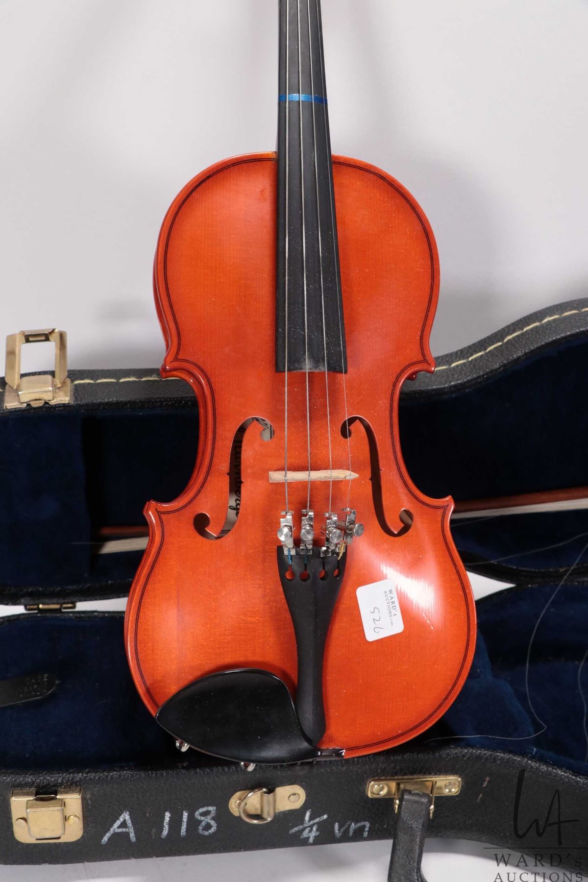 Violin with interior label marked "Karl Nurmberger, Bohemia" 18" with bow and fitted hard case