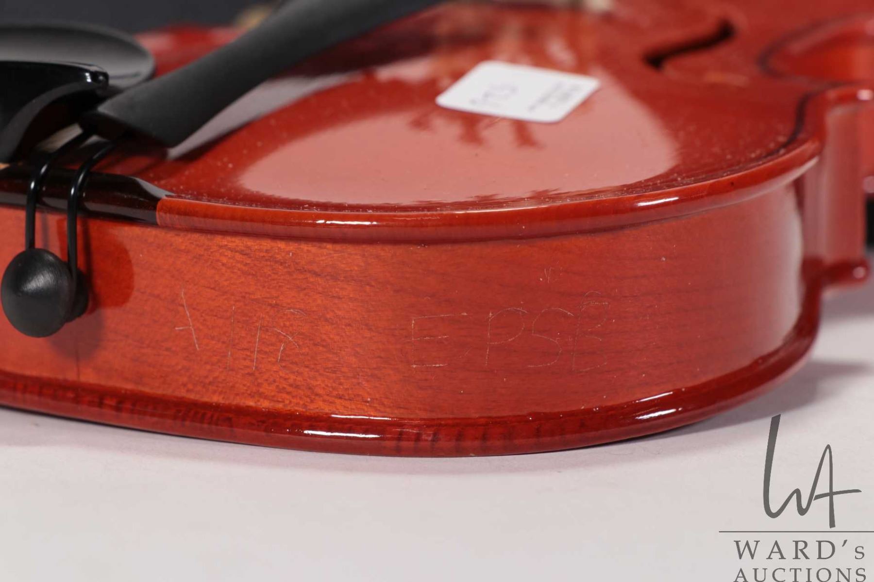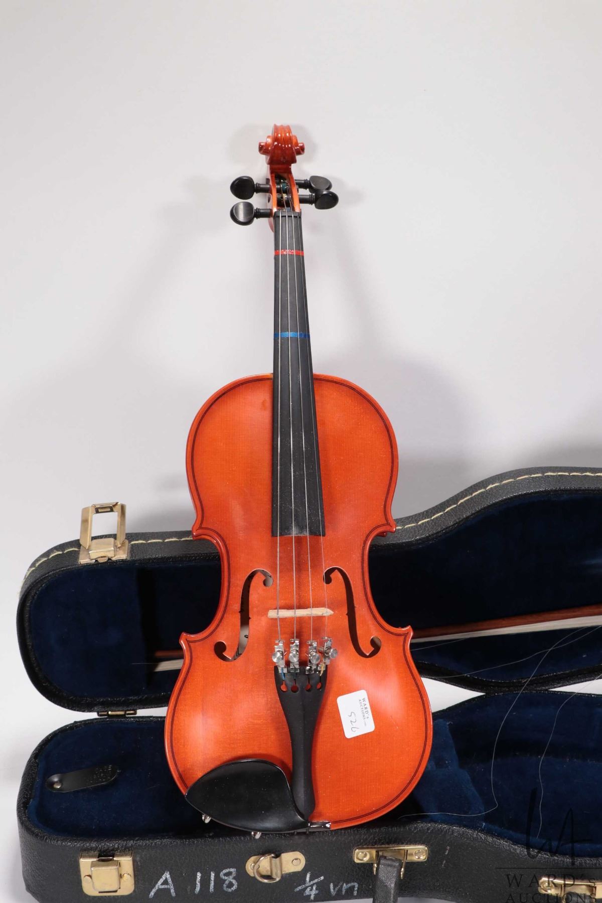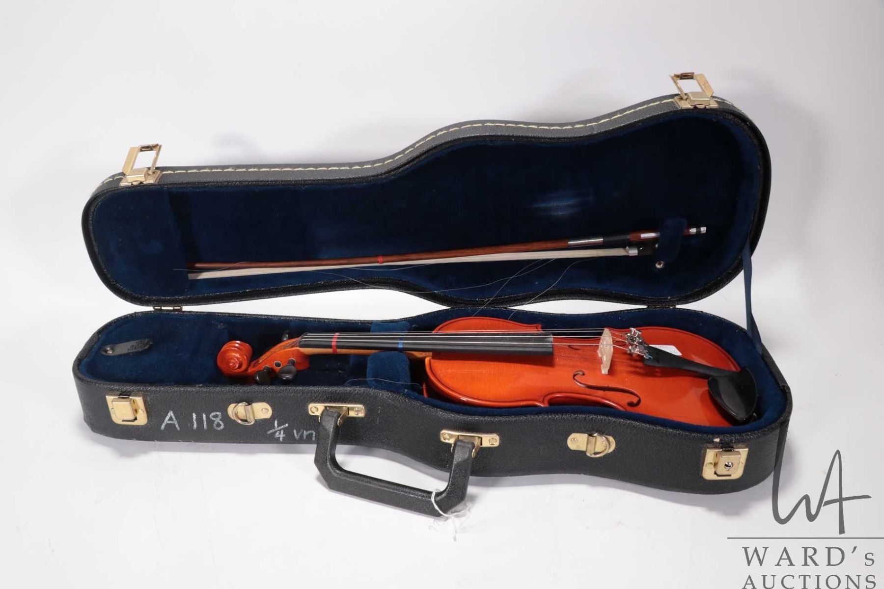 Violin with interior label marked "Karl Nurmberger, Bohemia" 18" with bow and fitted hard case