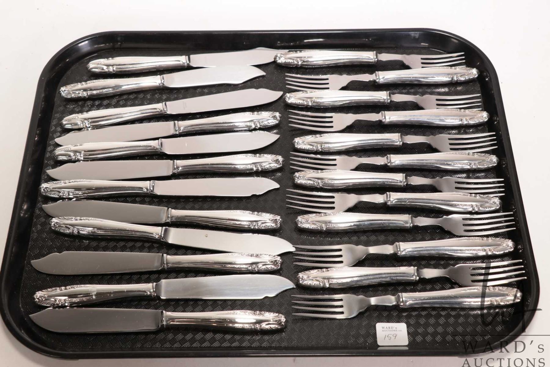 Wallace "Stradivari" sterling silver flatware including settings for twelve of fish knife and forks, to match lots 156, 157 and 158, note: two of the fish knives have different style blades
