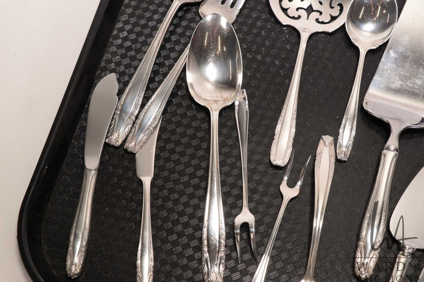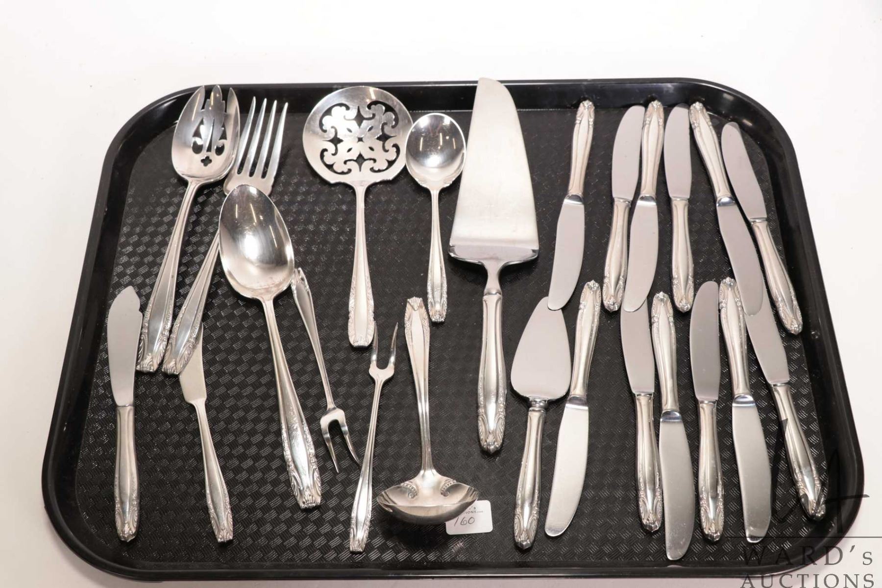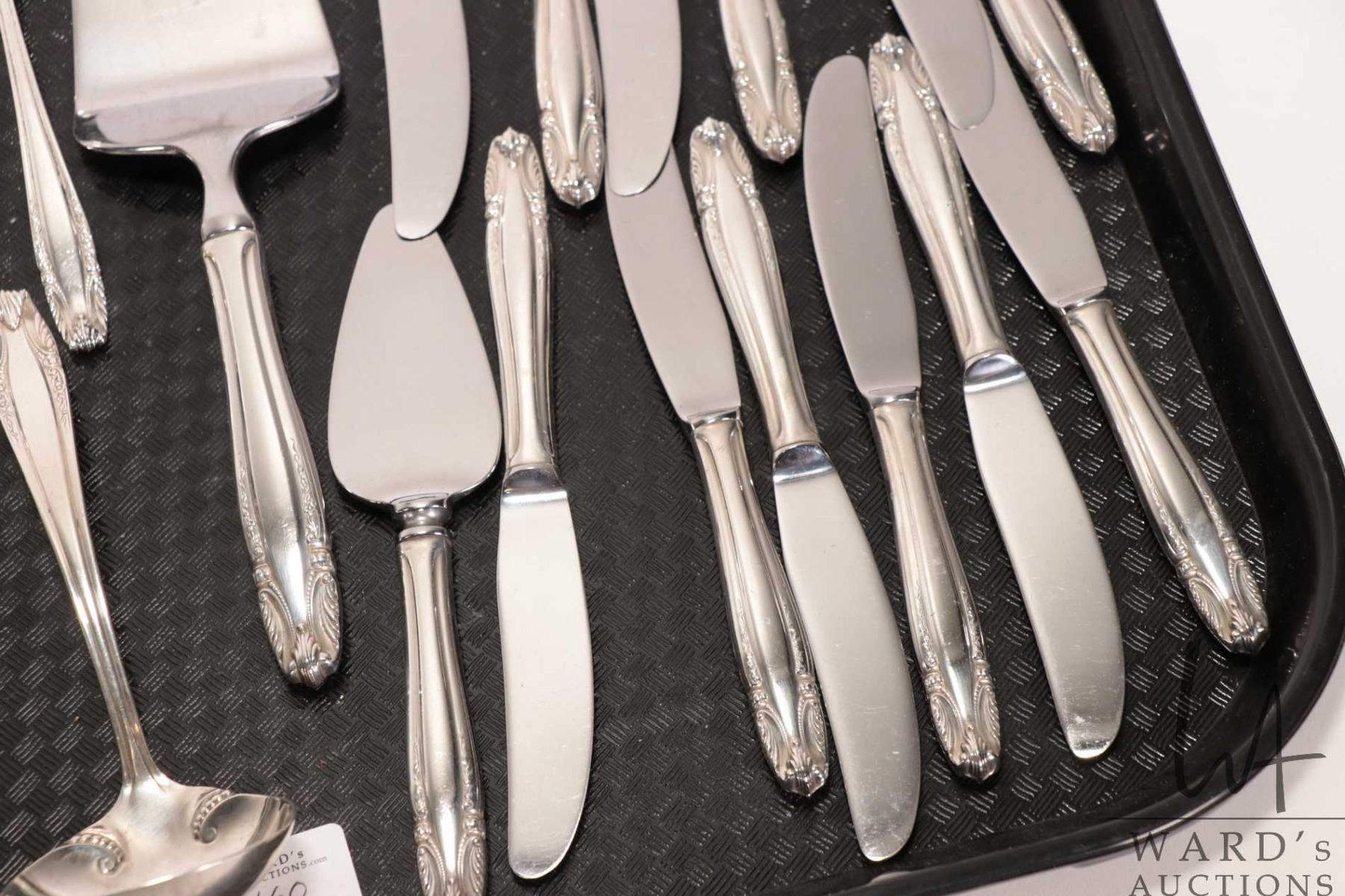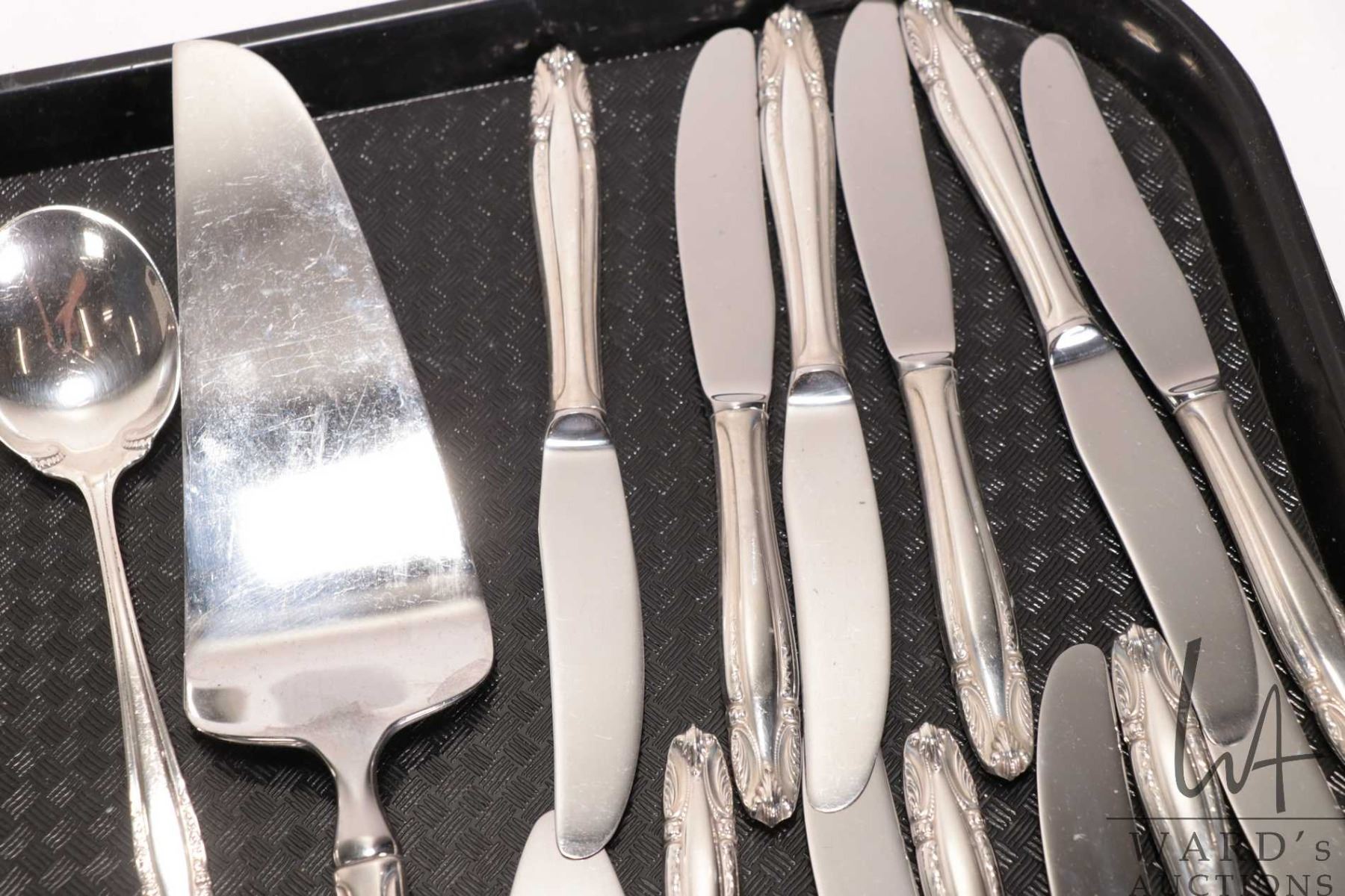 Wallace "Stradivari" sterling silver flatware serving pieces and including berry spoons, serving spoons, pie servers, small ladle, two pickle forks, to spreaders and twelve butter knives, to match lots 156, 157,158 and 159